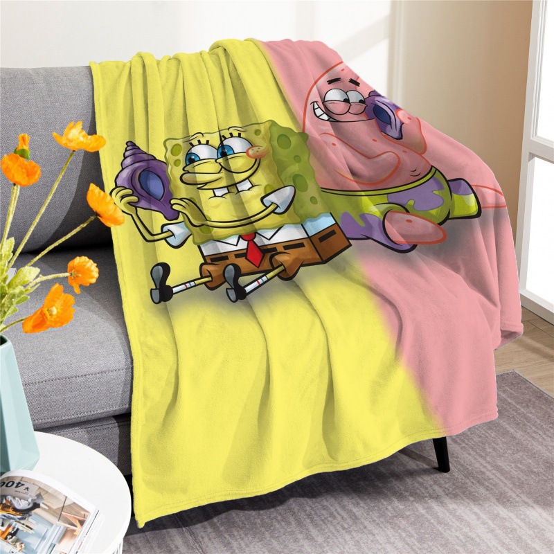 공장 직접 판매 국경 간 만화 스폰지 밥 플란넬 담요 디지털 인쇄 에어컨 담요 어린이 담요 낮잠 담요
