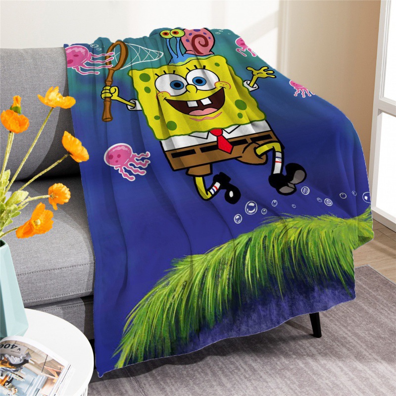 공장 직접 판매 국경 간 만화 스폰지 밥 플란넬 담요 디지털 인쇄 에어컨 담요 어린이 담요 낮잠 담요스토어 가기