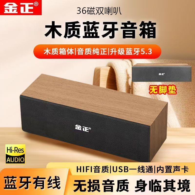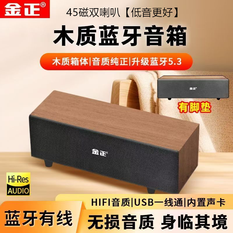 【愿装正品】金正电脑音箱木质无线蓝牙音响手机平板投影仪低音炮2025新款108/109双喇叭跨境电商现货批发一件代发