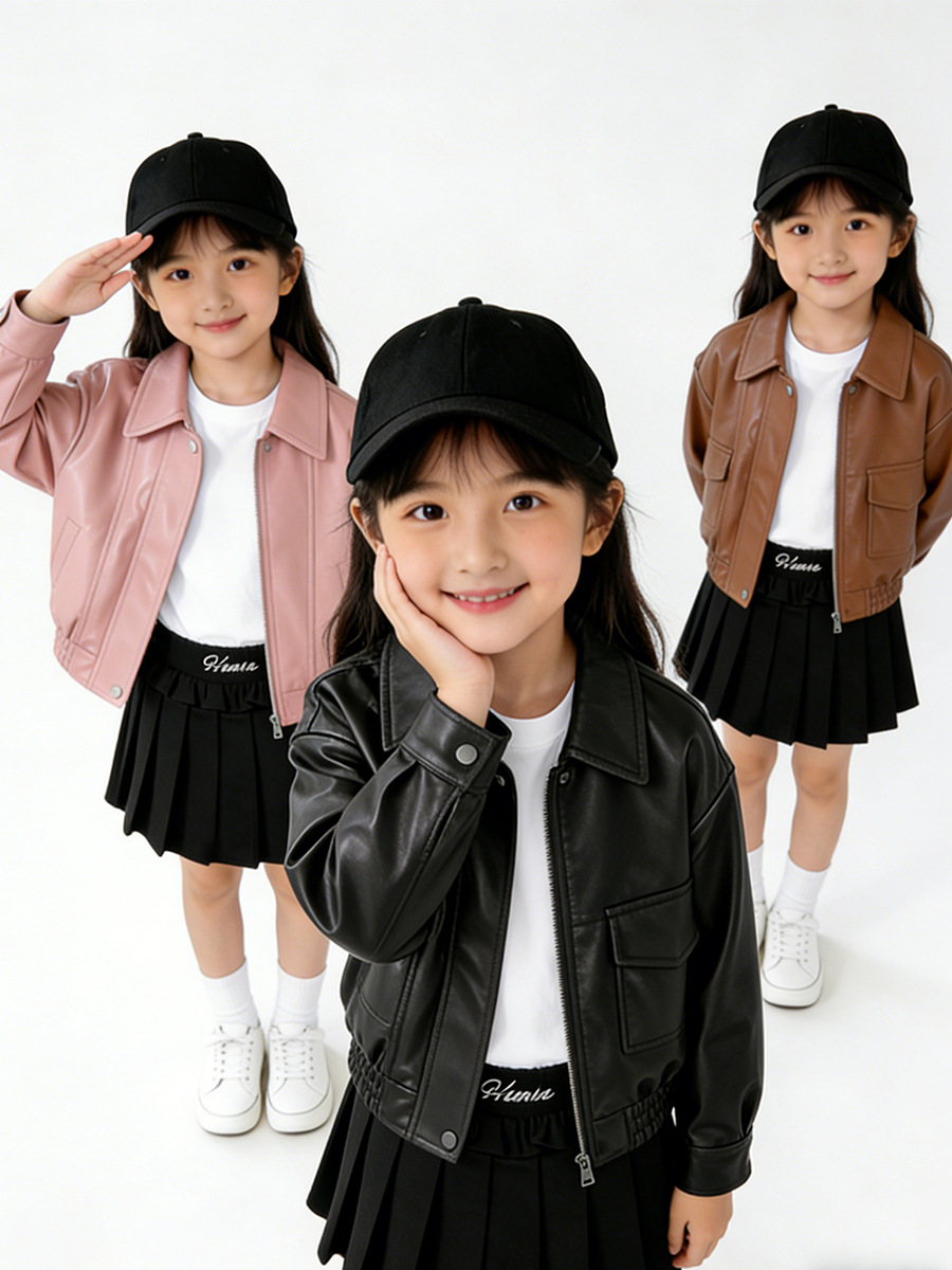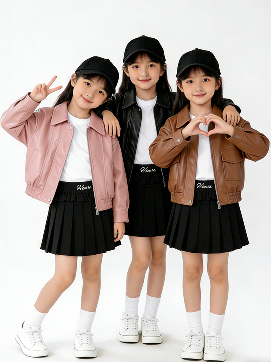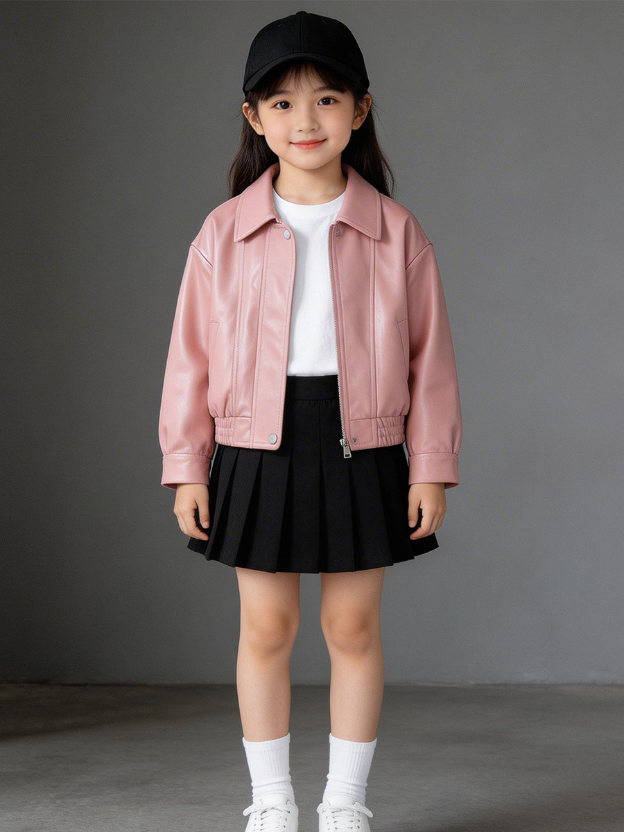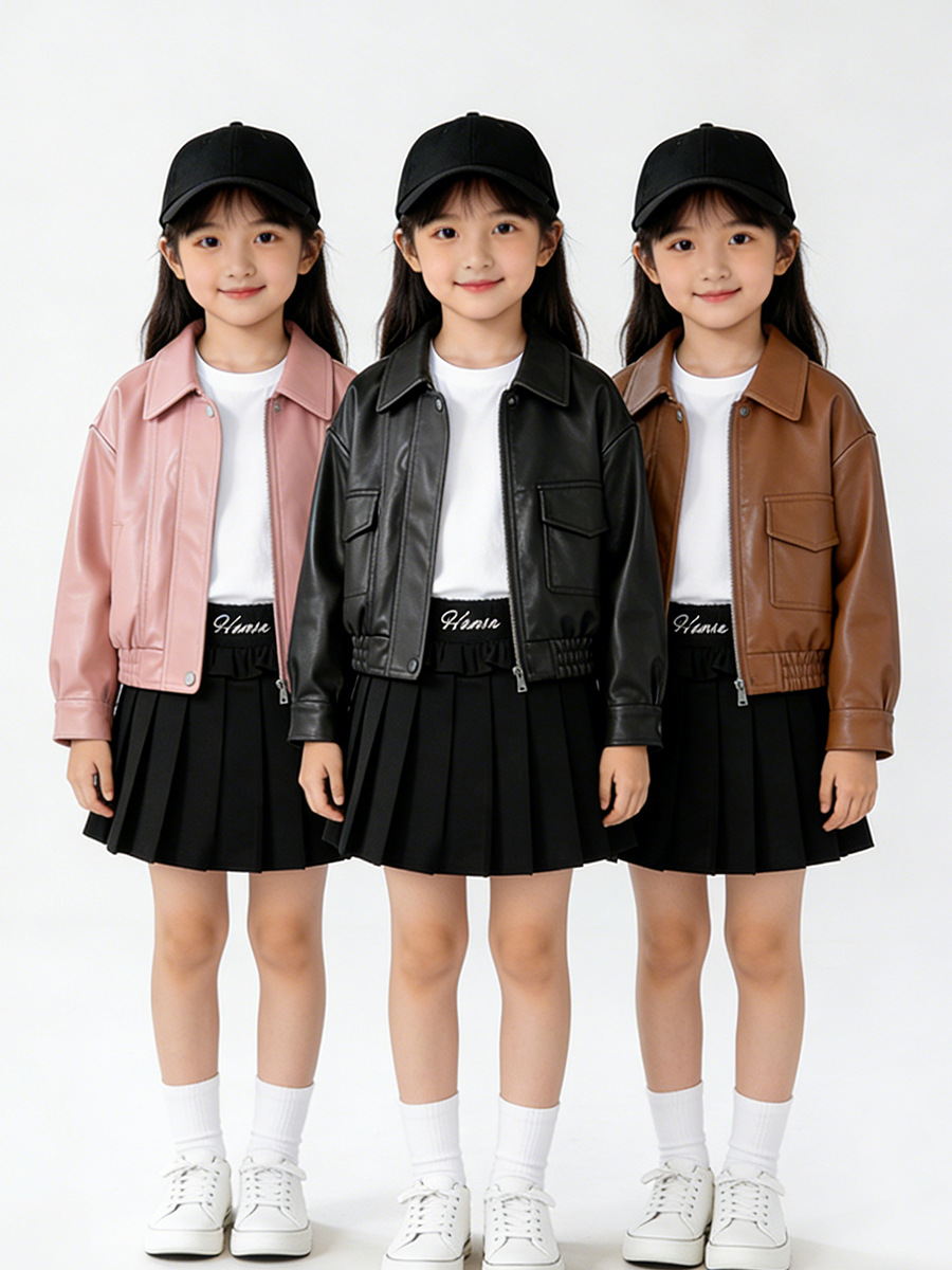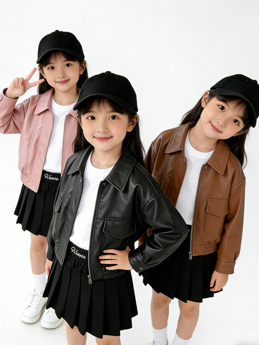 MDD 아동용 가죽 자켓 2025 봄, 가을 소년과 소녀 솔리드 컬러 옷깃 가죽 자켓 아기 소년 한국 스타일 오토바이 자켓스토어 가기