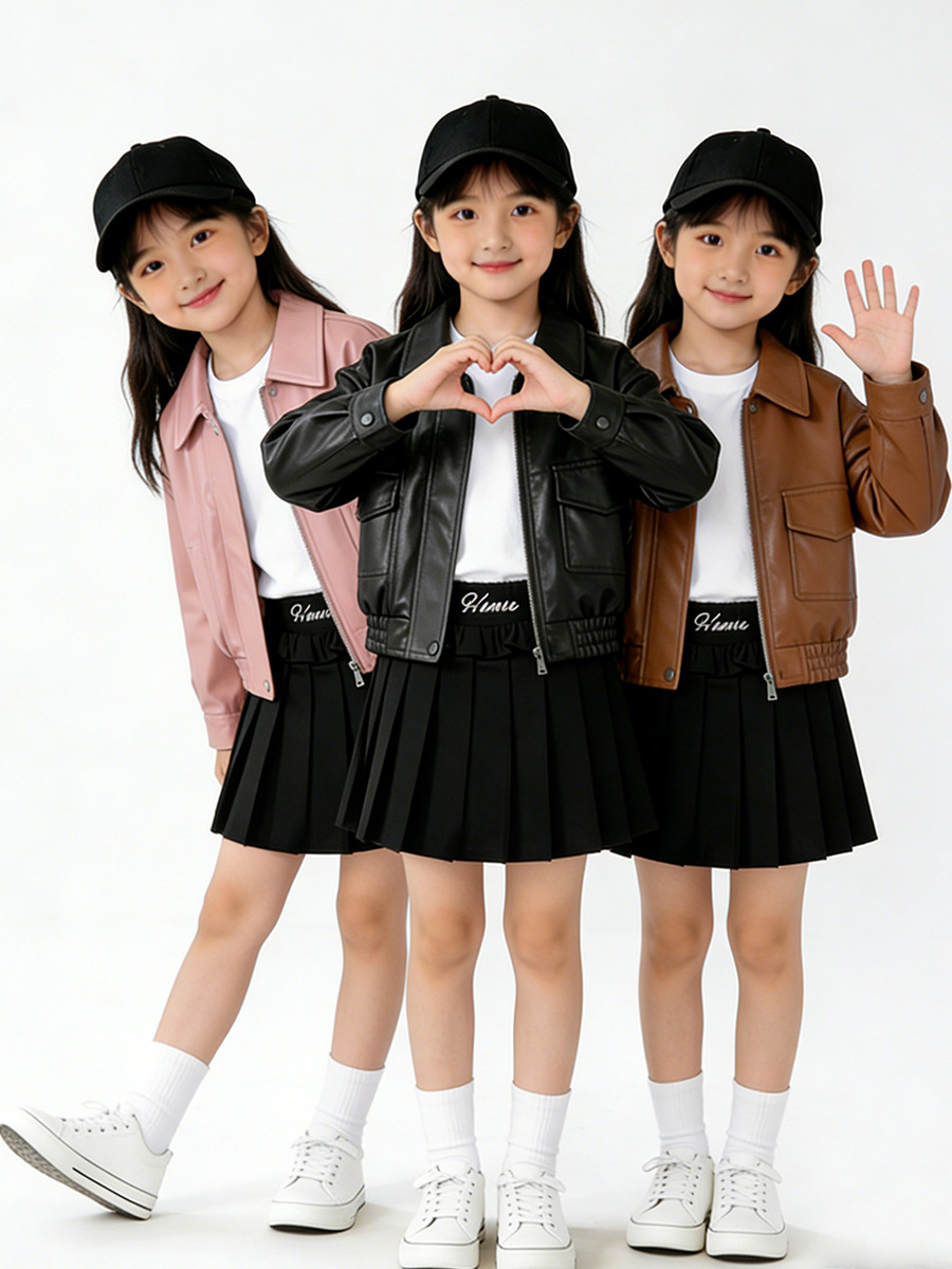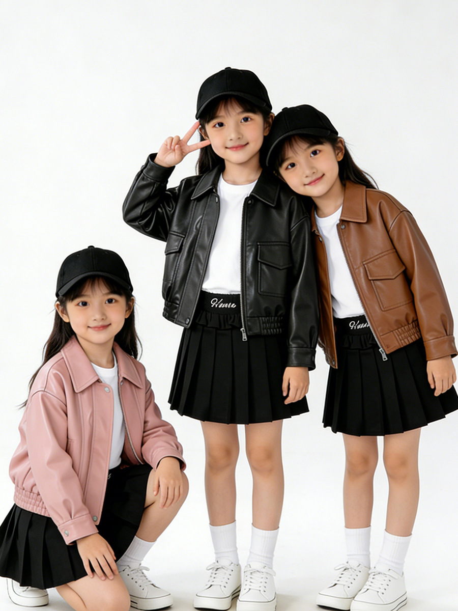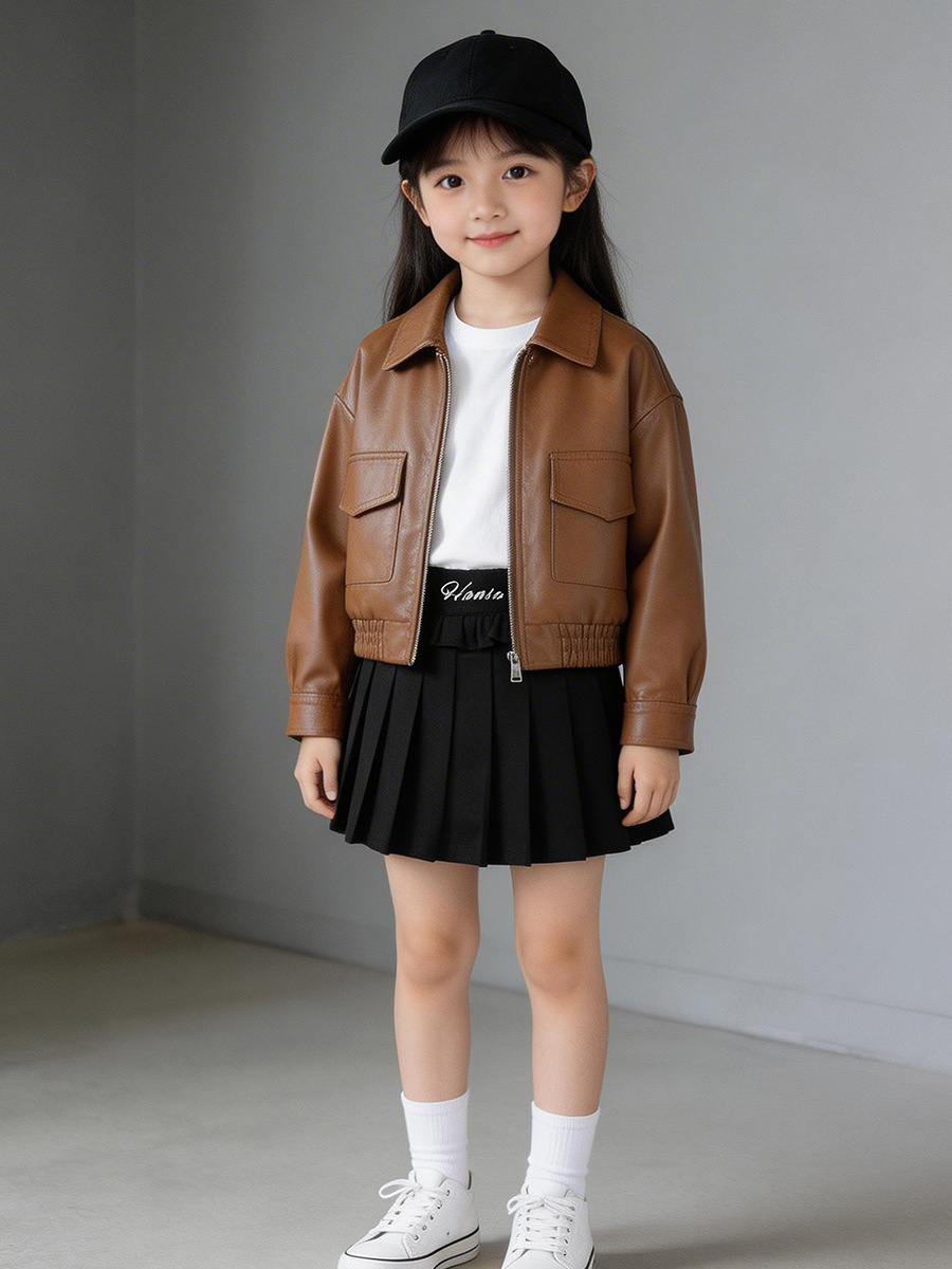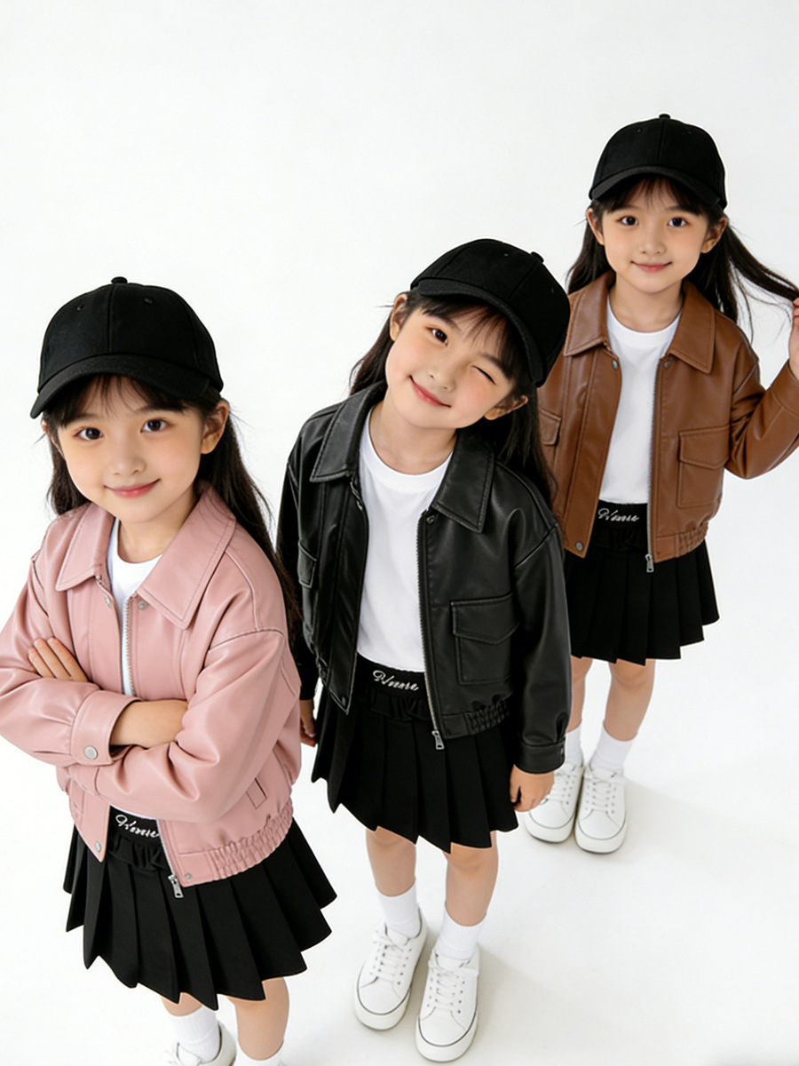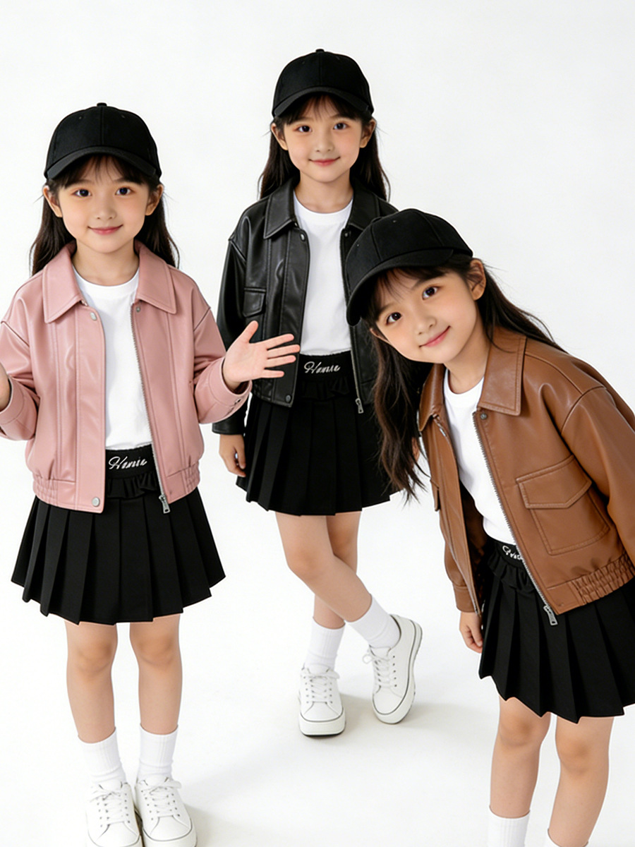 MDD 아동용 가죽 자켓 2025 봄, 가을 소년과 소녀 솔리드 컬러 옷깃 가죽 자켓 아기 소년 한국 스타일 오토바이 자켓스토어 가기