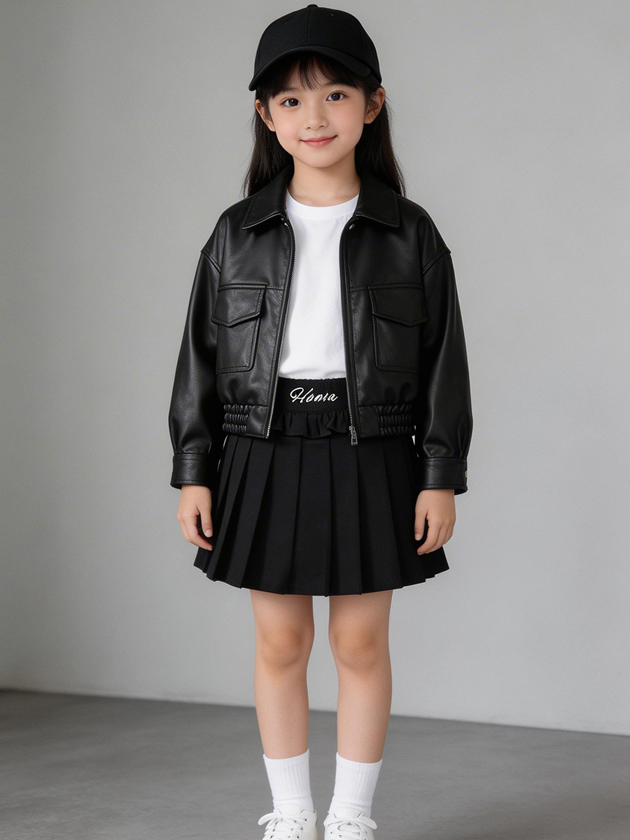MDD 아동용 가죽 자켓 2025 봄, 가을 소년과 소녀 솔리드 컬러 옷깃 가죽 자켓 아기 소년 한국 스타일 오토바이 자켓