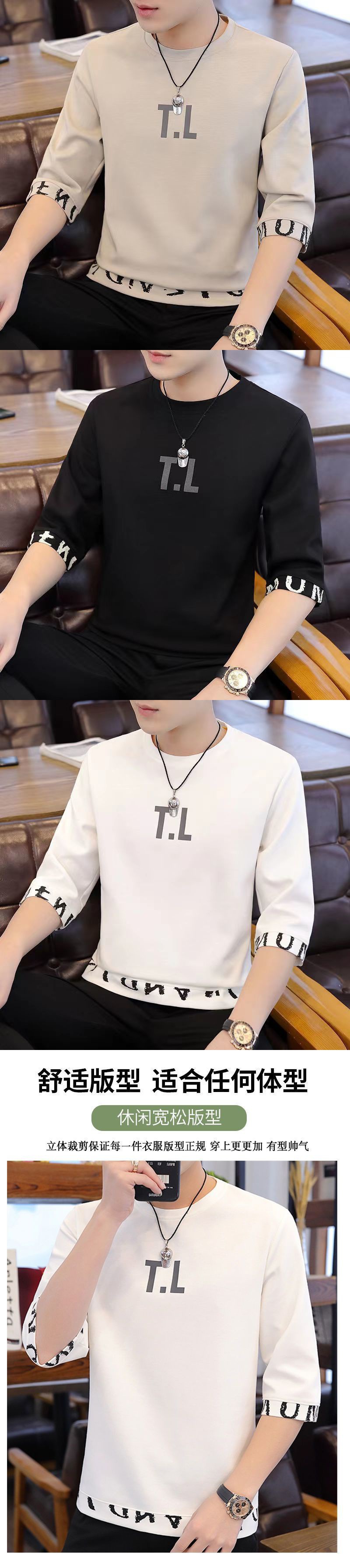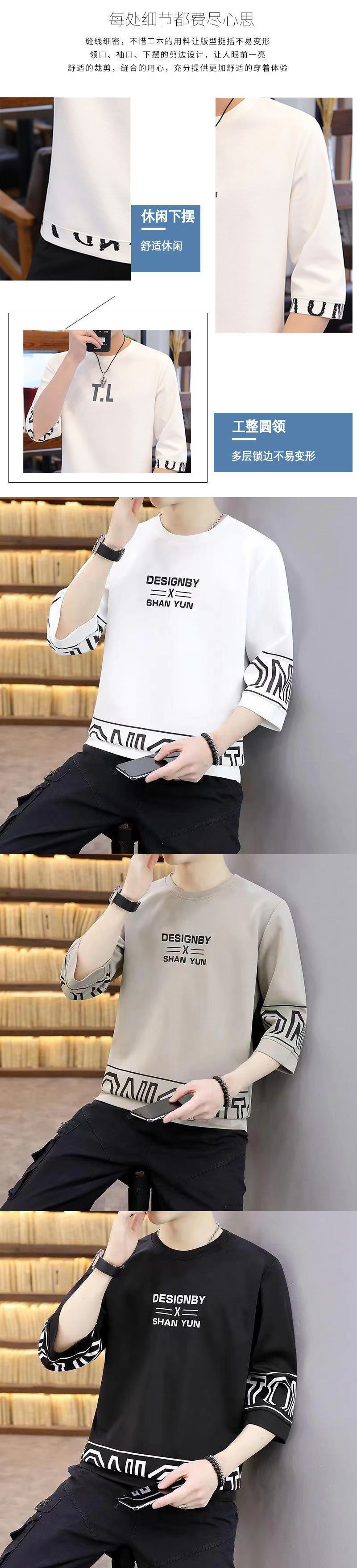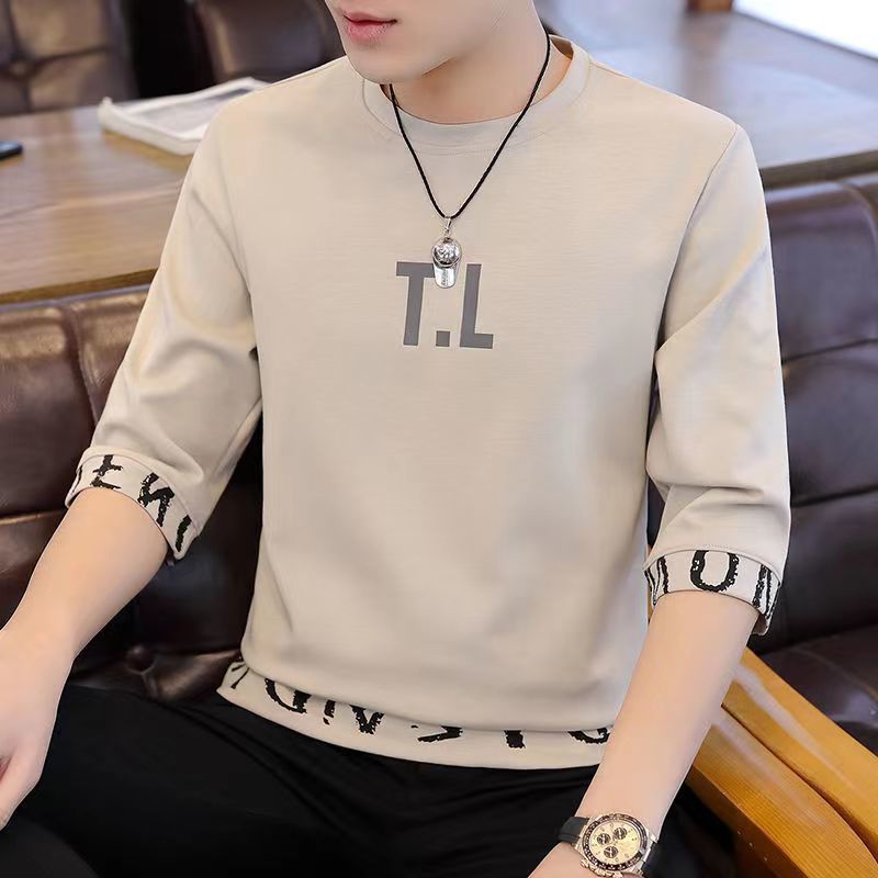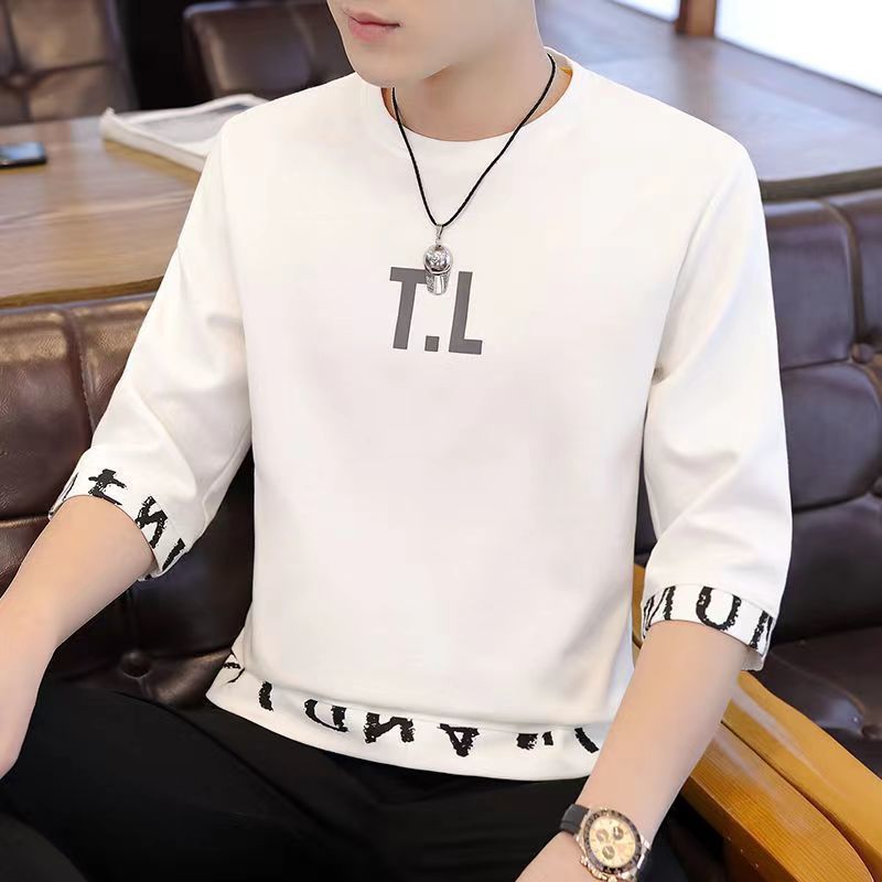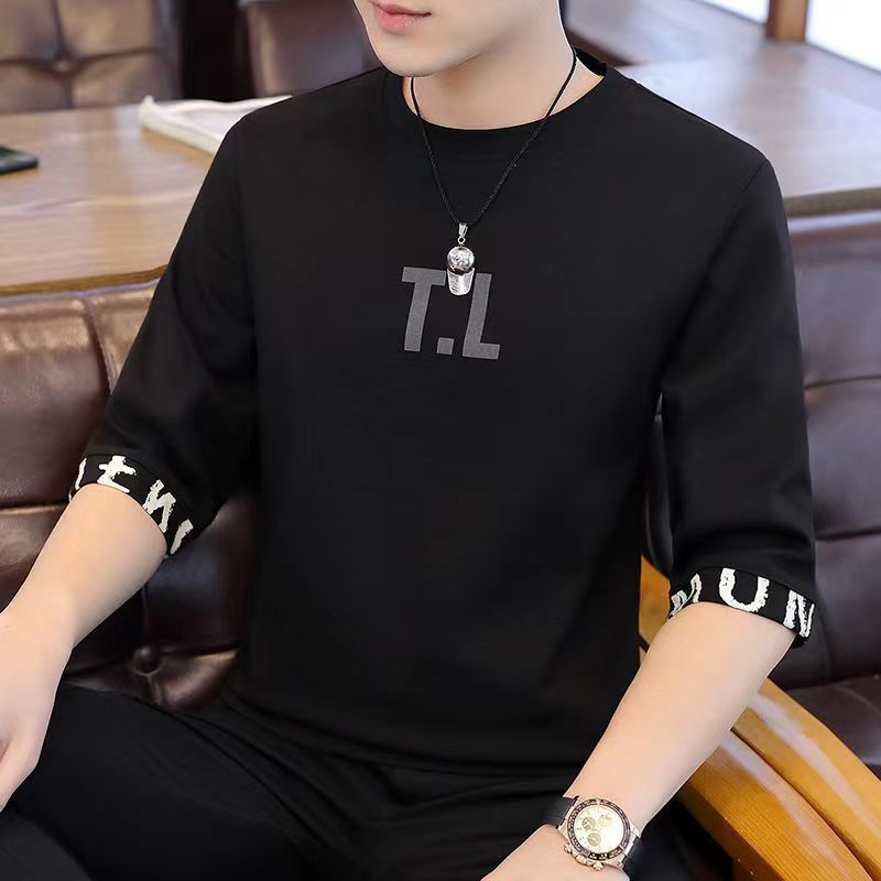 새로운 남성 반팔 티셔츠 홍콩 스타일 남학생 한국어 버전 2023 여름 트렌드 루즈한 7부 소매 핸섬 탑