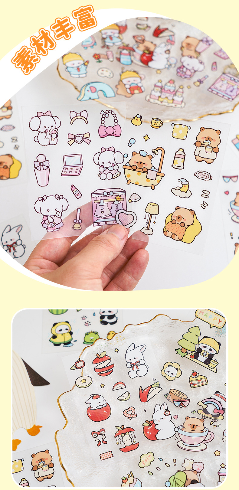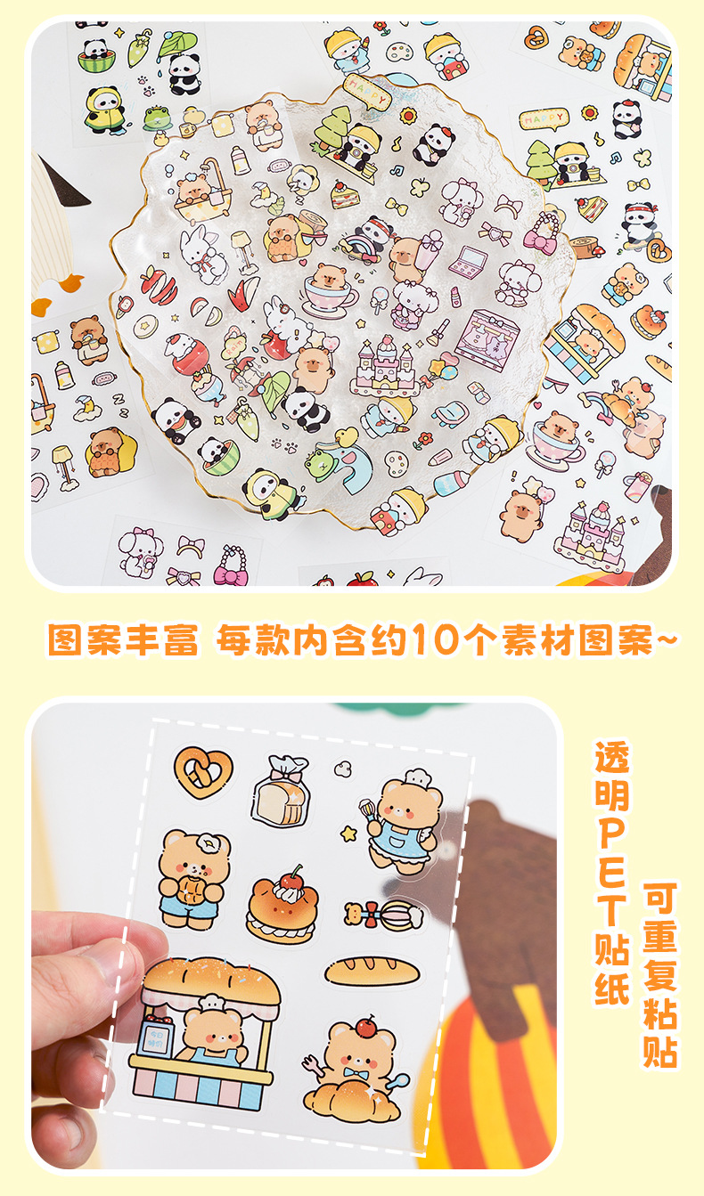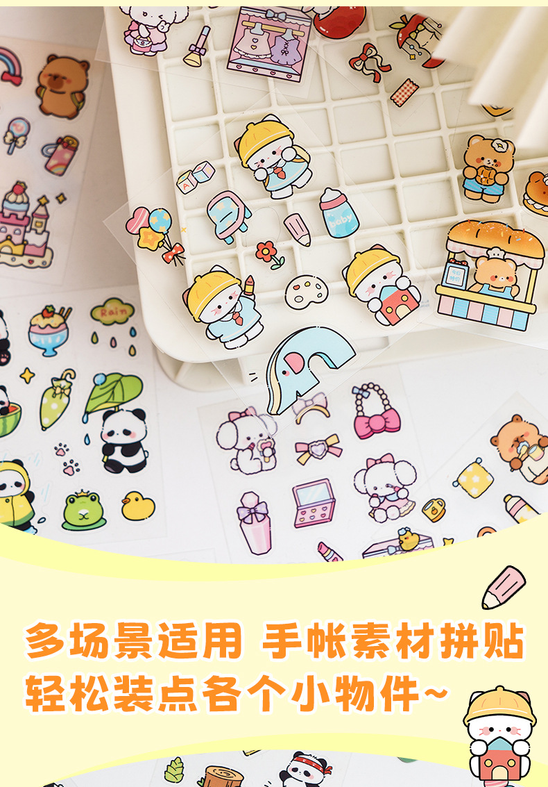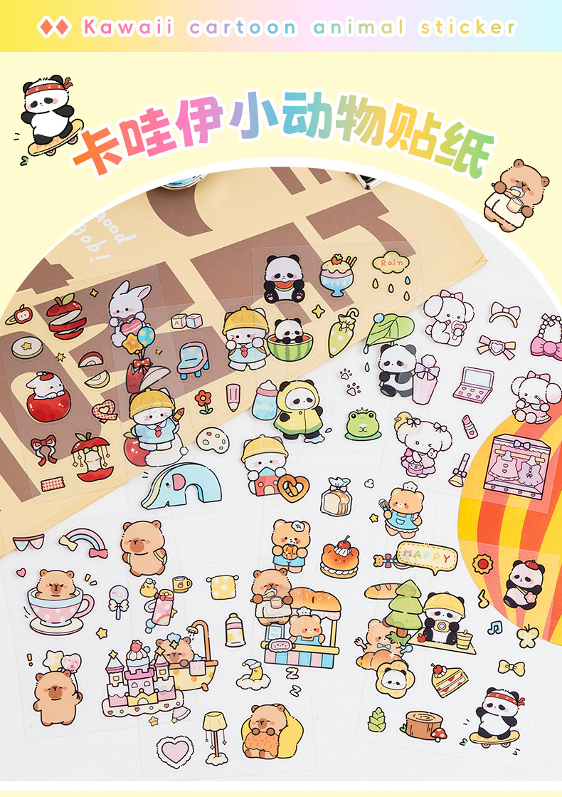 귀여운 수제 동물 패턴 만화 애완 동물 스티커 어린이 재미 자체 접착 핸드북 스티커 방수 팬더 스티커스토어 가기