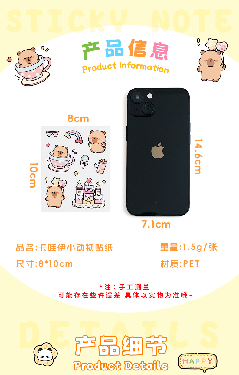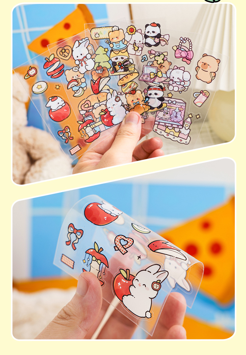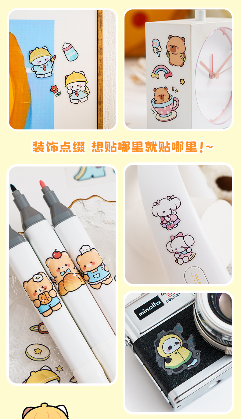 귀여운 수제 동물 패턴 만화 애완 동물 스티커 어린이 재미 자체 접착 핸드북 스티커 방수 팬더 스티커스토어 가기