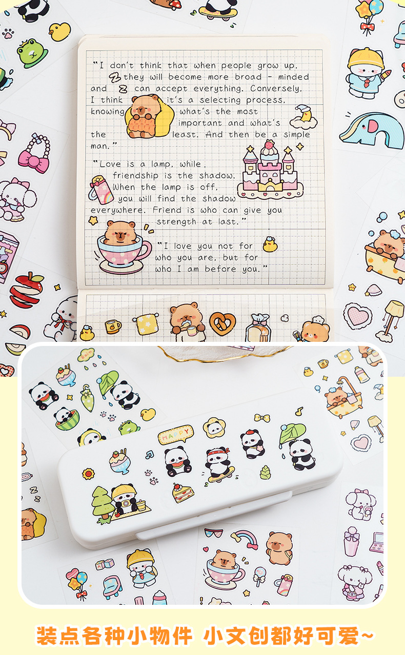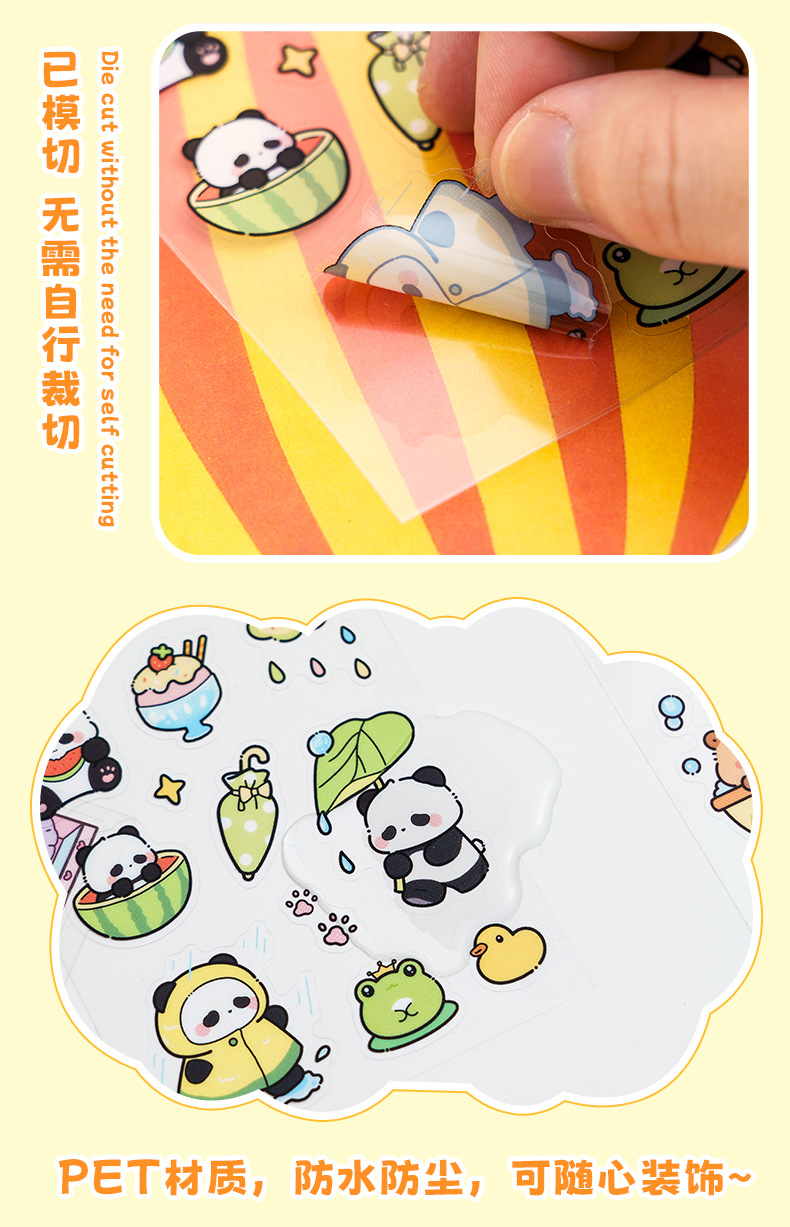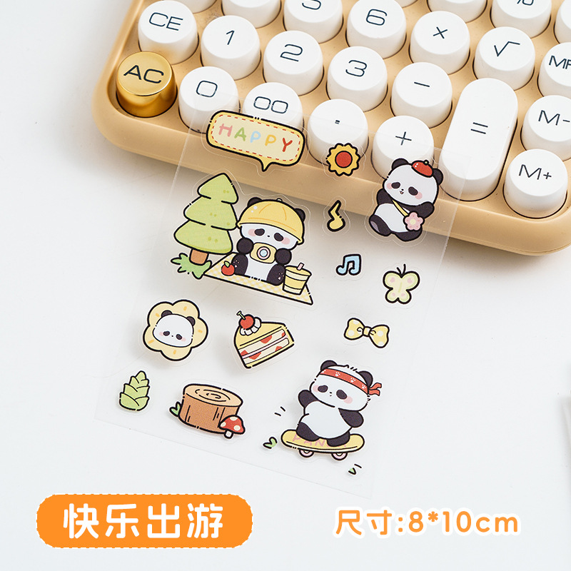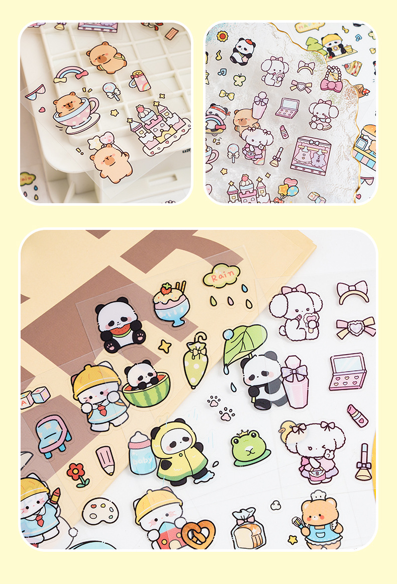 귀여운 수제 동물 패턴 만화 애완 동물 스티커 어린이 재미 자체 접착 핸드북 스티커 방수 팬더 스티커