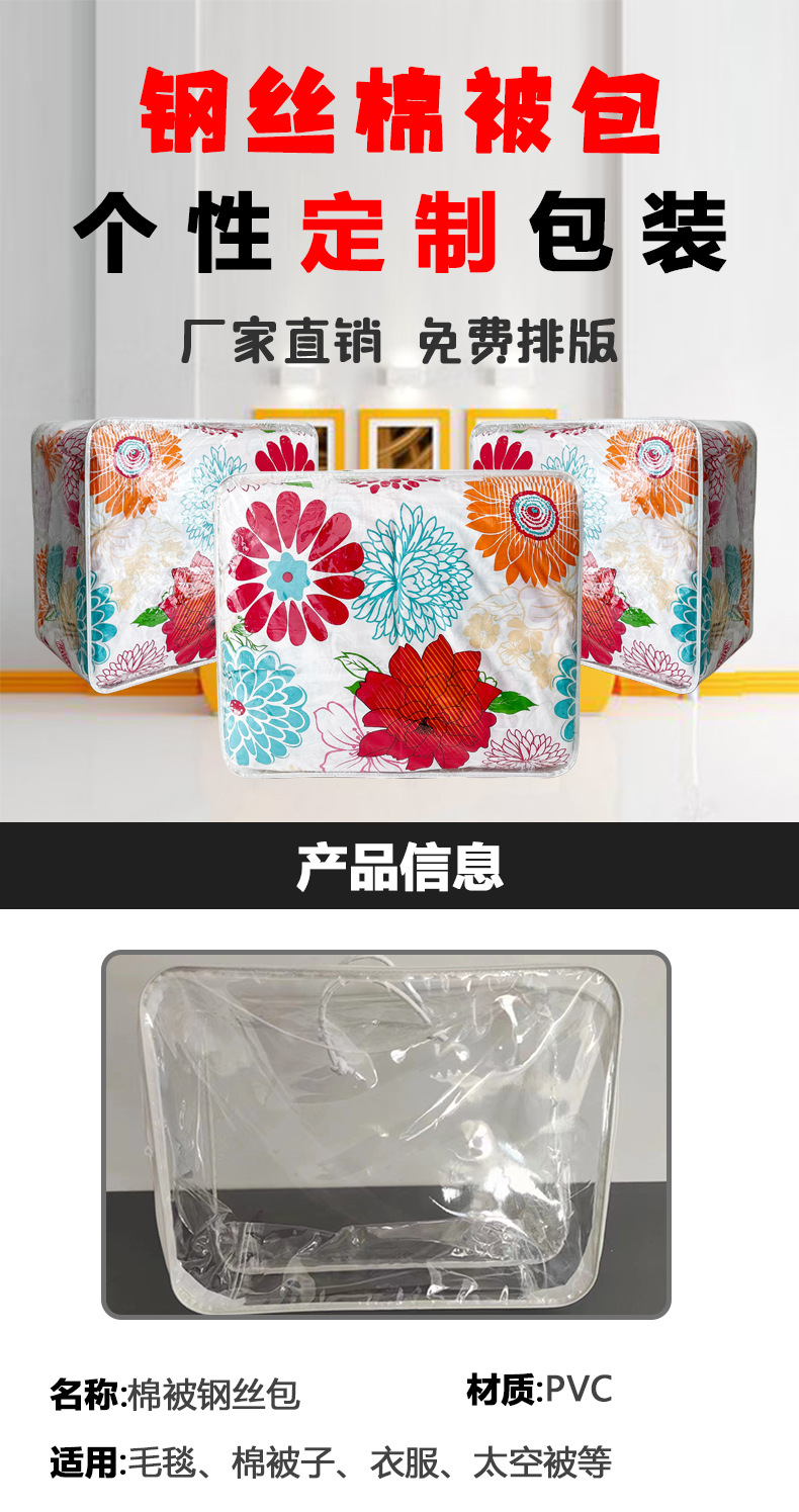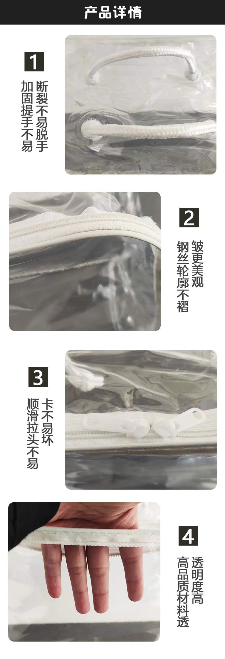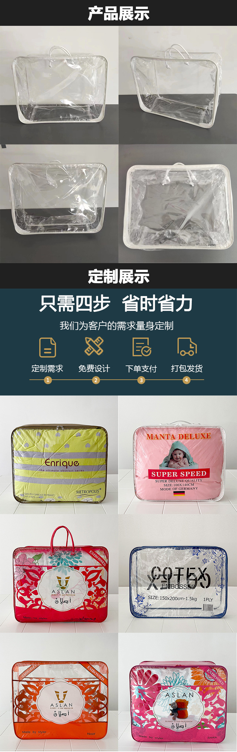 공장 도매 스팟 투명 이불 가방 홈 섬유 담요 포장 지퍼 플라스틱 핸드백 PVC 와이어 포장스토어 가기
