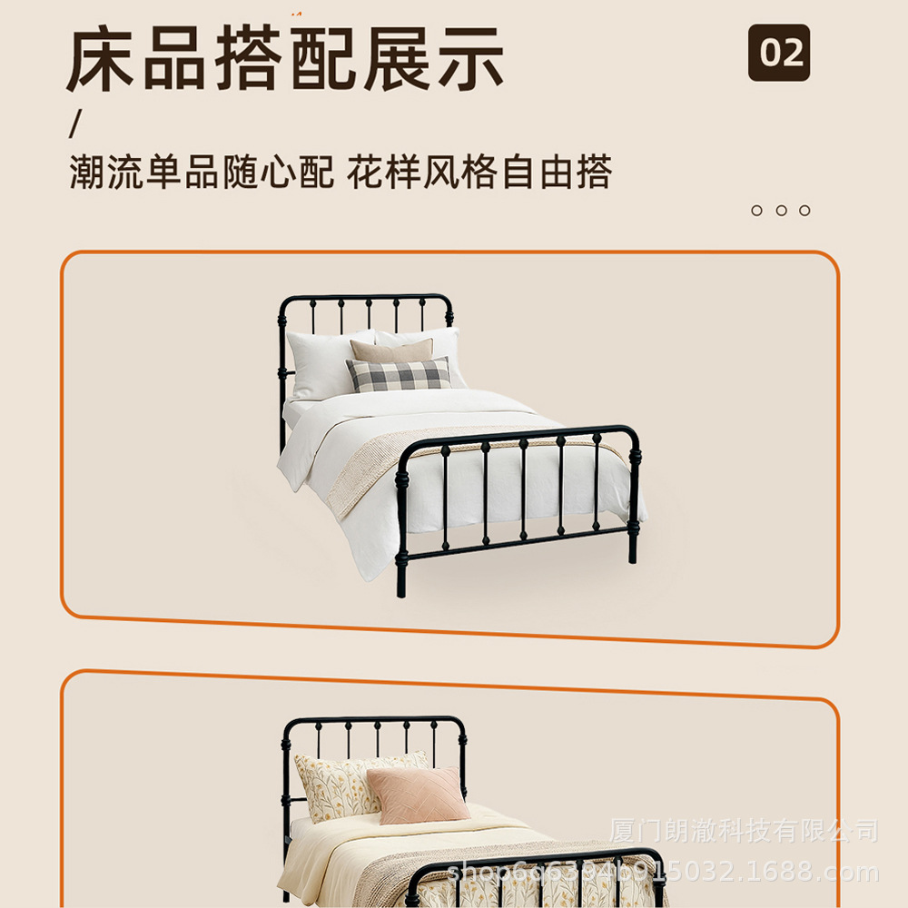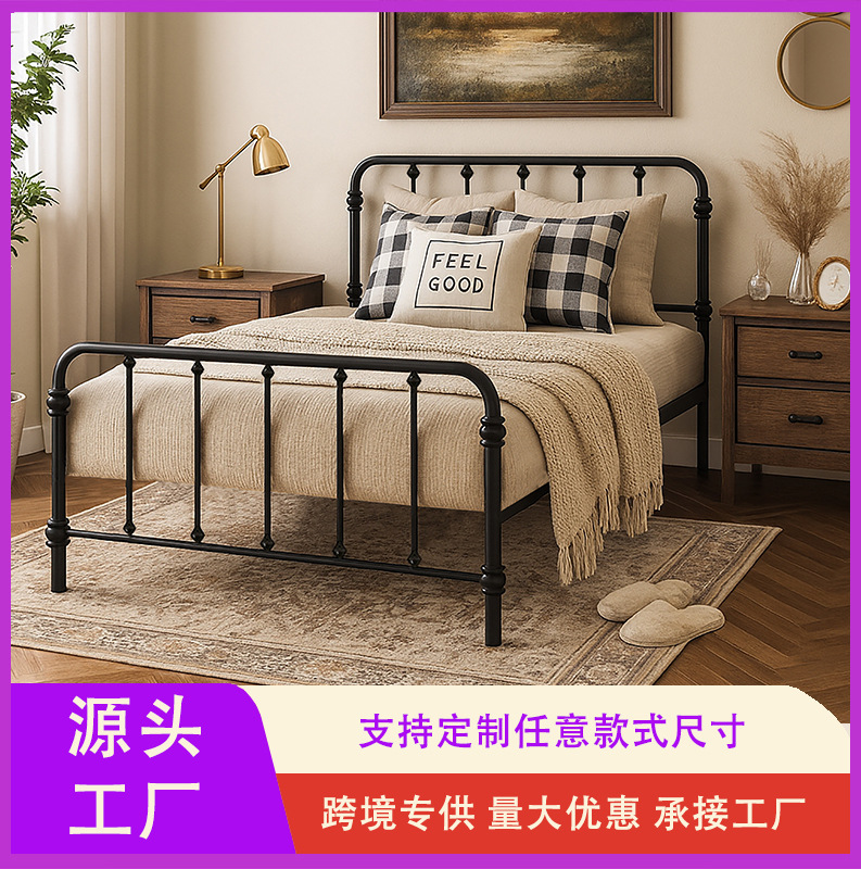 직원, 학생, 건설 현장 기숙사 임대실을 위한 1.5m 철제 싱글 침대 전용 국경 간 공급, 더블 철제 프레임 침대 1.8m스토어 가기
