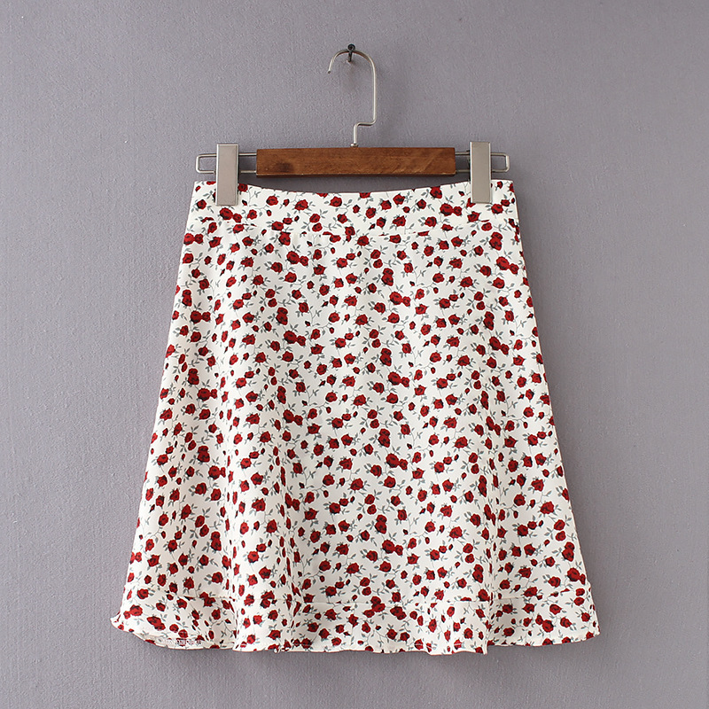슬림하고 여성스러운 숏 하이웨이스트 스커트, 장식적인 러플 밑단 미니 스커트스토어 가기