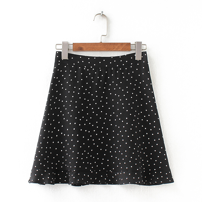 슬림하고 여성스러운 숏 하이웨이스트 스커트, 장식적인 러플 밑단 미니 스커트