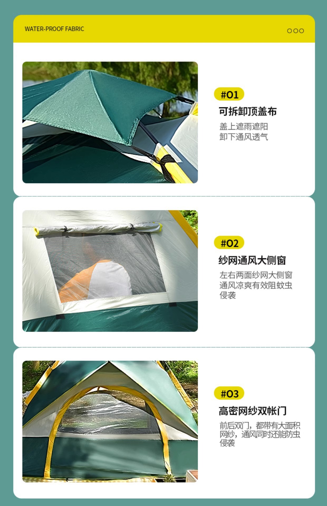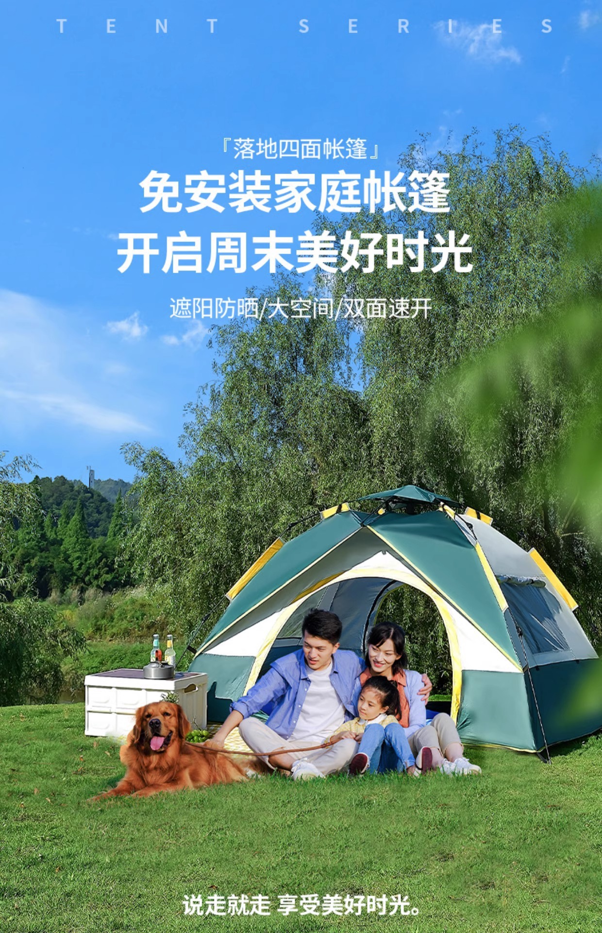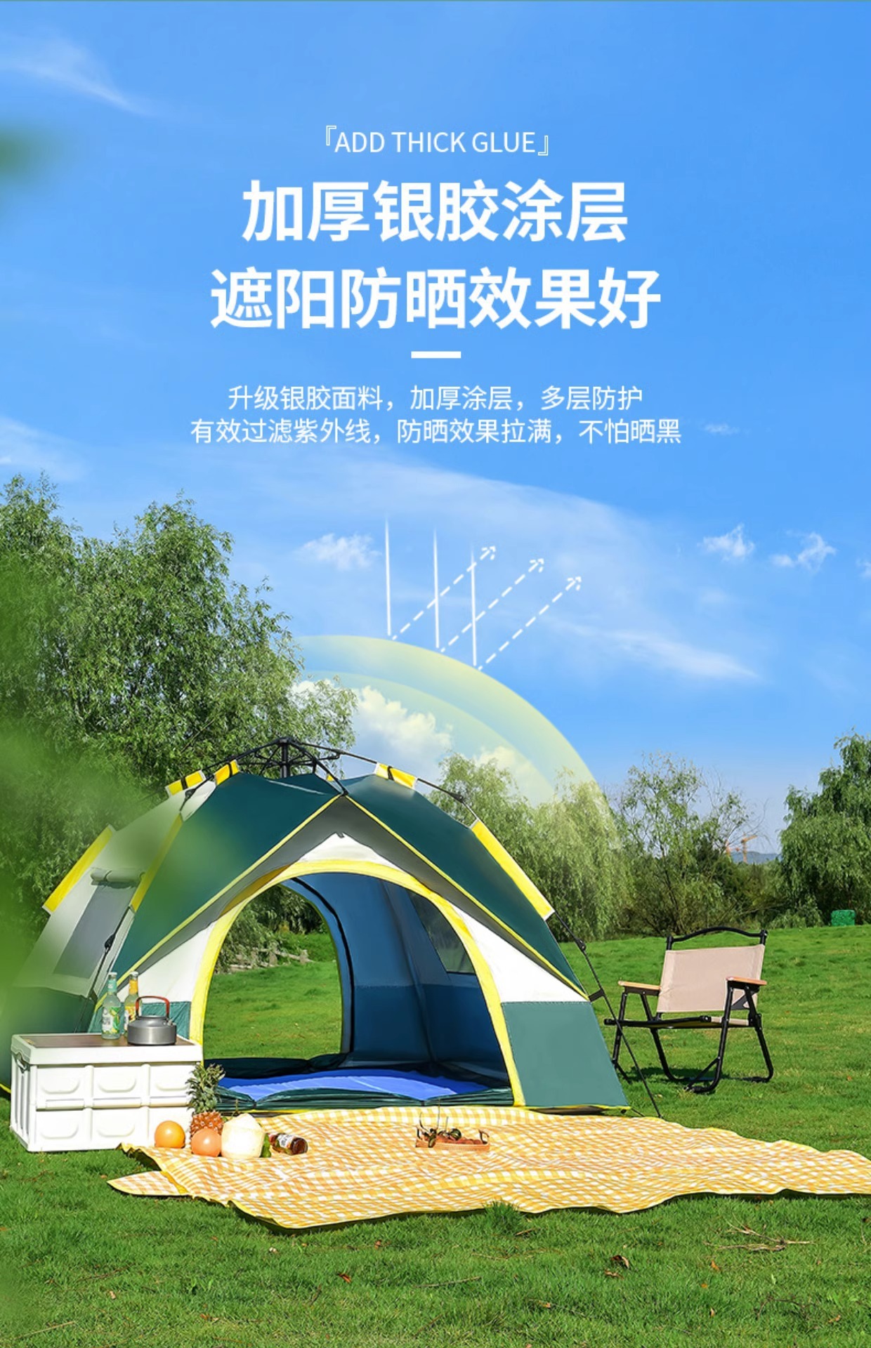 야외 캠핑용 텐트, 휴대용 접이식 캠핑 장비, 완전 자동 빠른 개방 - 비와 햇빛 차단