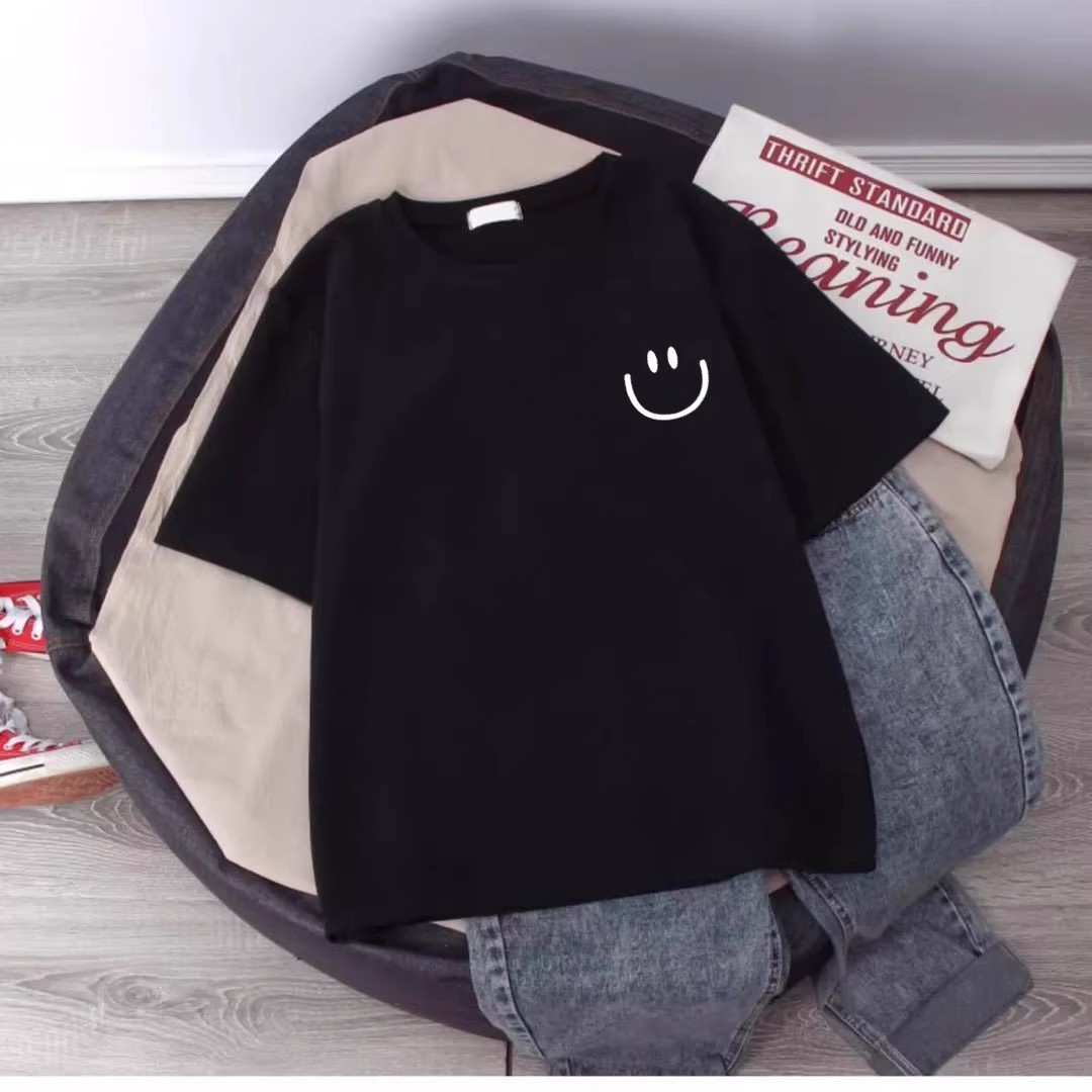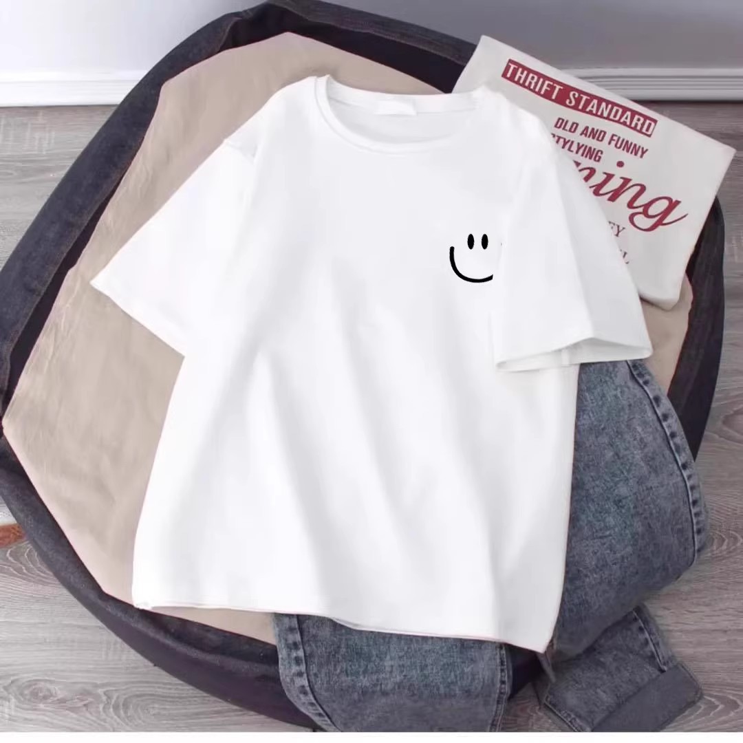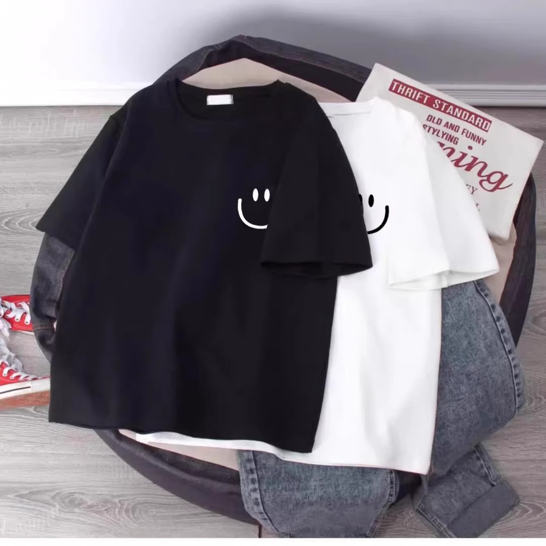 2025 큰 어린이를위한 패션 기본 셔츠 여름 면화 소년 티셔츠 어린이 간단한 웃는 얼굴 아동 의류 반팔 소녀스토어 가기
