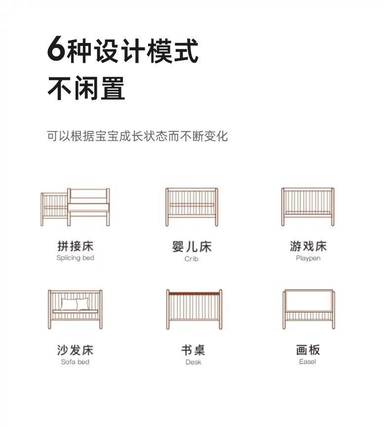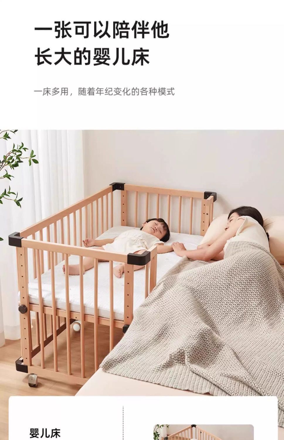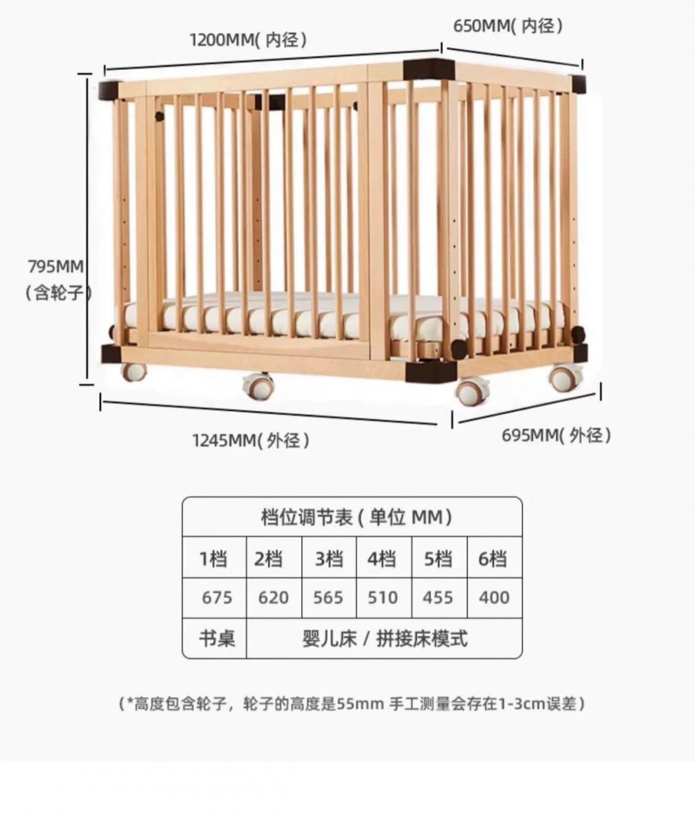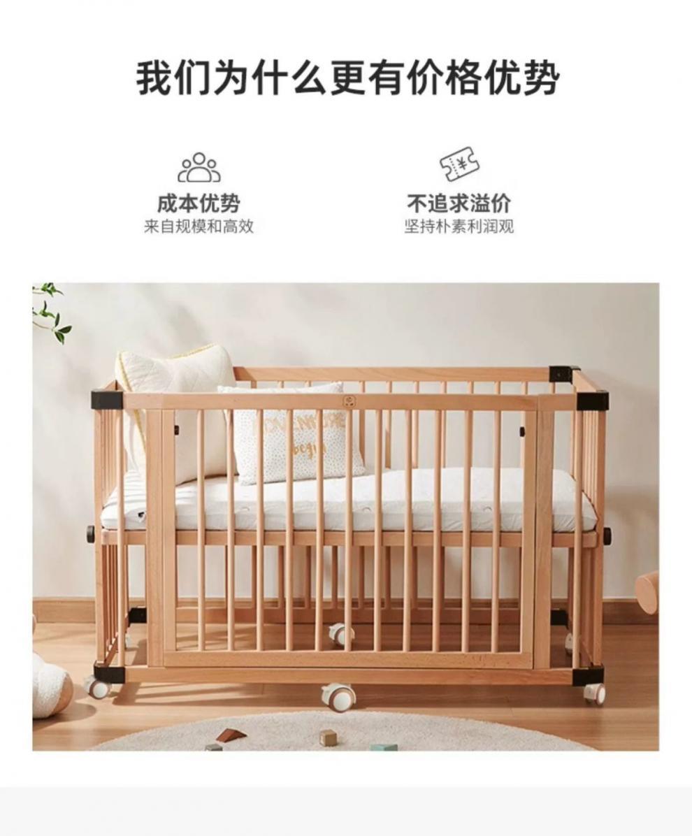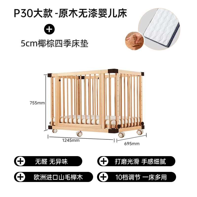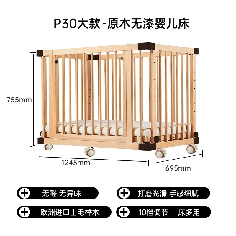 모든 단단한 나무 유아용 침대 접합 너도밤 나무 이동식 침실 대형 침대 확장 다기능 신생아 침대 옆 침대