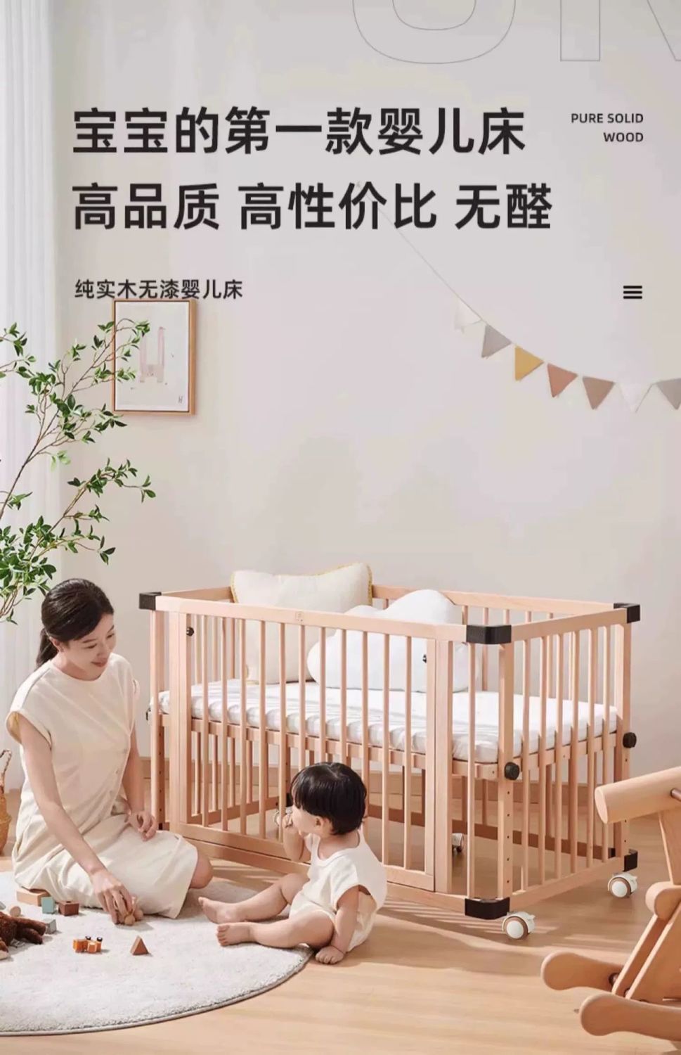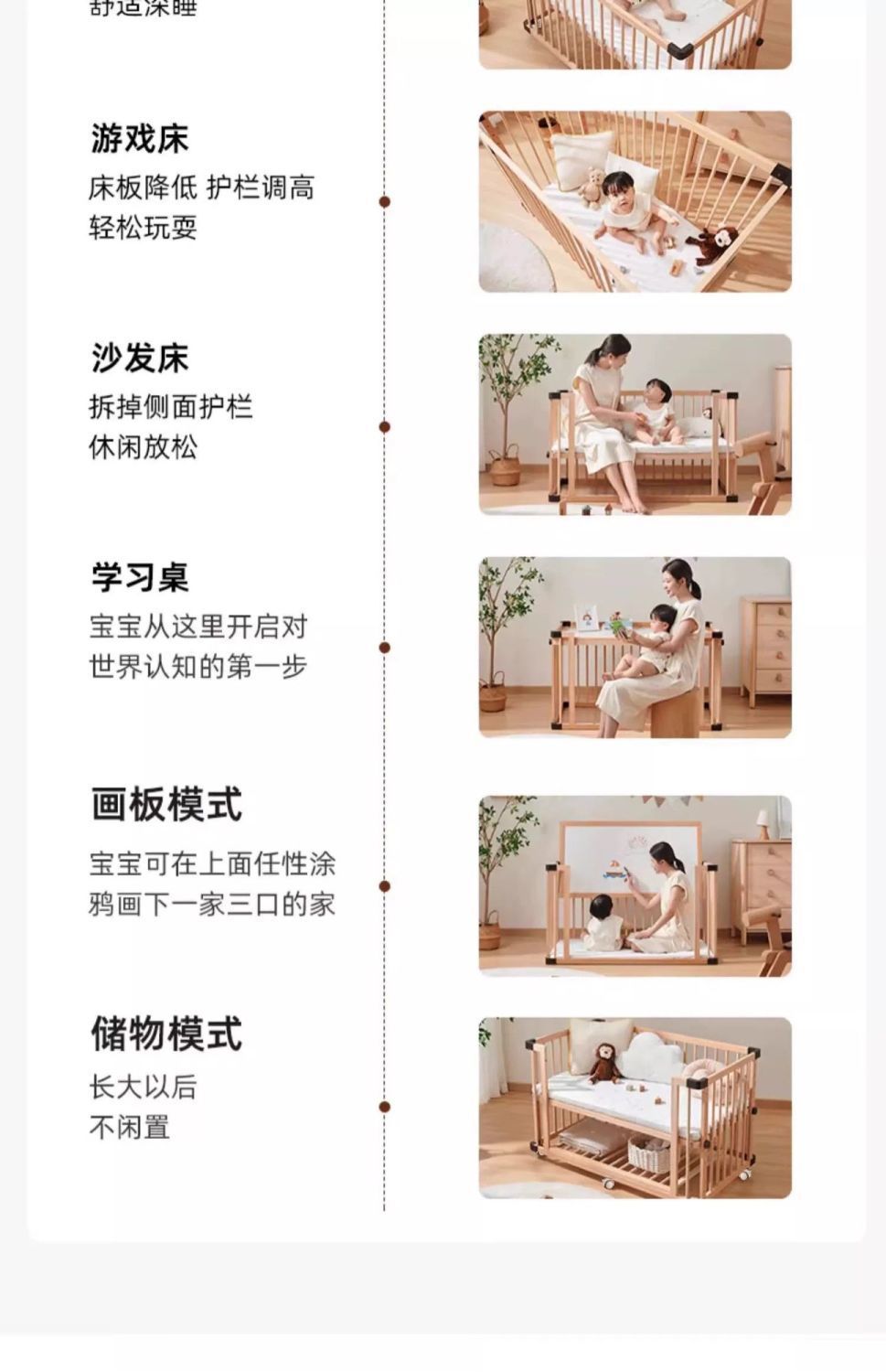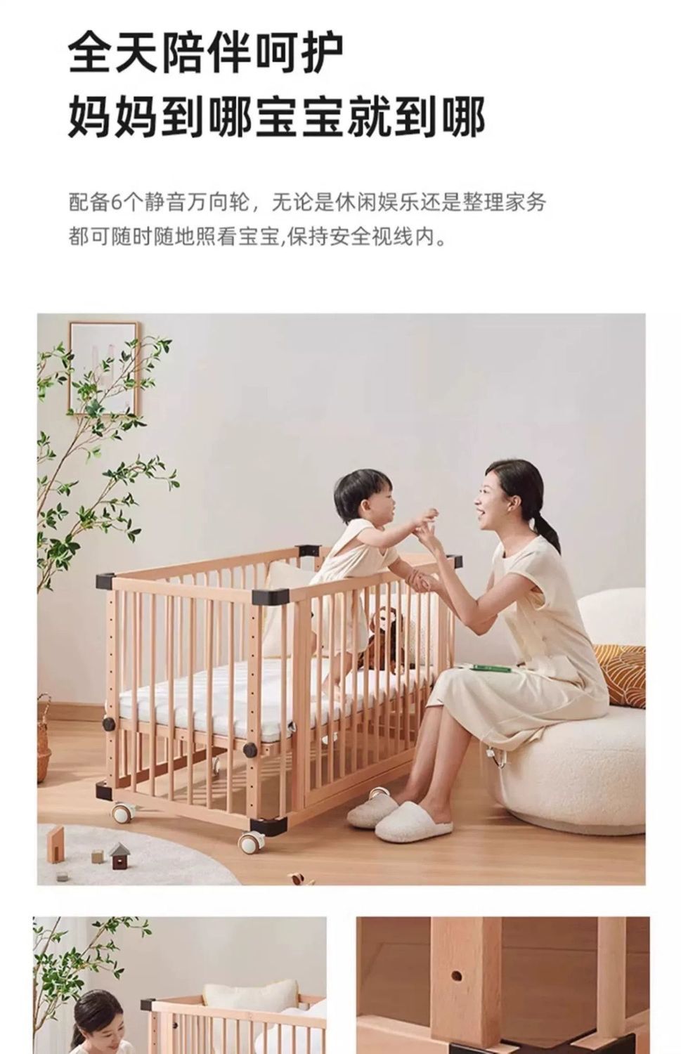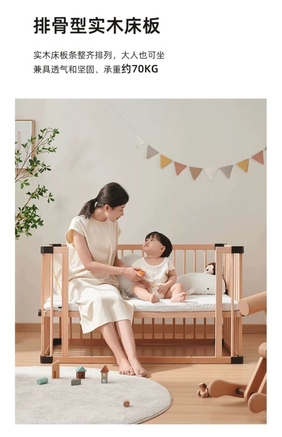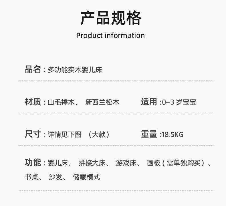 모든 단단한 나무 유아용 침대 접합 너도밤 나무 이동식 침실 대형 침대 확장 다기능 신생아 침대 옆 침대