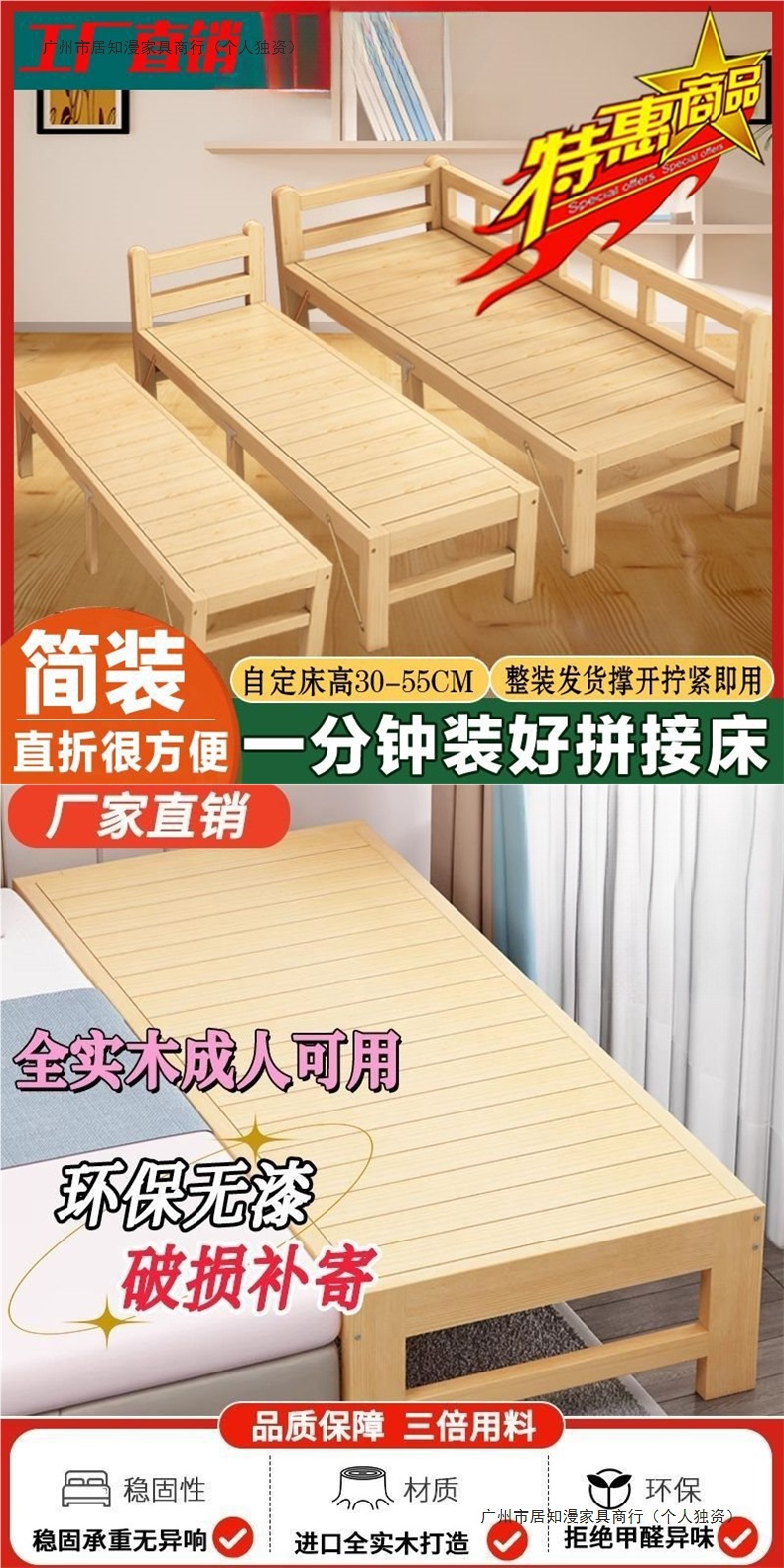 성인용 원목 침대, 확장 접합 침대, 어린이 싱글 침대, 소년 소녀 침대 옆 간이 침대, 유아용 침대스토어 가기