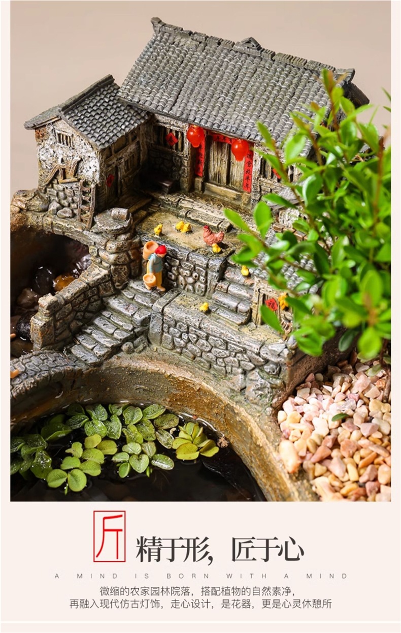 • 작은 다리와 흐르는 물 대형 빈 대야(물펌프 장식품)
