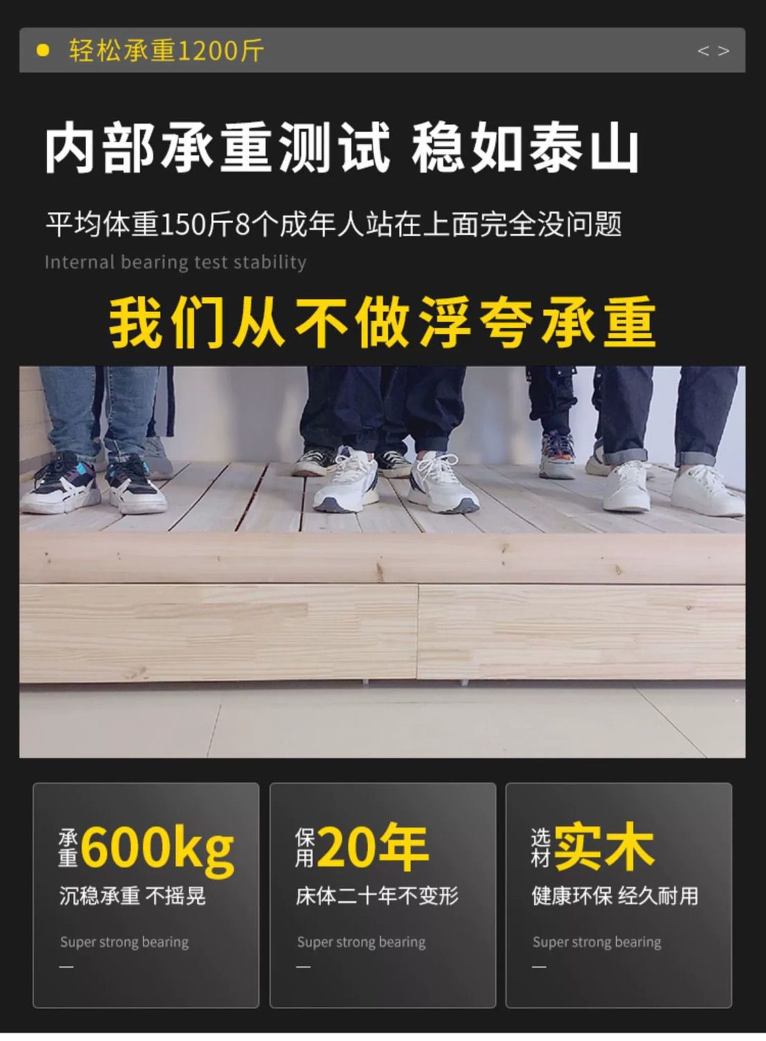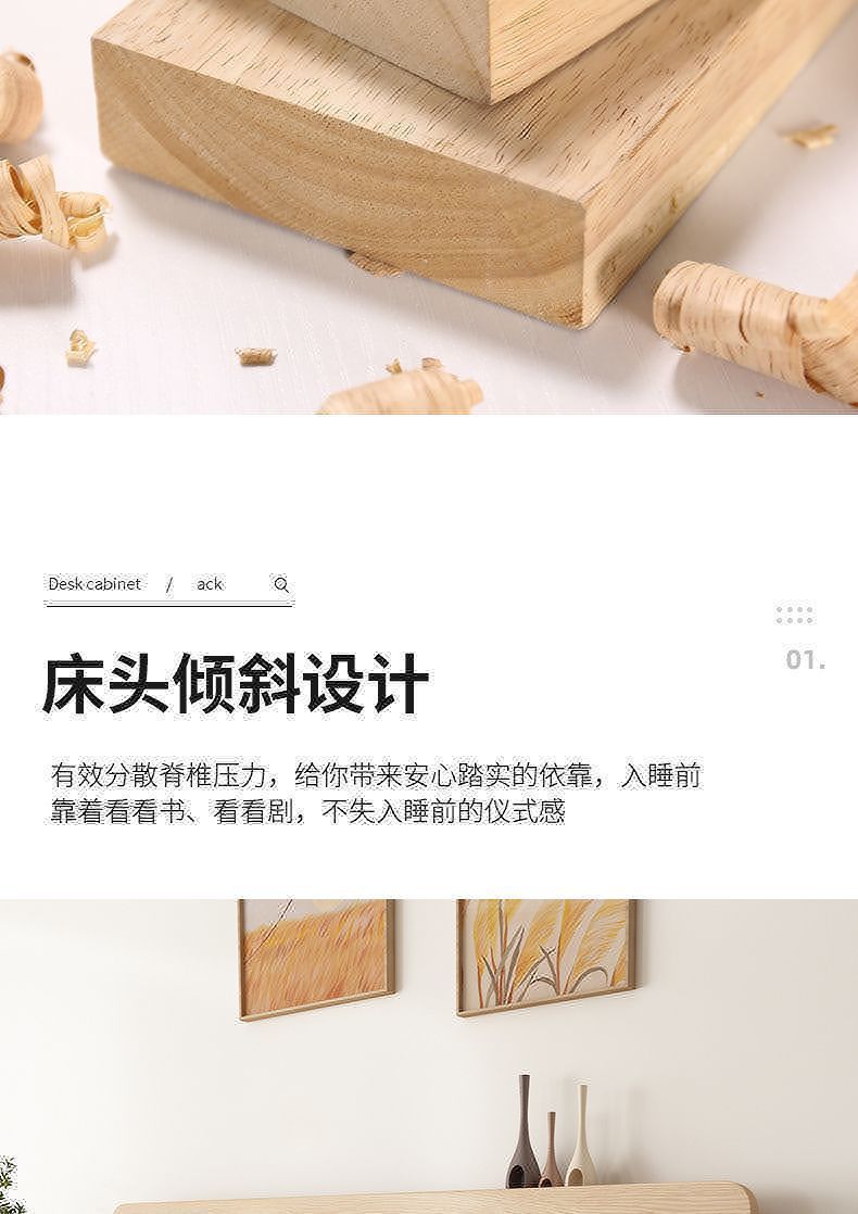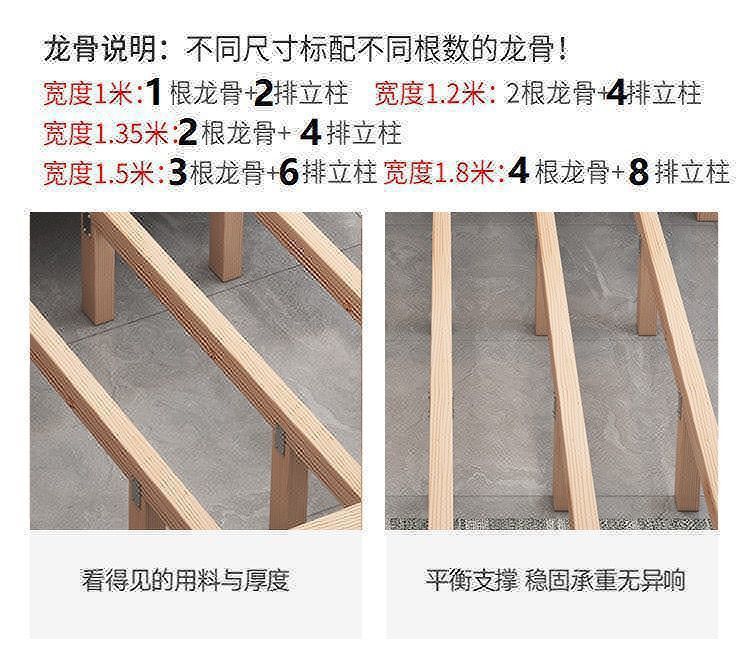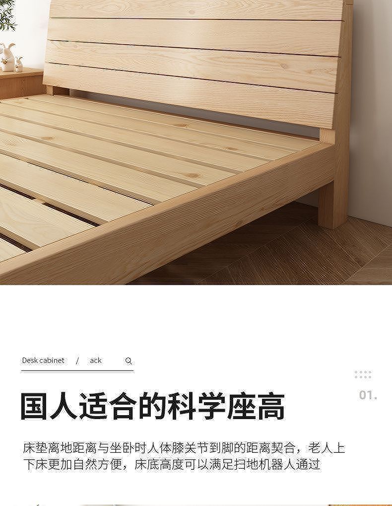 • [두꺼운 용골 6개] 원목침대 높이 40