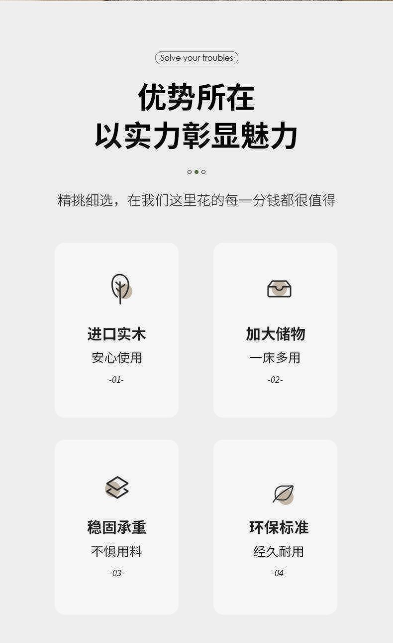 • [두꺼운 용골 6개] 원목 침대 높이 30 + 서랍 + 쿠션