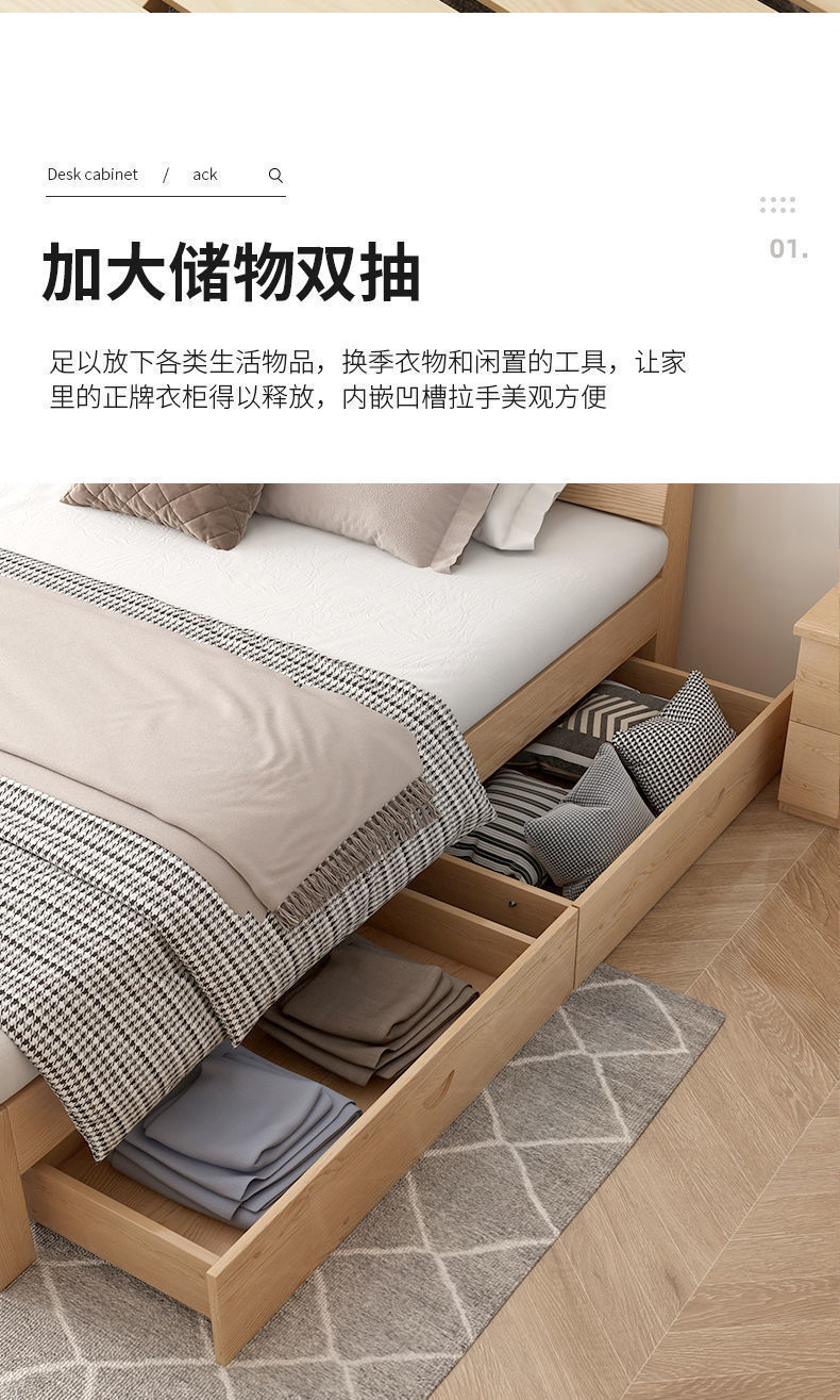 • [두꺼운 6개의 용골] 원목 침대 높이 30 + 서랍