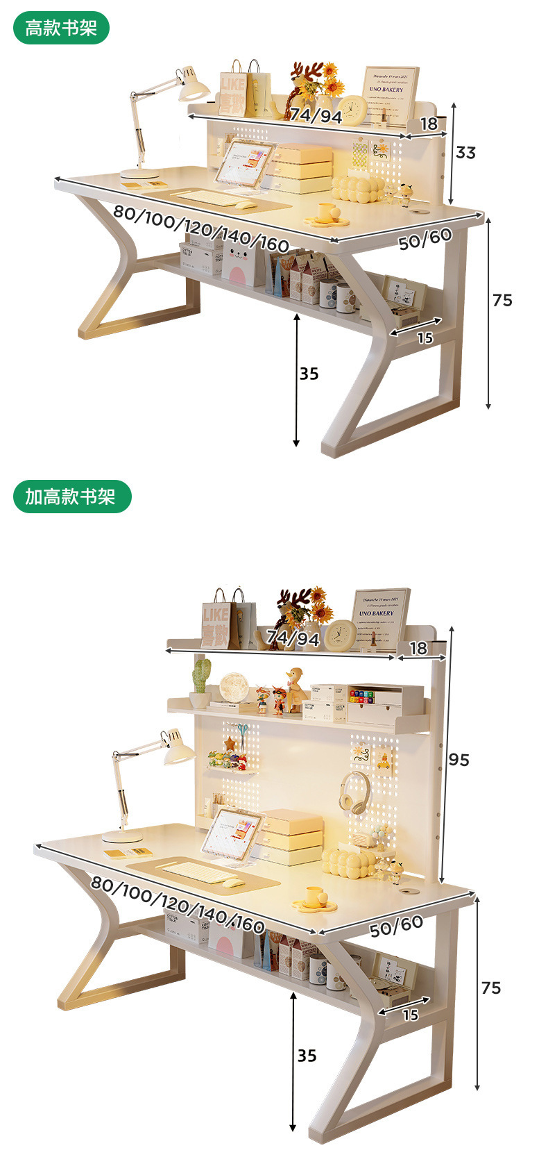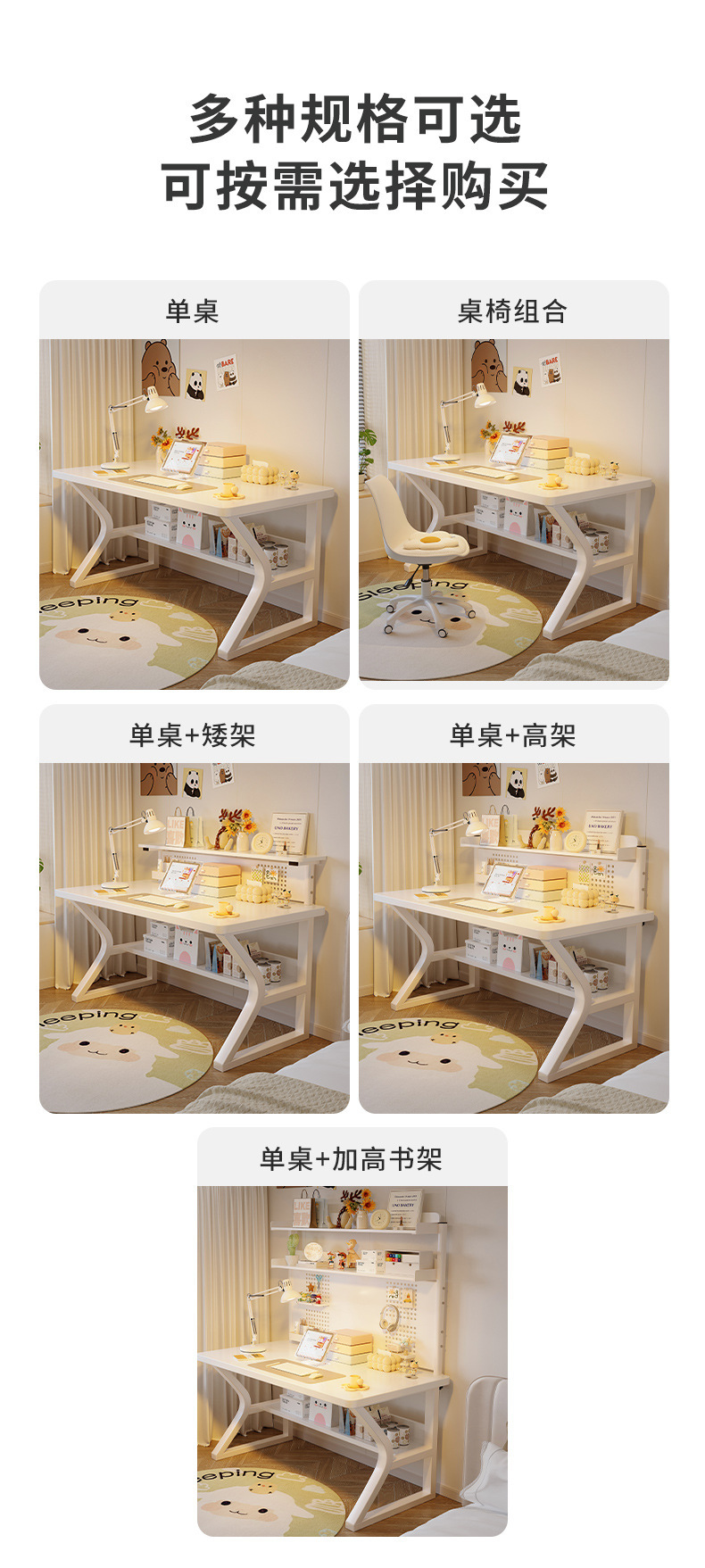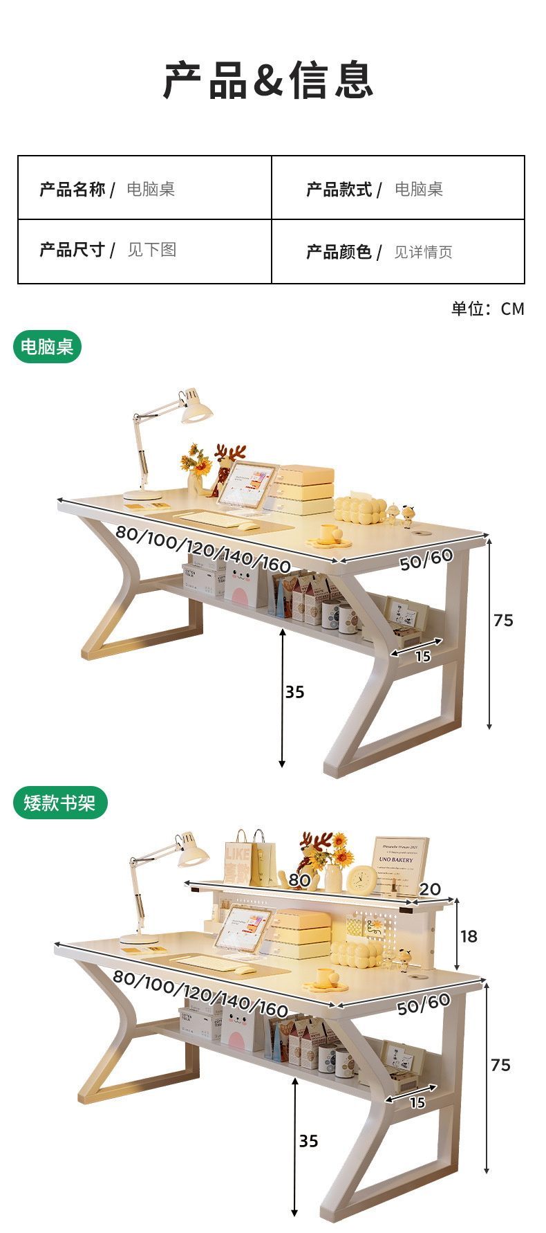 • [싱글테이블 + 중공판 책장] 웜화이트 80*50cm