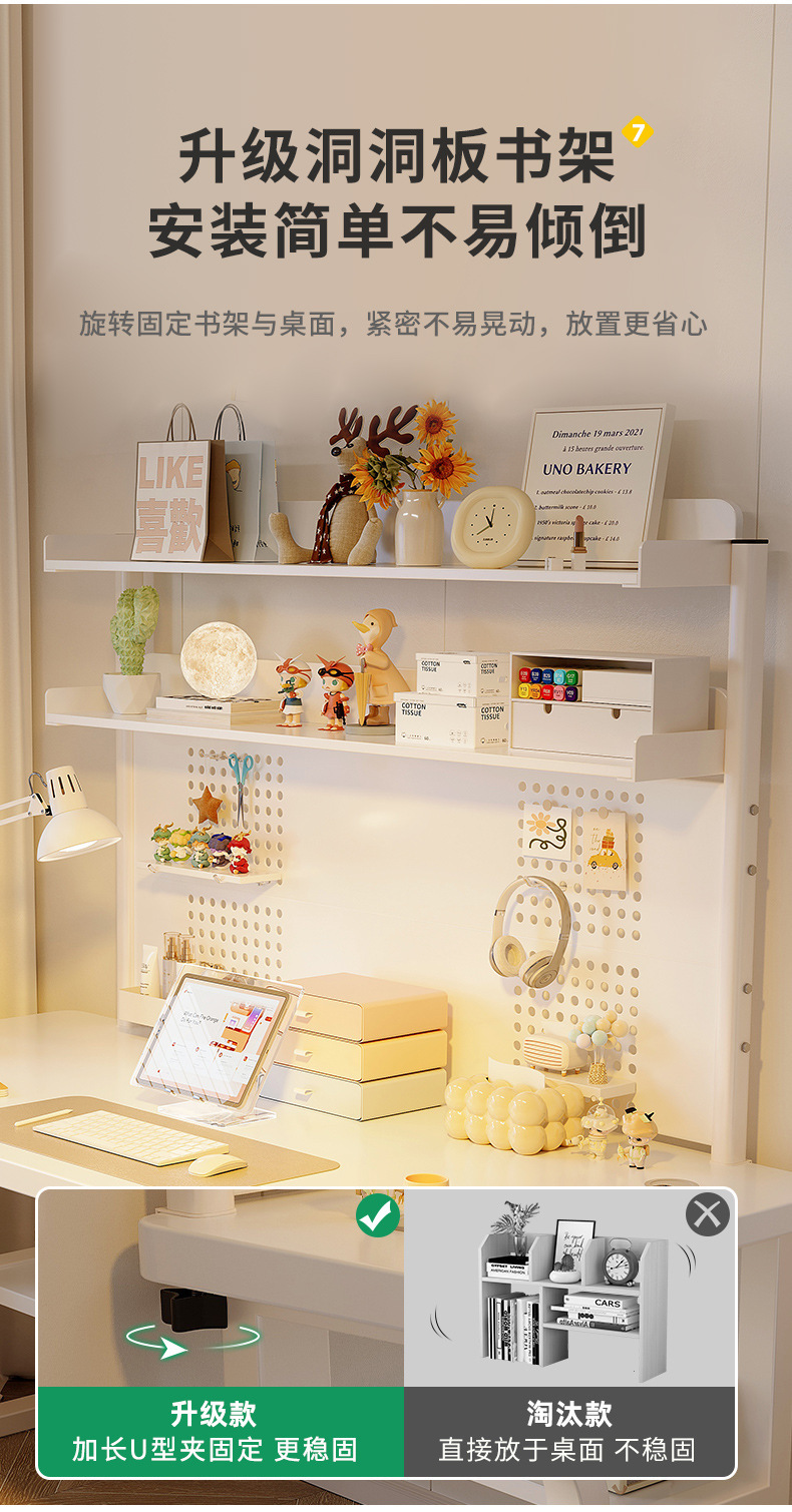 • [싱글테이블 + 높은 홀보드 책장] 웜화이트 140*60cm