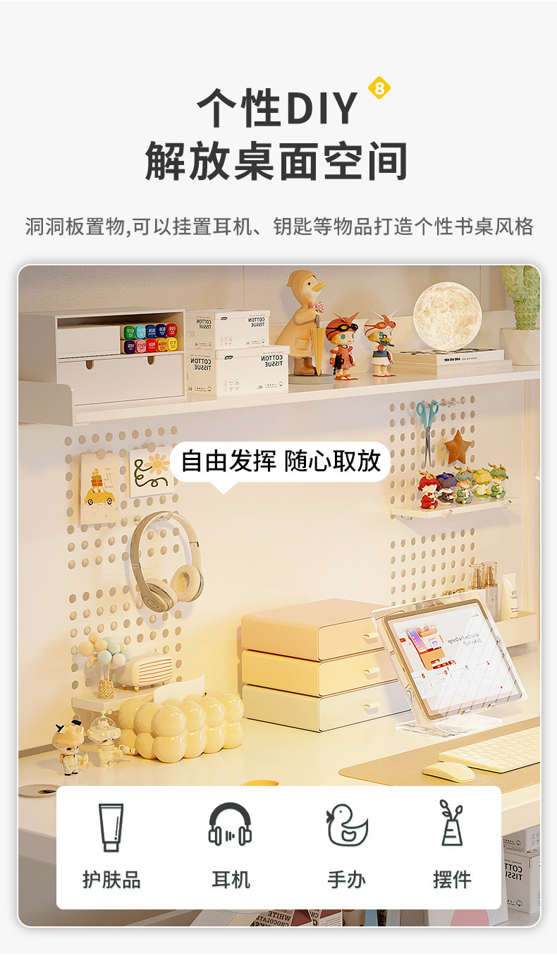 • [싱글테이블+짧은 홀보드 책장] 웜화이트 100*60cm
