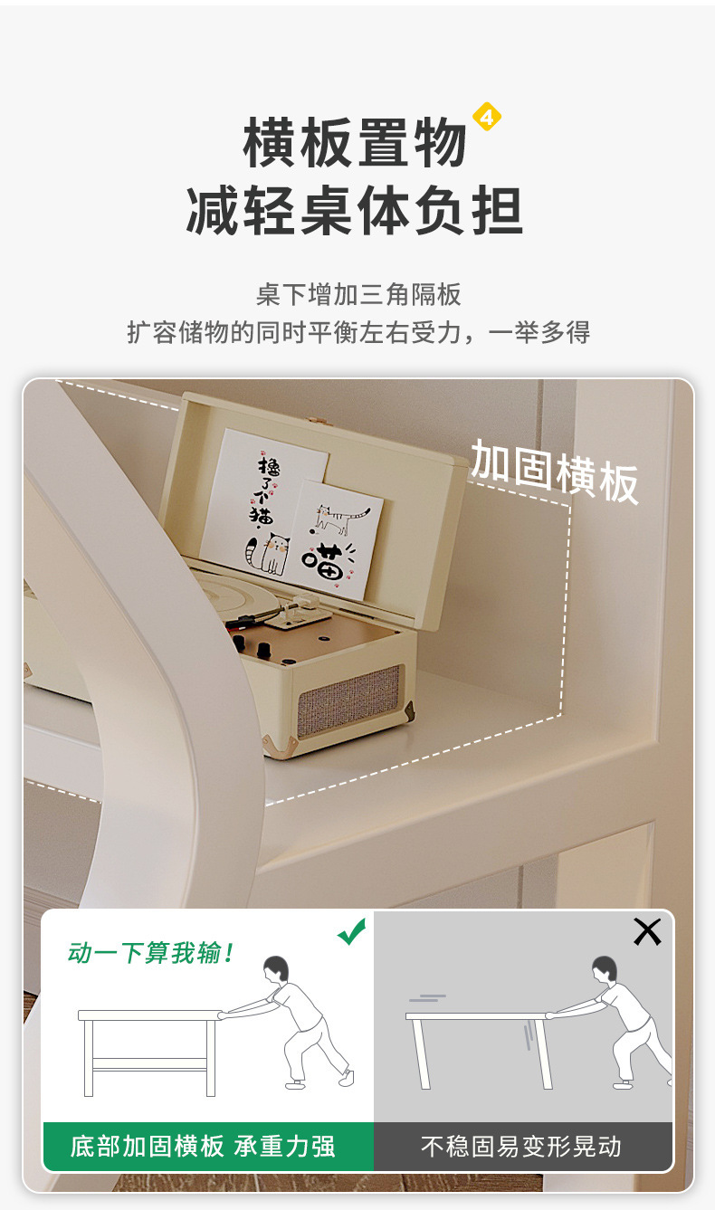 • [싱글테이블 + 중공판 책장] 웜화이트 160*60cm