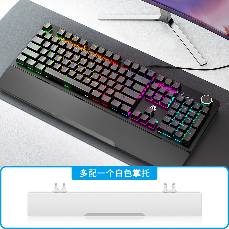 • 브라운 샤프트-[싱글 키보드] 손잡이 블랙 혼합 조명 + 흑백 손목 받침대-표준 없음