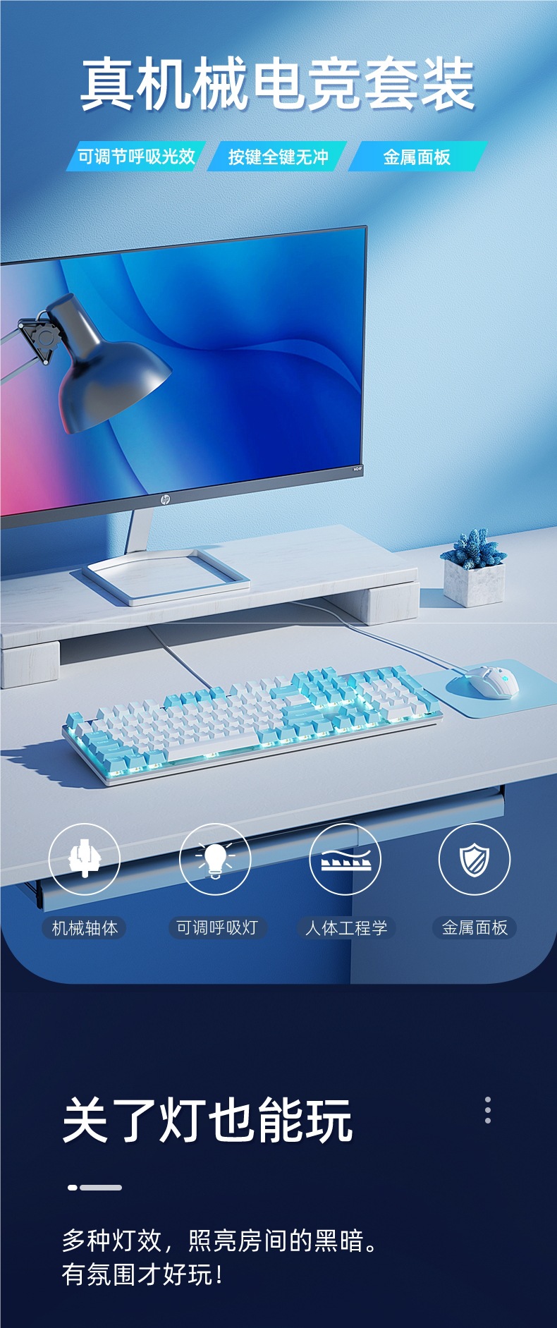 • 브라운 샤프트-[싱글 키보드] 실버 화이트 아이스 블루 라이트-표준 없음