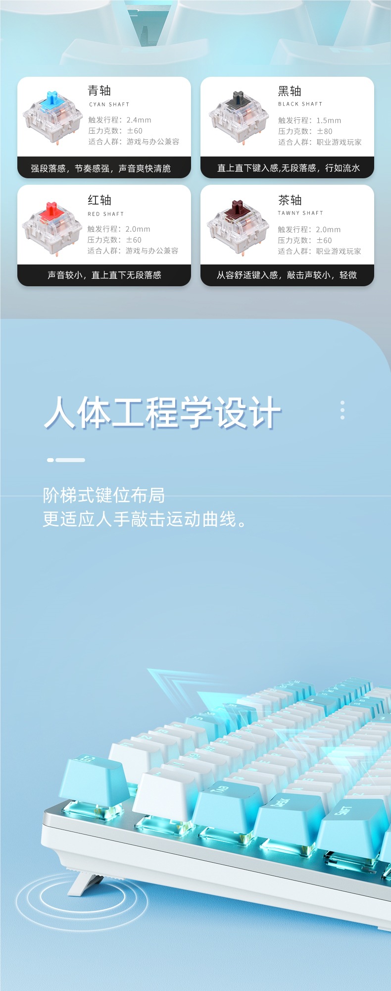 • 브라운 샤프트-[싱글 키보드] 흰색 및 파란색 DIY-표준 없음