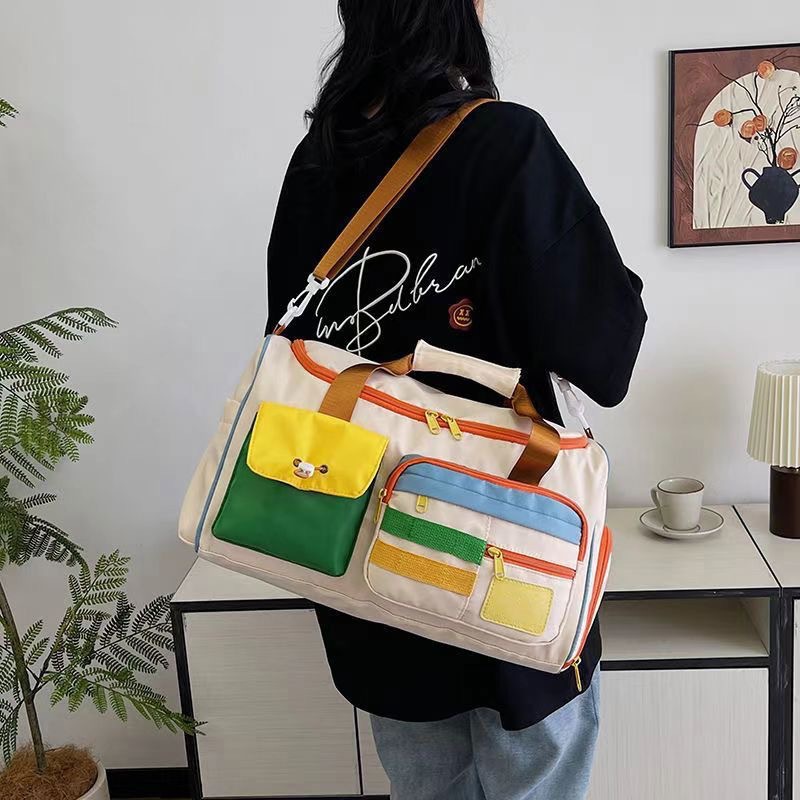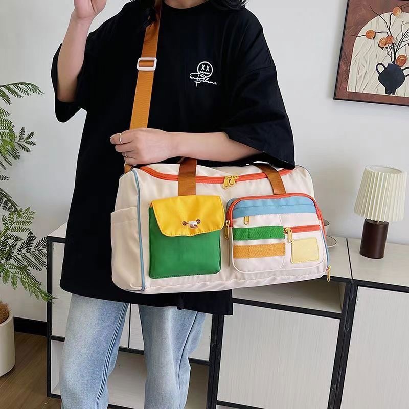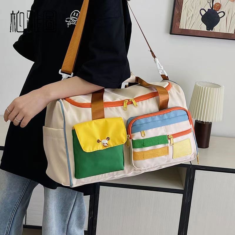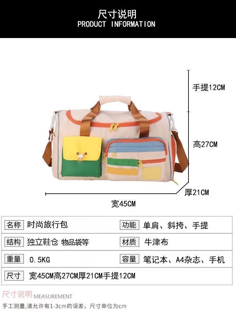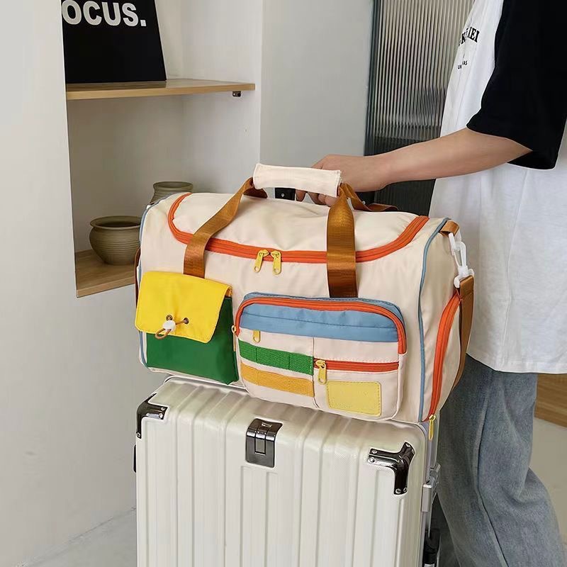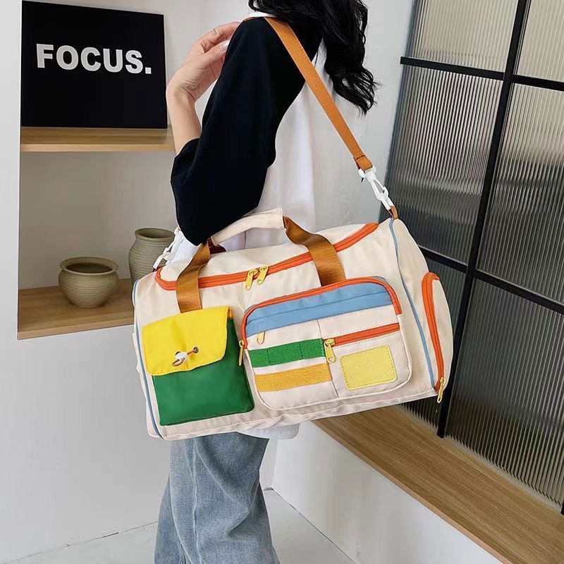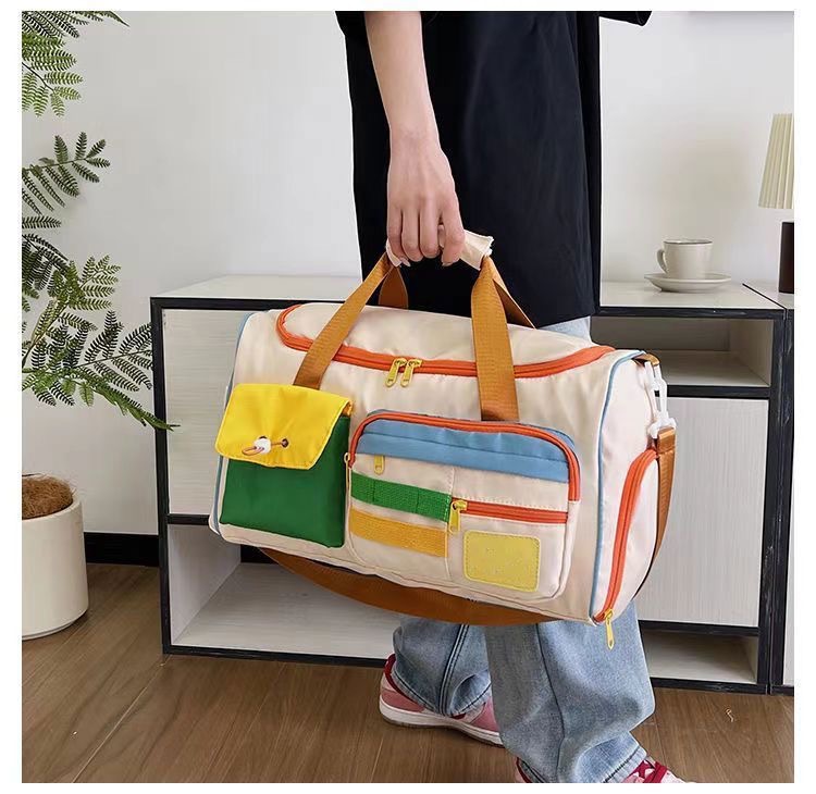 2025 새로운 도파민 대비 색상 여행 가방 스포츠 피트니스 가방 대용량 여행 휴대용 크로스 바디 수하물 가방