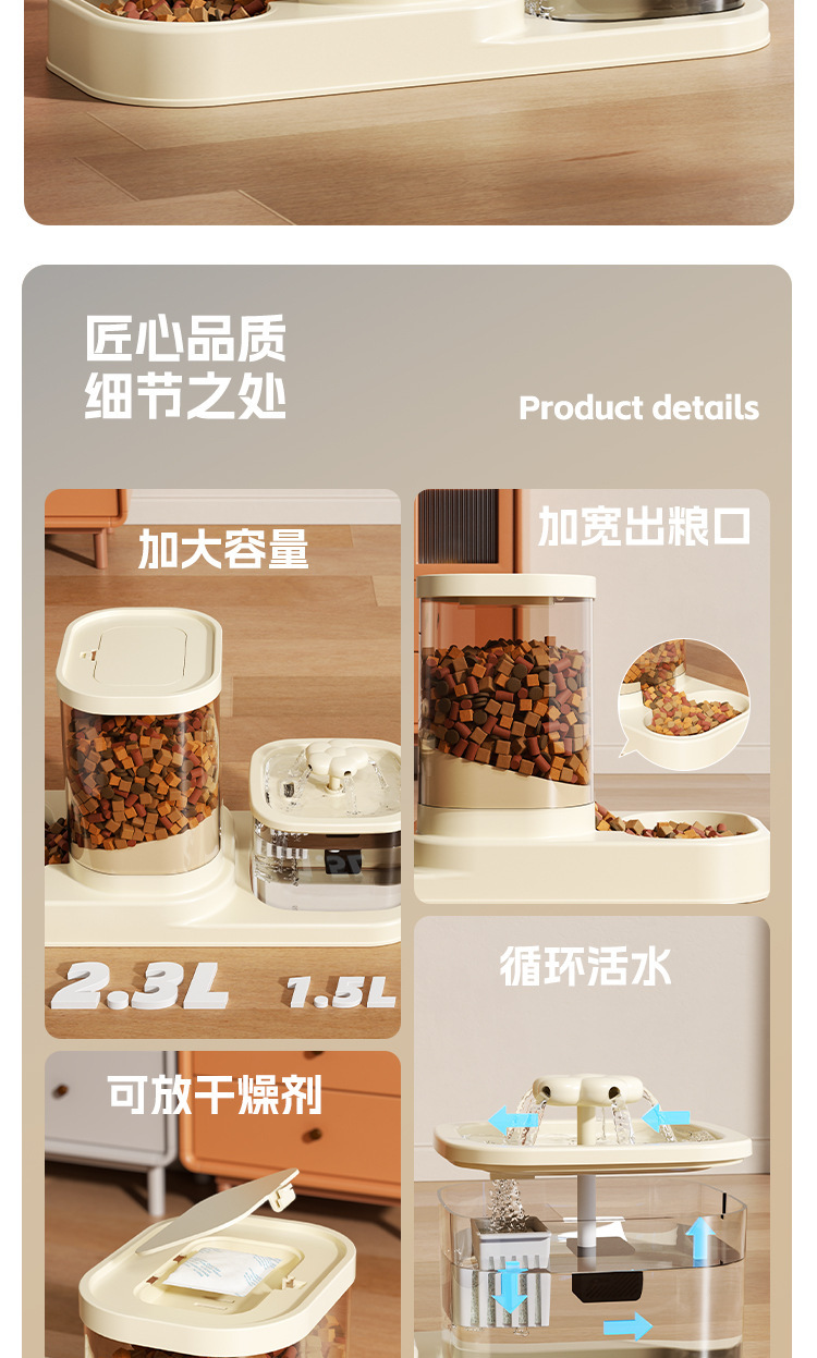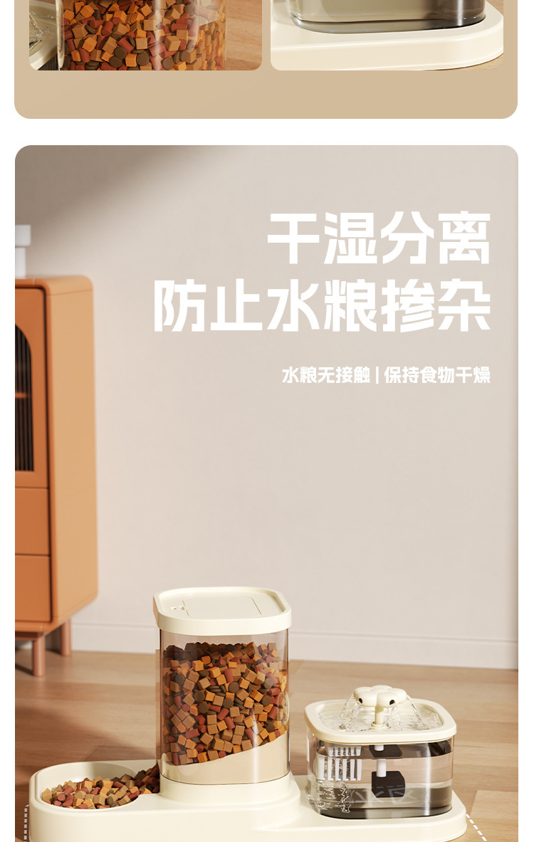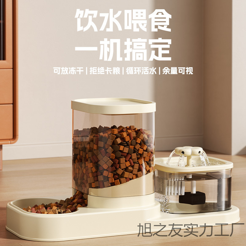 고양이 급수 및 급식 일체형 급수기, 반려동물 물순환 자동 흐름 투인원 고양이 그릇과 강아지 그릇