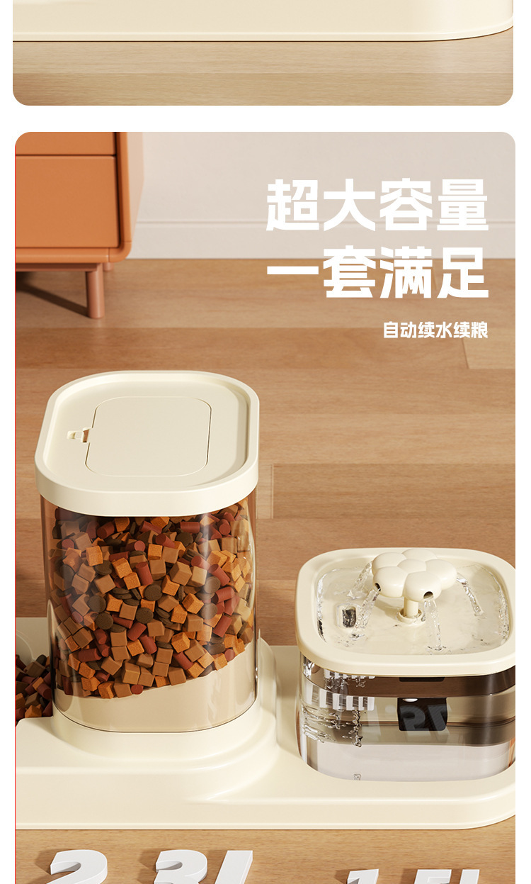 고양이 급수 및 급식 일체형 급수기, 반려동물 물순환 자동 흐름 투인원 고양이 그릇과 강아지 그릇스토어 가기