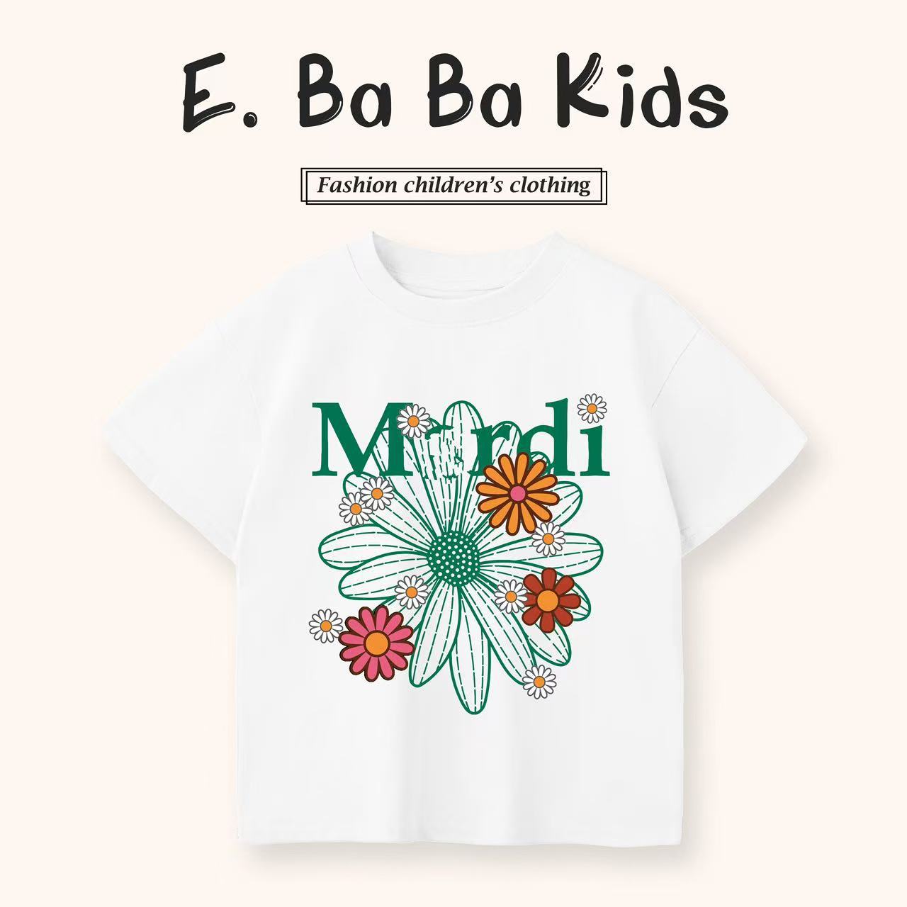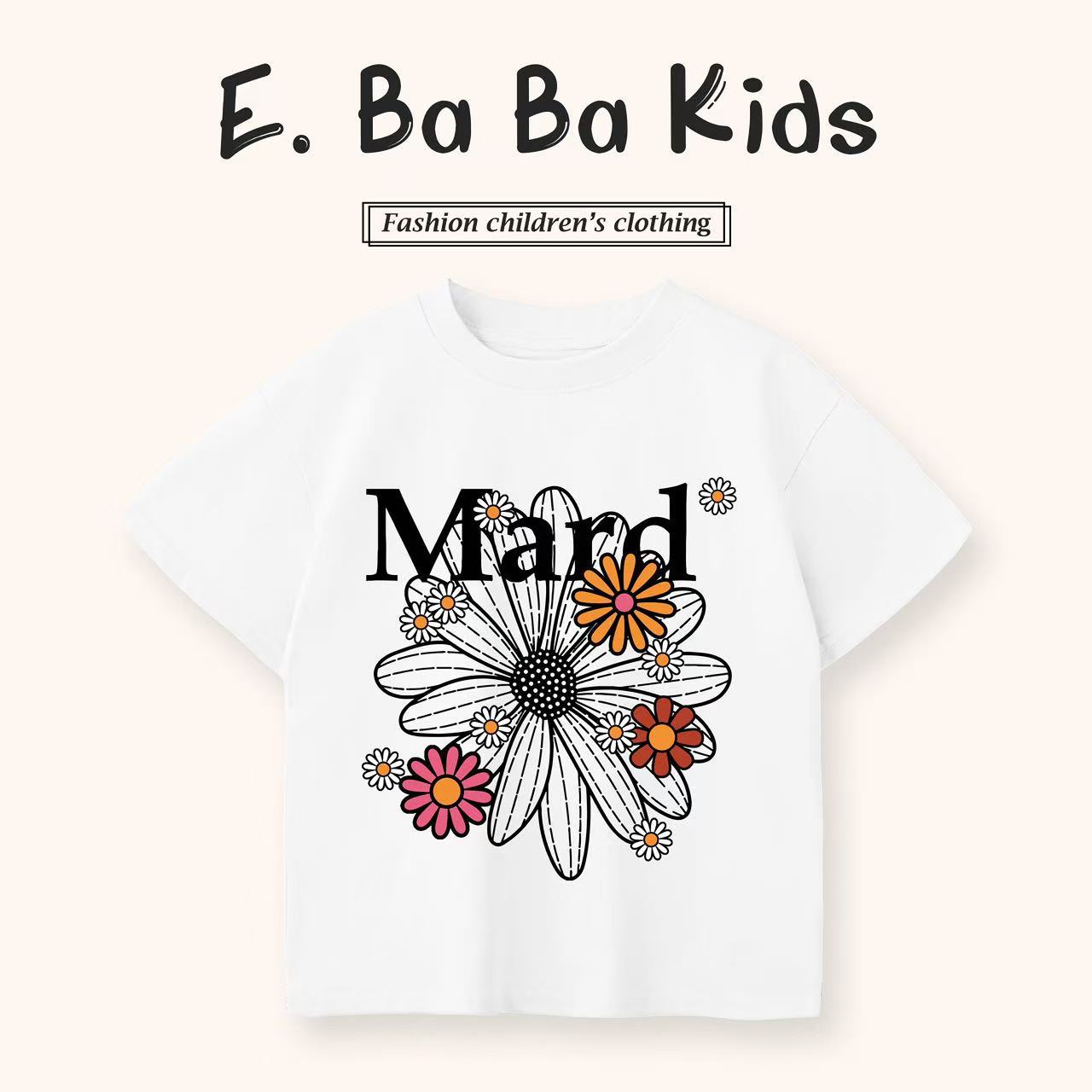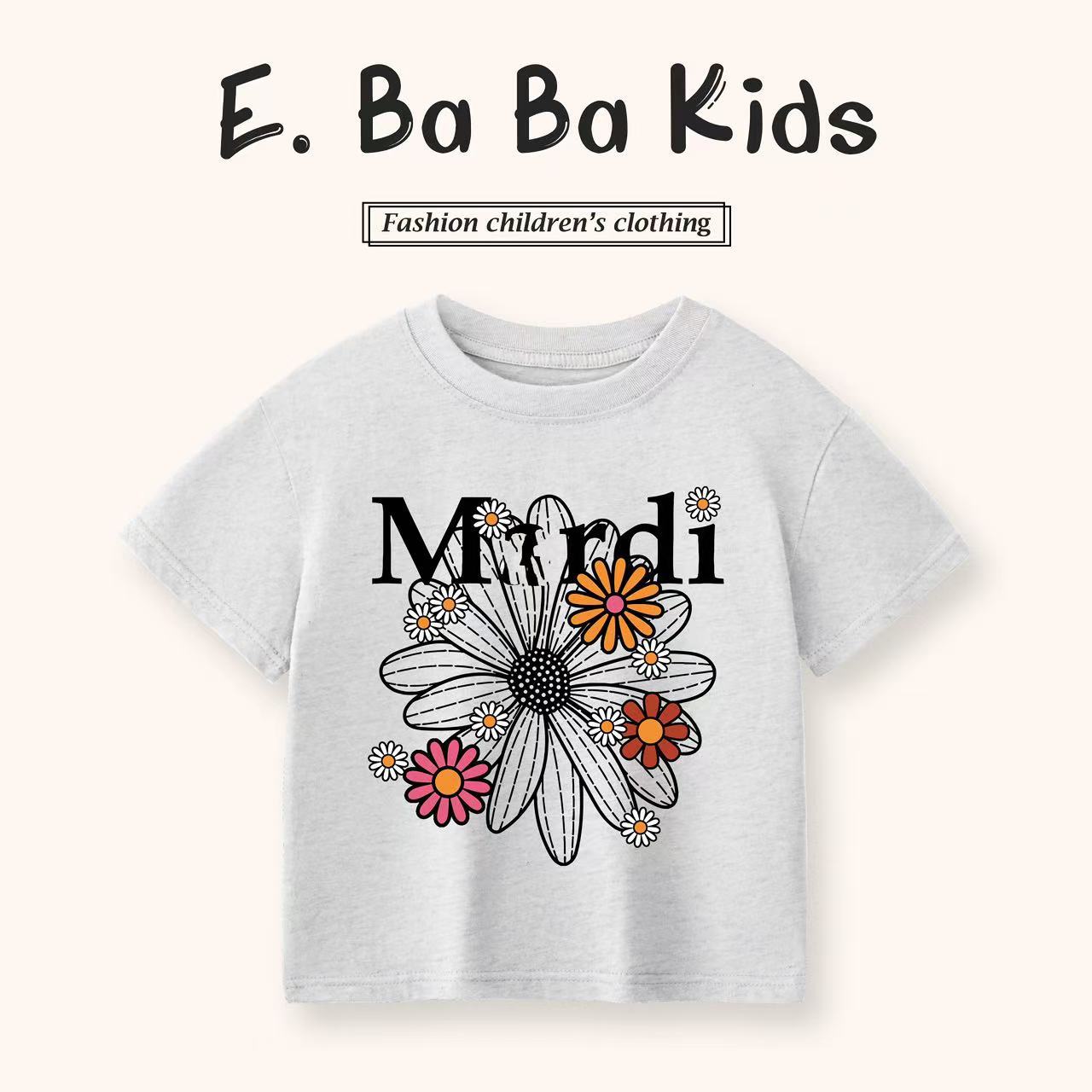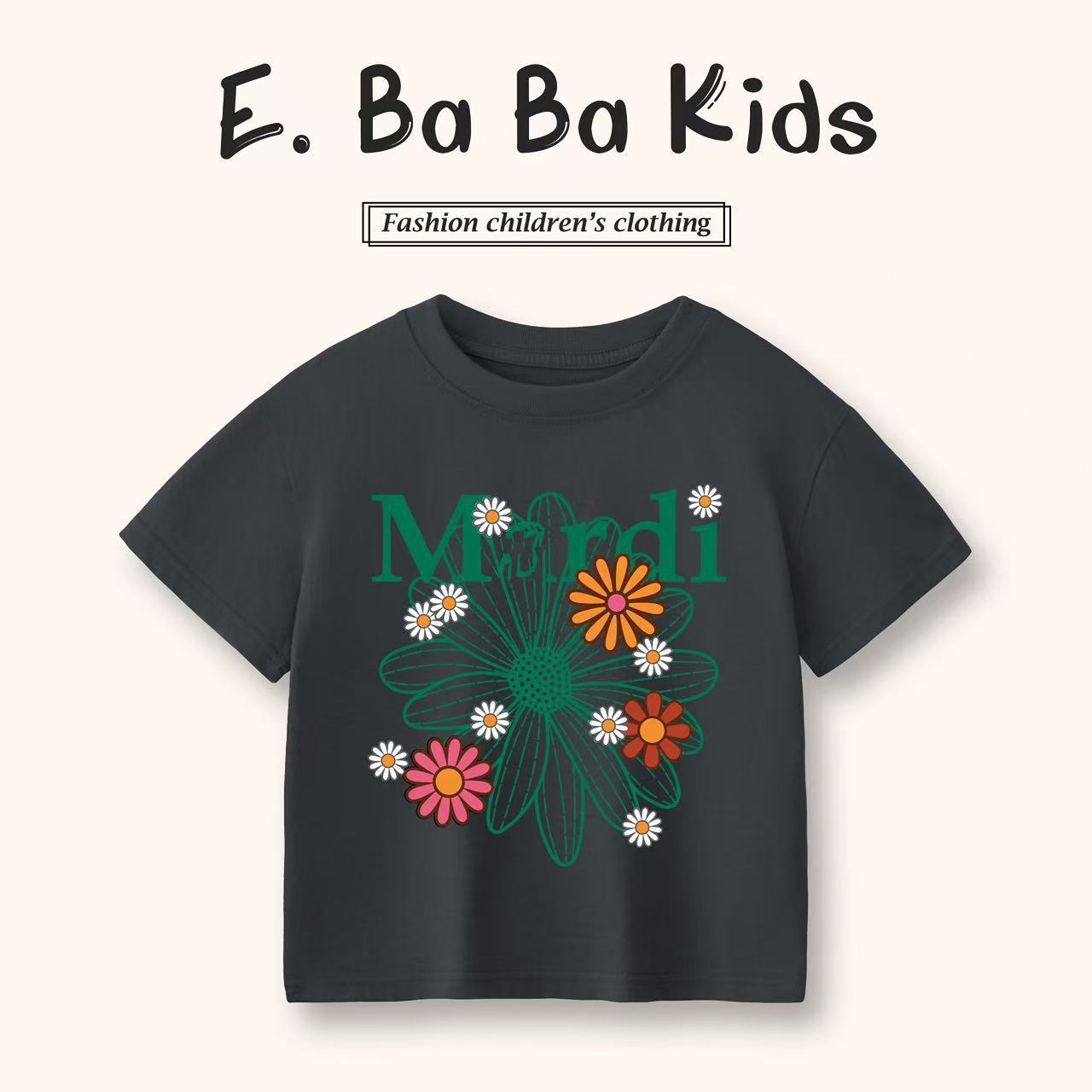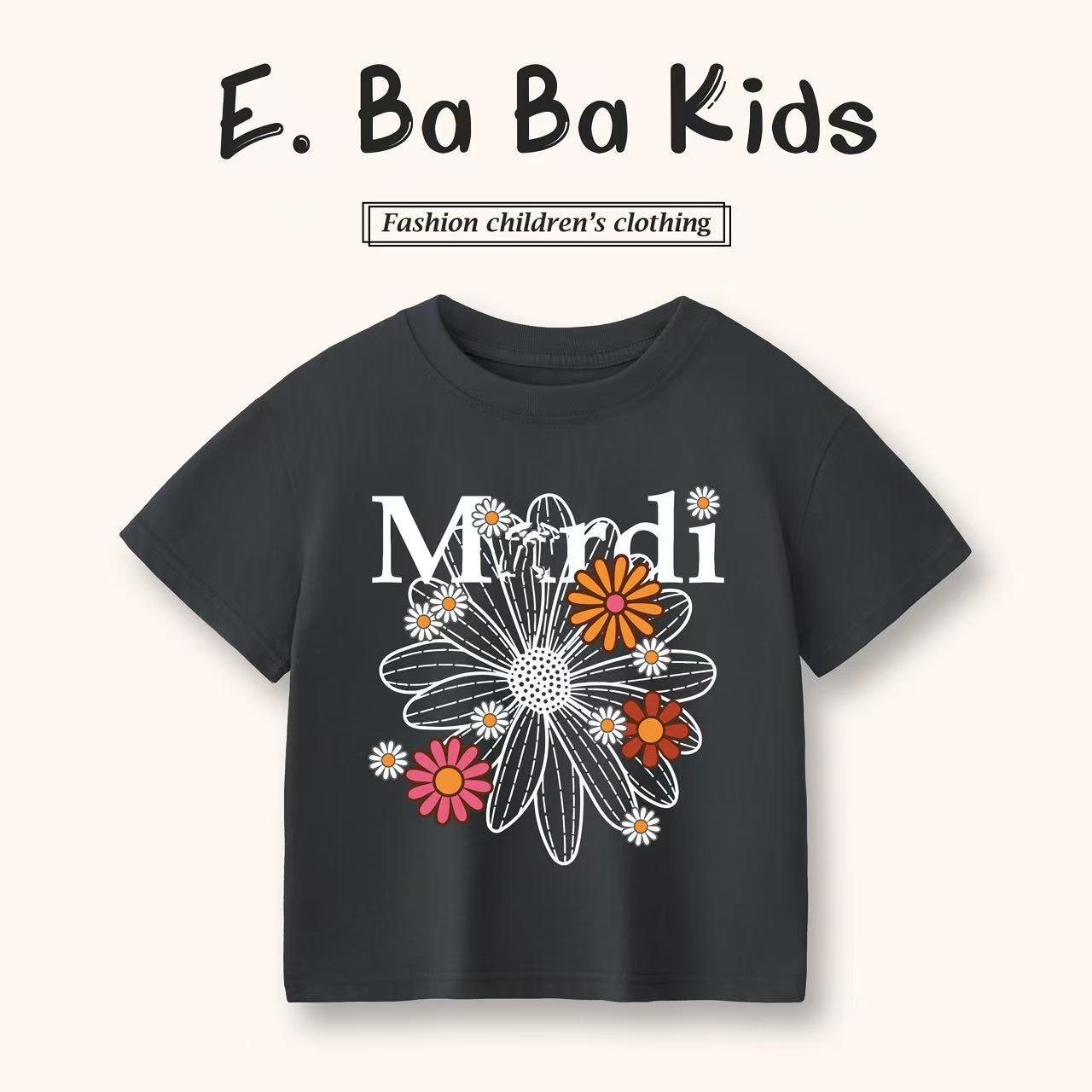 대외 무역 인기 아동용 반팔 티셔츠, 소형 주름 국화, 남아 및 여아용 티셔츠, 아동용 반팔 상의, 한국 트렌디 브랜드 아동복스토어 가기