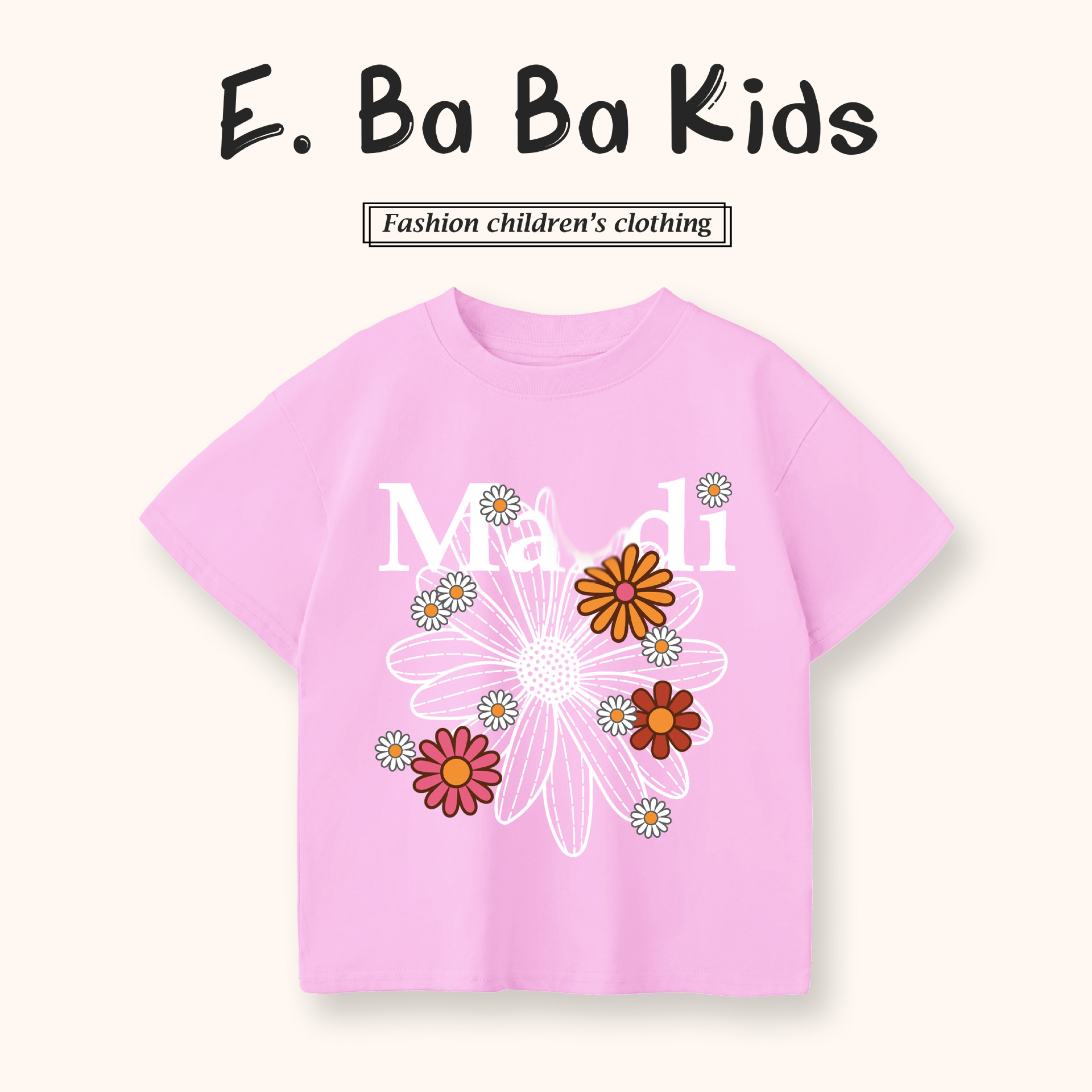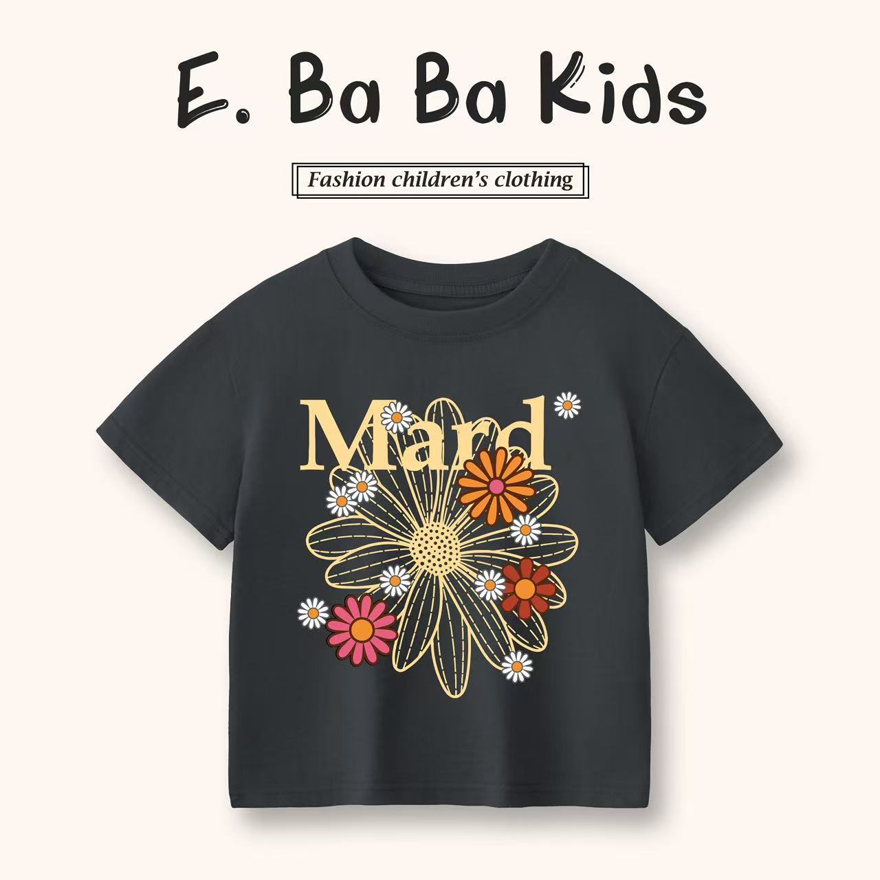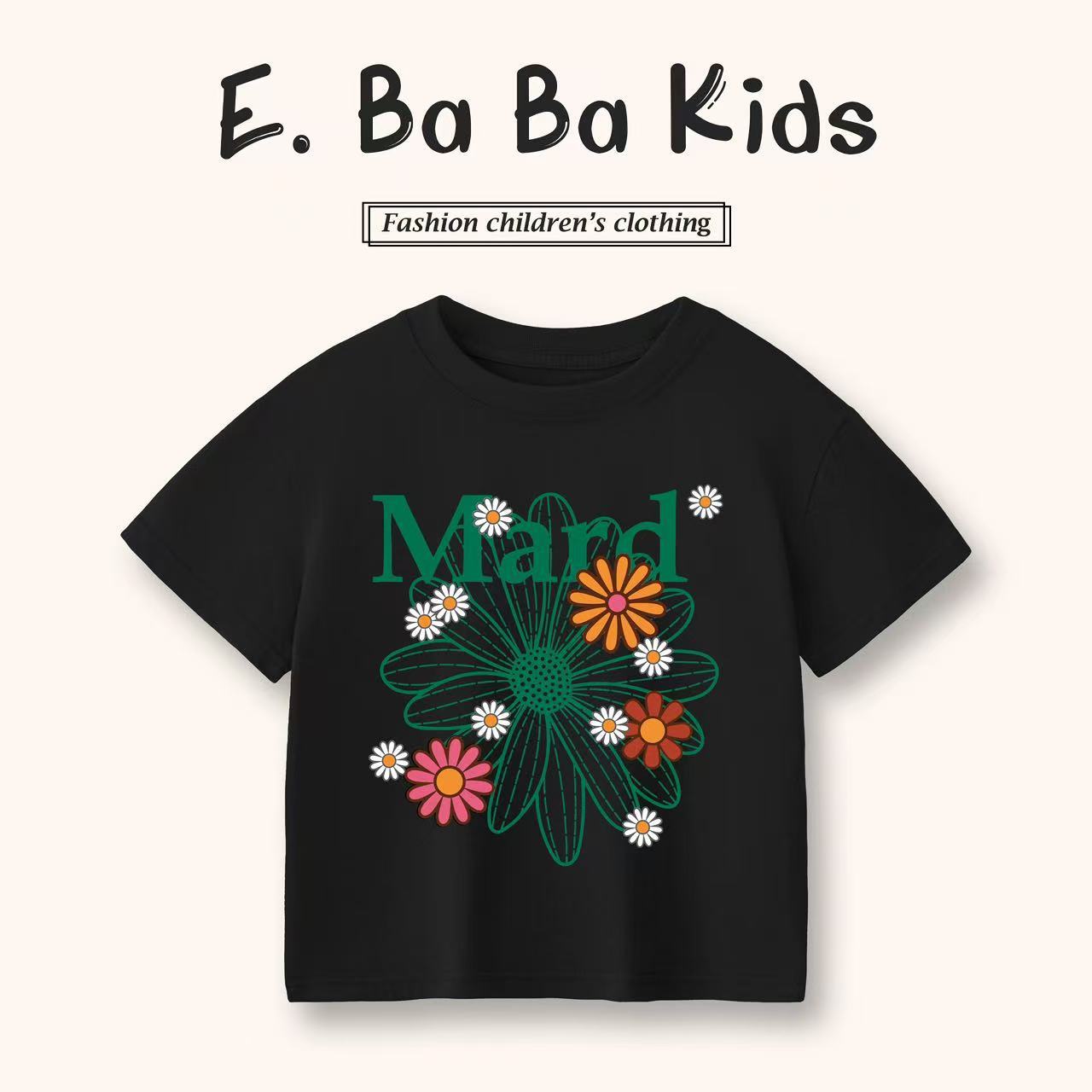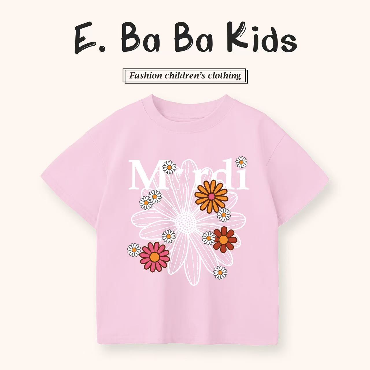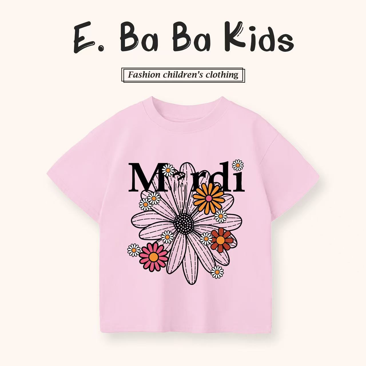 대외 무역 인기 아동용 반팔 티셔츠, 소형 주름 국화, 남아 및 여아용 티셔츠, 아동용 반팔 상의, 한국 트렌디 브랜드 아동복스토어 가기