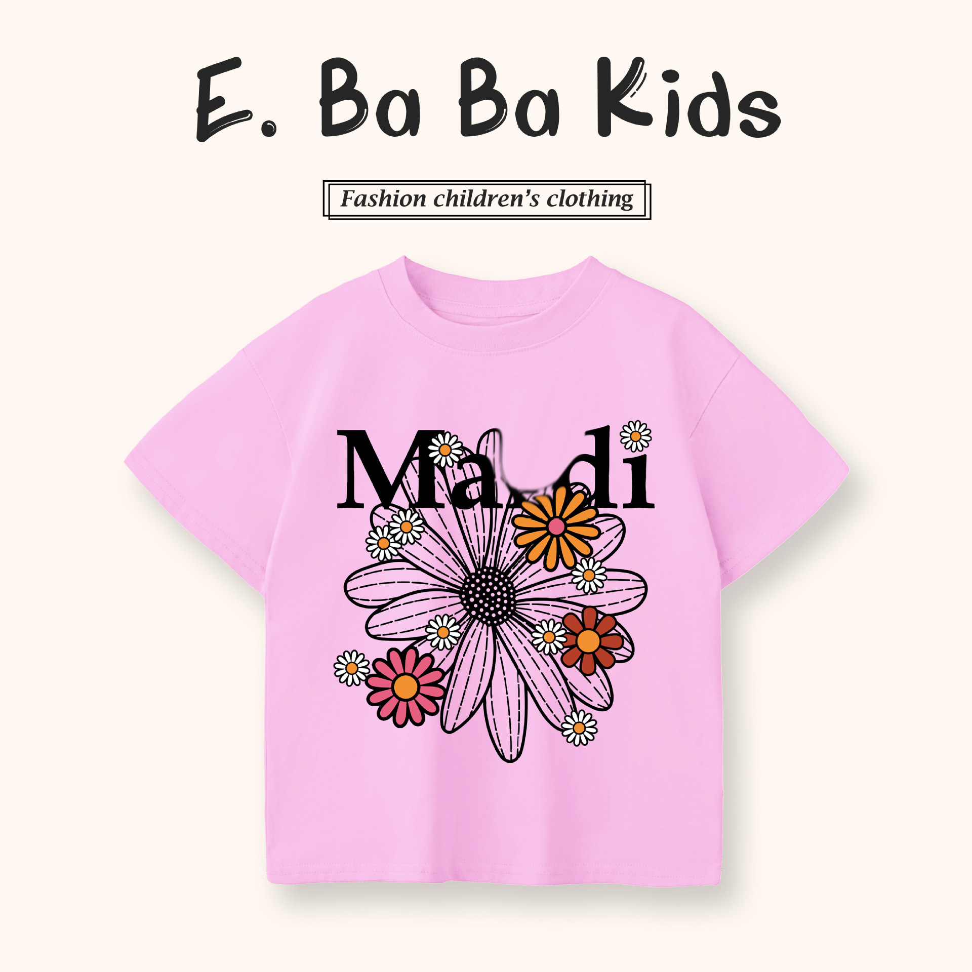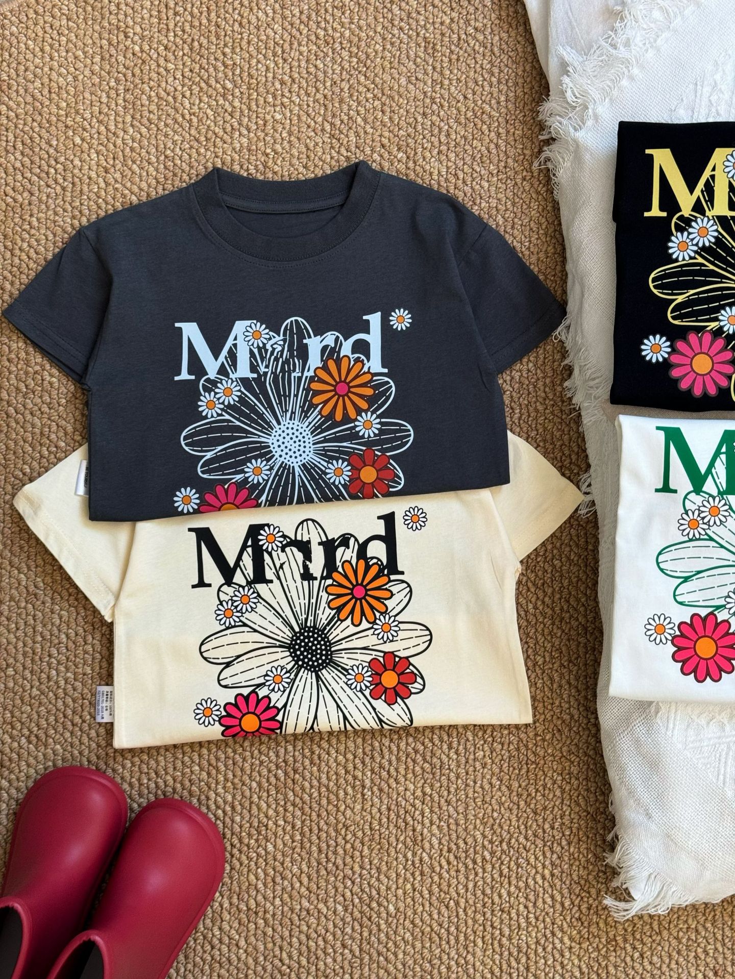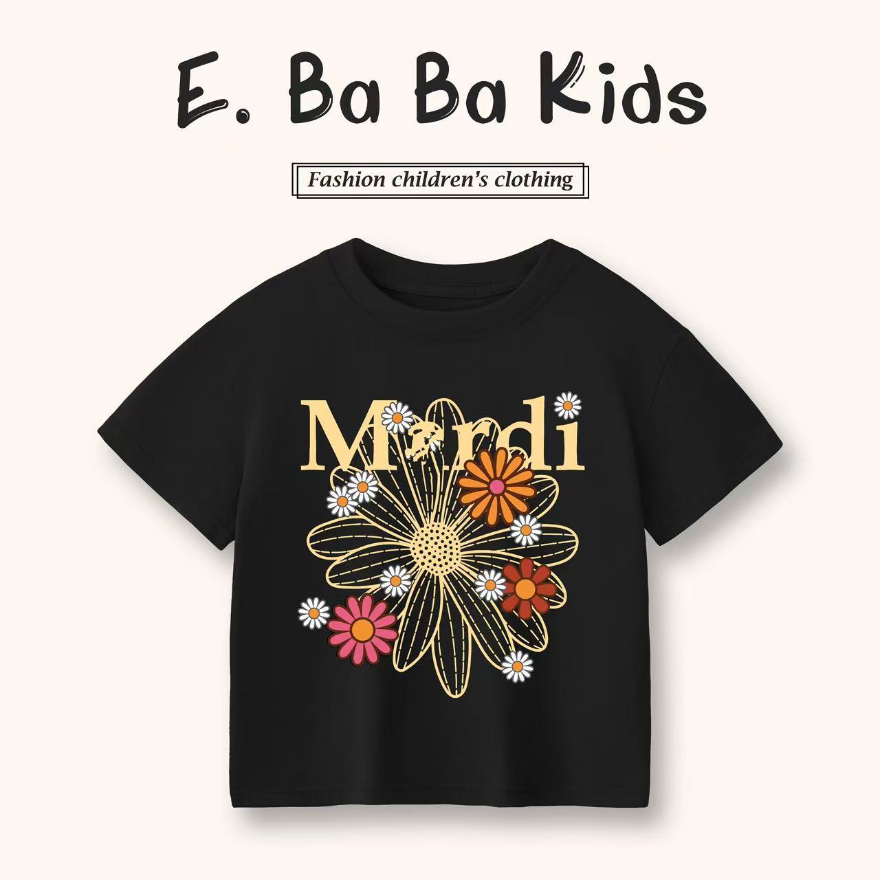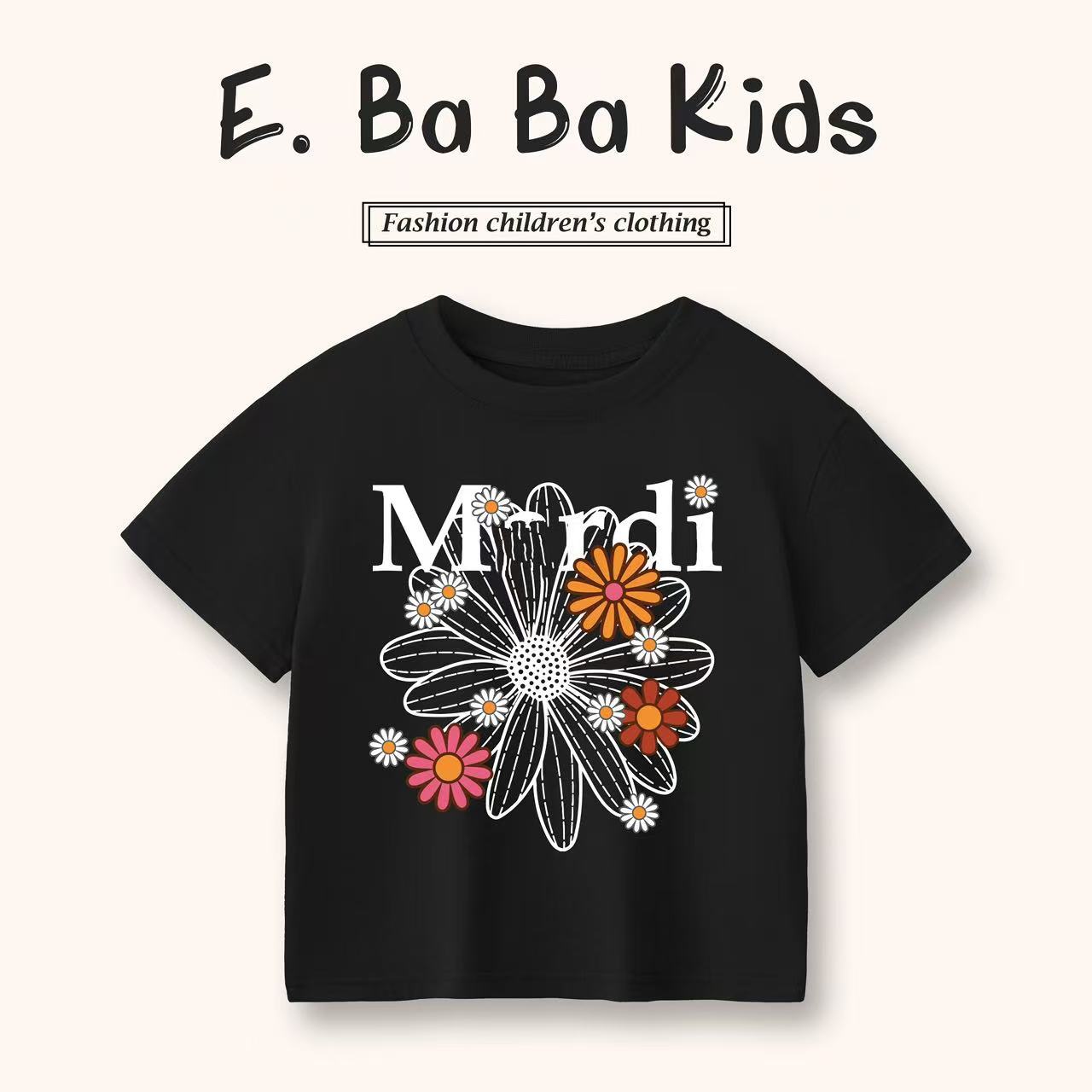 대외 무역 인기 아동용 반팔 티셔츠, 소형 주름 국화, 남아 및 여아용 티셔츠, 아동용 반팔 상의, 한국 트렌디 브랜드 아동복스토어 가기