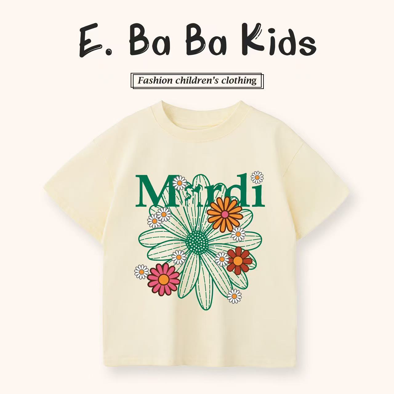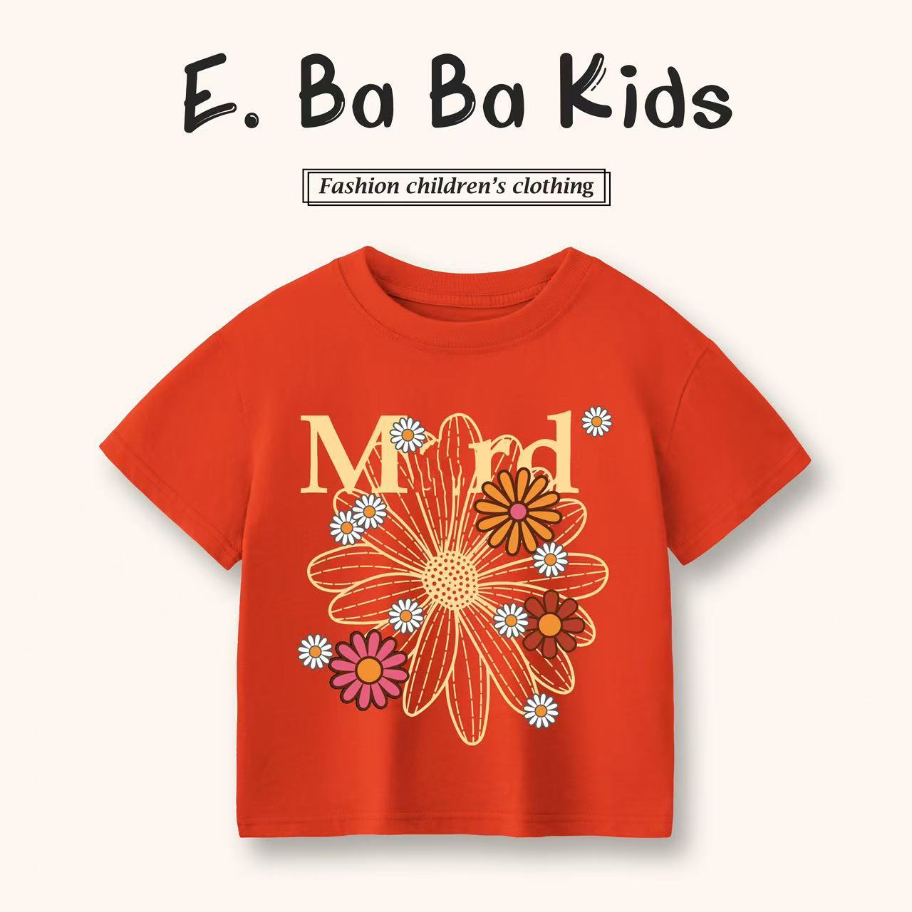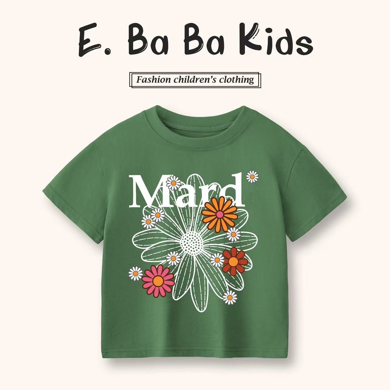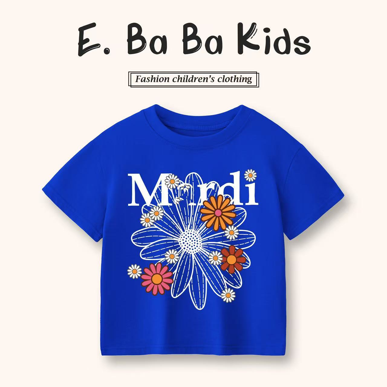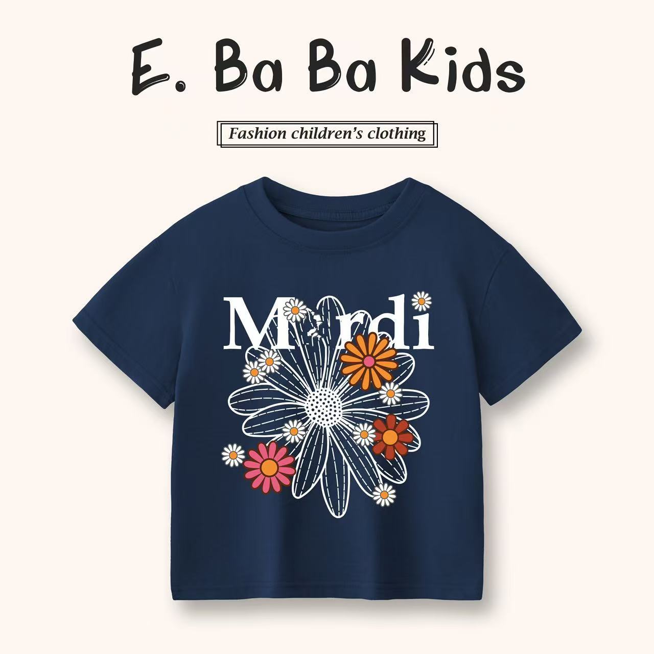 대외 무역 인기 아동용 반팔 티셔츠, 소형 주름 국화, 남아 및 여아용 티셔츠, 아동용 반팔 상의, 한국 트렌디 브랜드 아동복스토어 가기