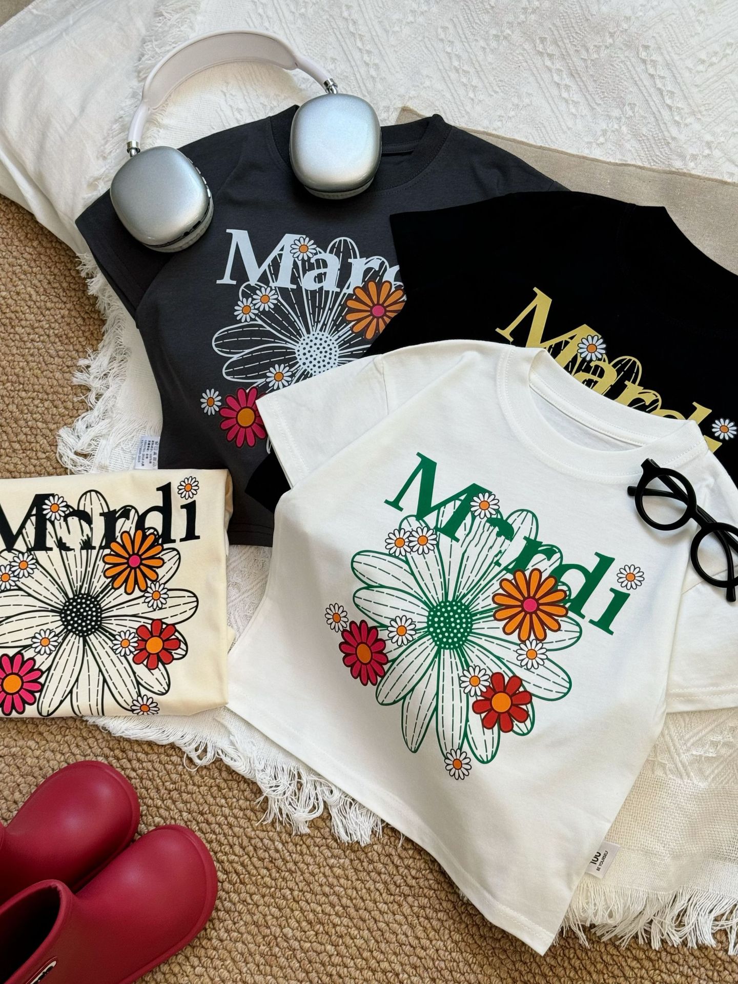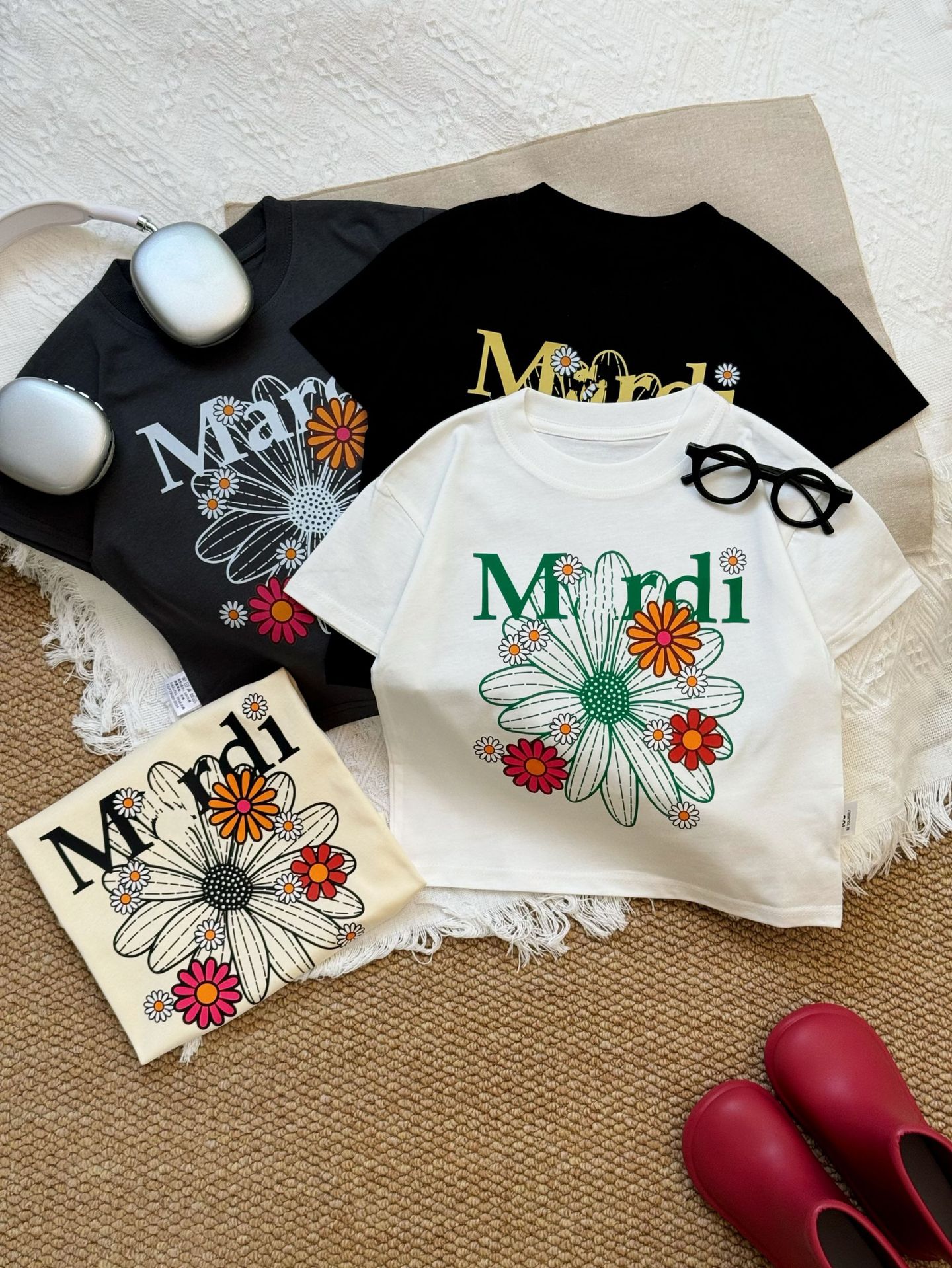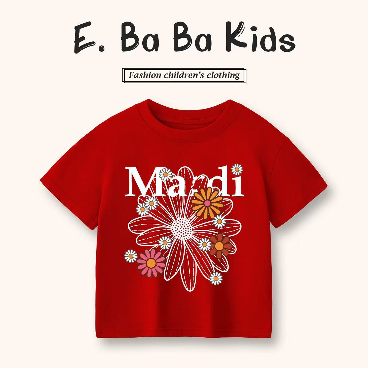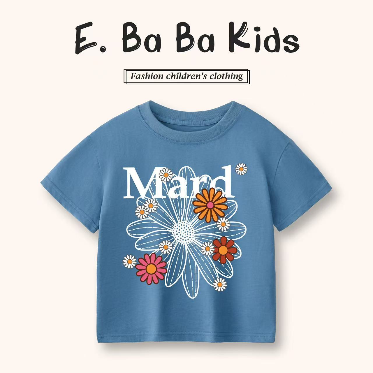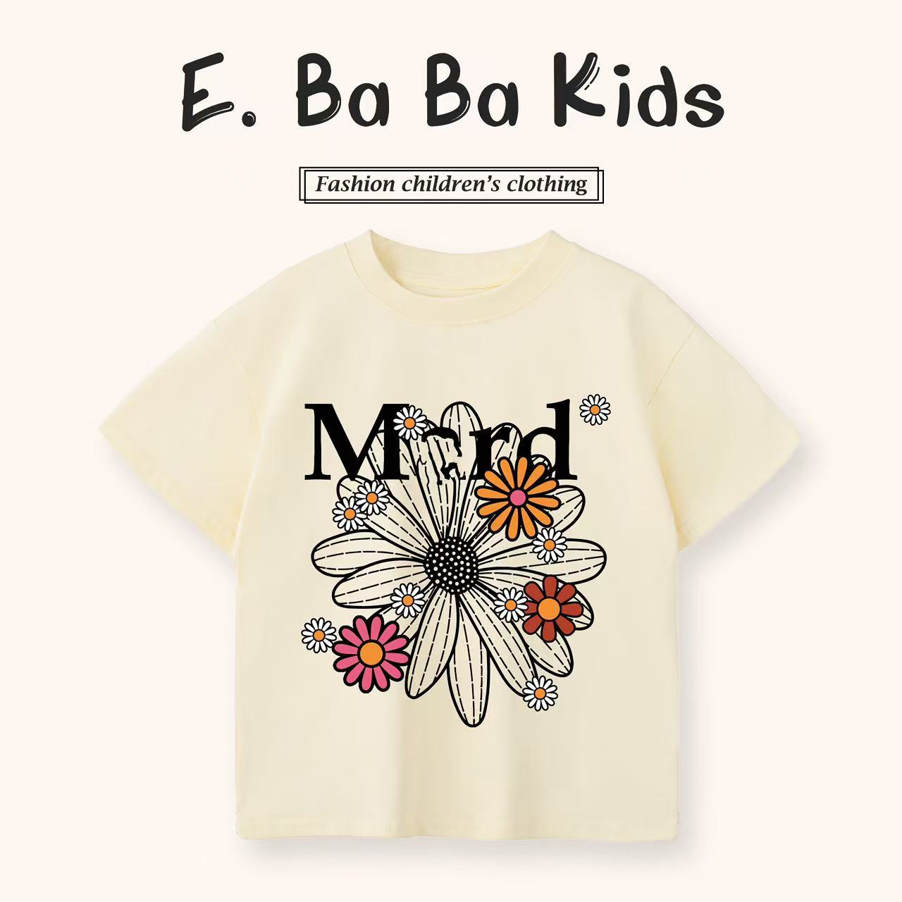 대외 무역 인기 아동용 반팔 티셔츠, 소형 주름 국화, 남아 및 여아용 티셔츠, 아동용 반팔 상의, 한국 트렌디 브랜드 아동복스토어 가기