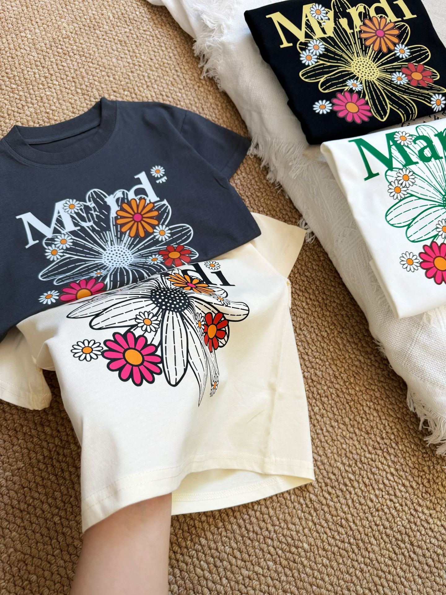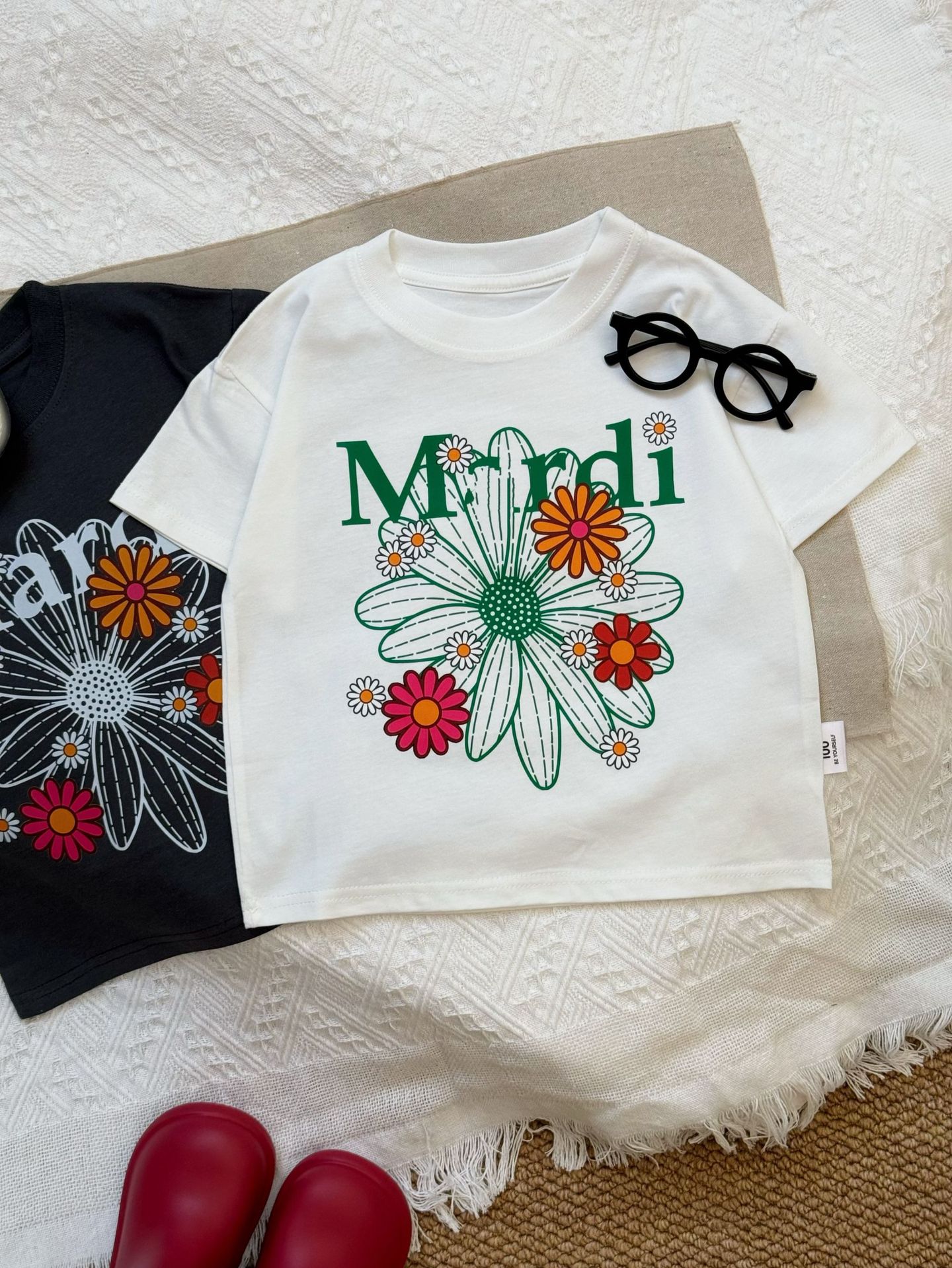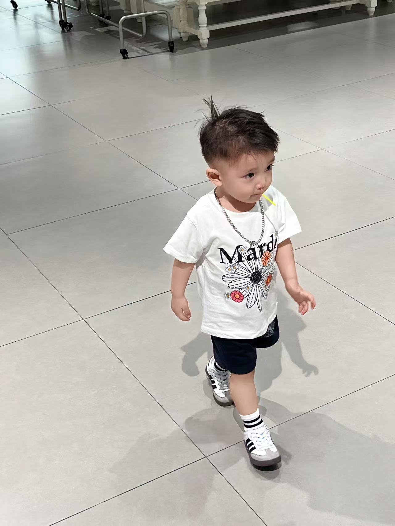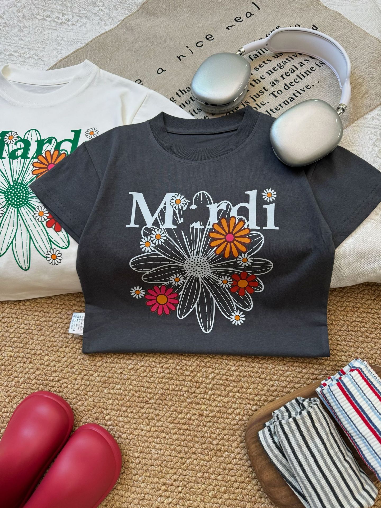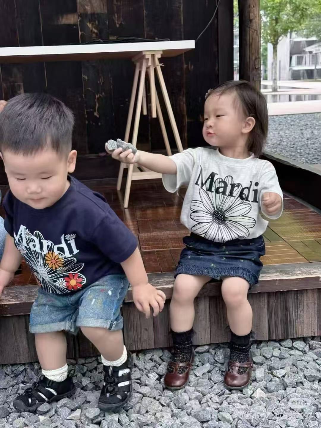 대외 무역 인기 아동용 반팔 티셔츠, 소형 주름 국화, 남아 및 여아용 티셔츠, 아동용 반팔 상의, 한국 트렌디 브랜드 아동복스토어 가기