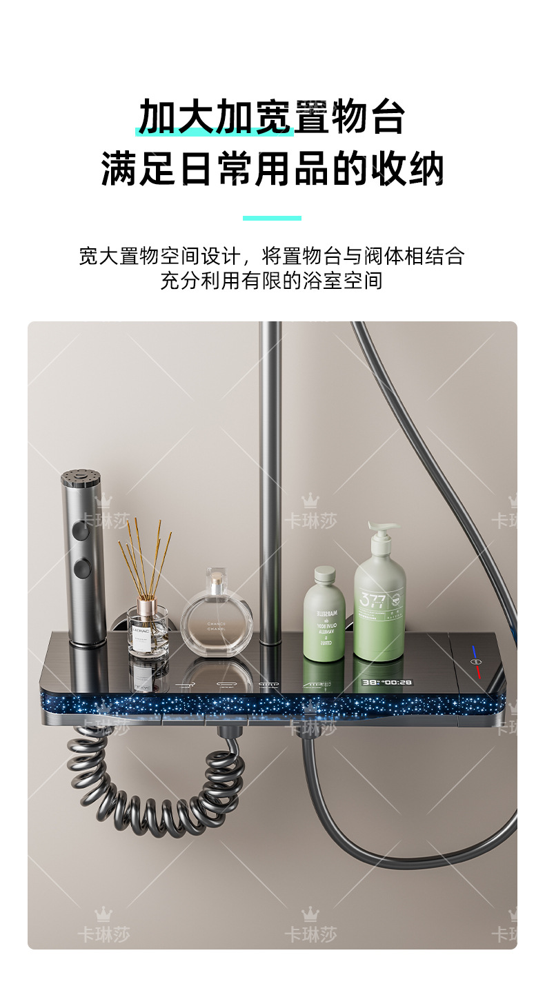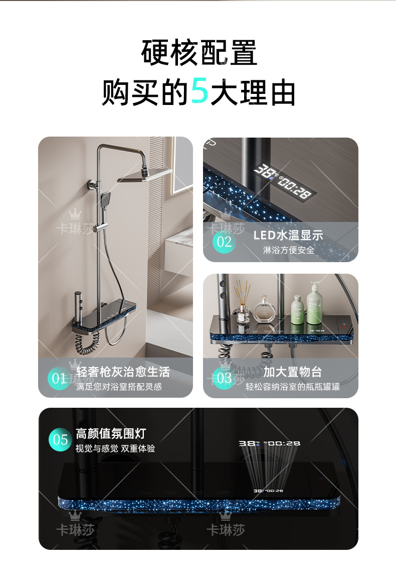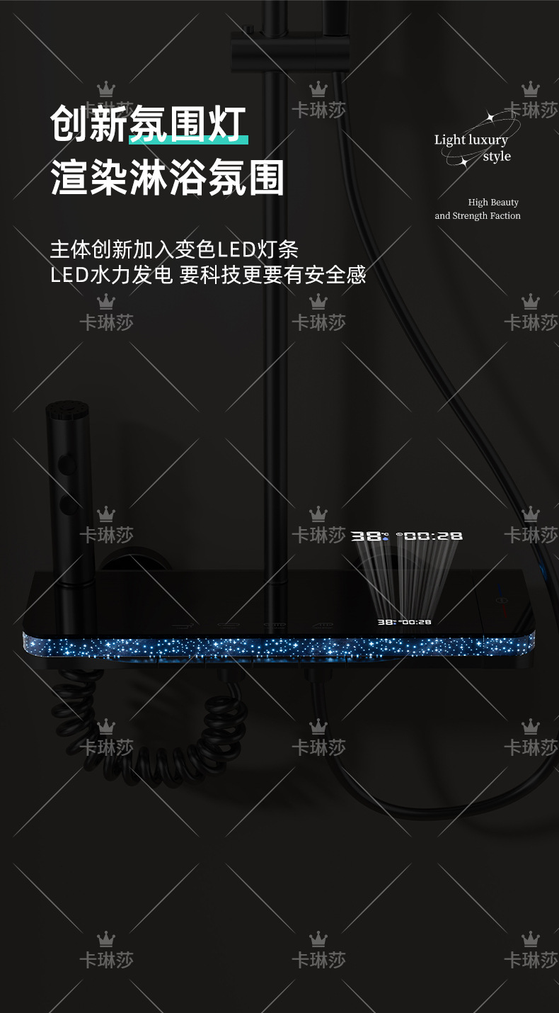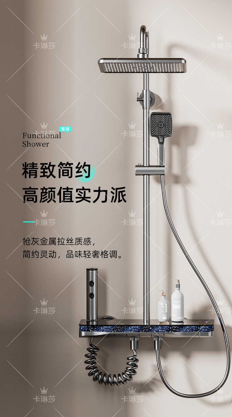 온도 조절 샤워 키트, 가정용 샤워, 욕실 샤워기, 오로라 분위기 조명 샤워기, 다기능스토어 가기
