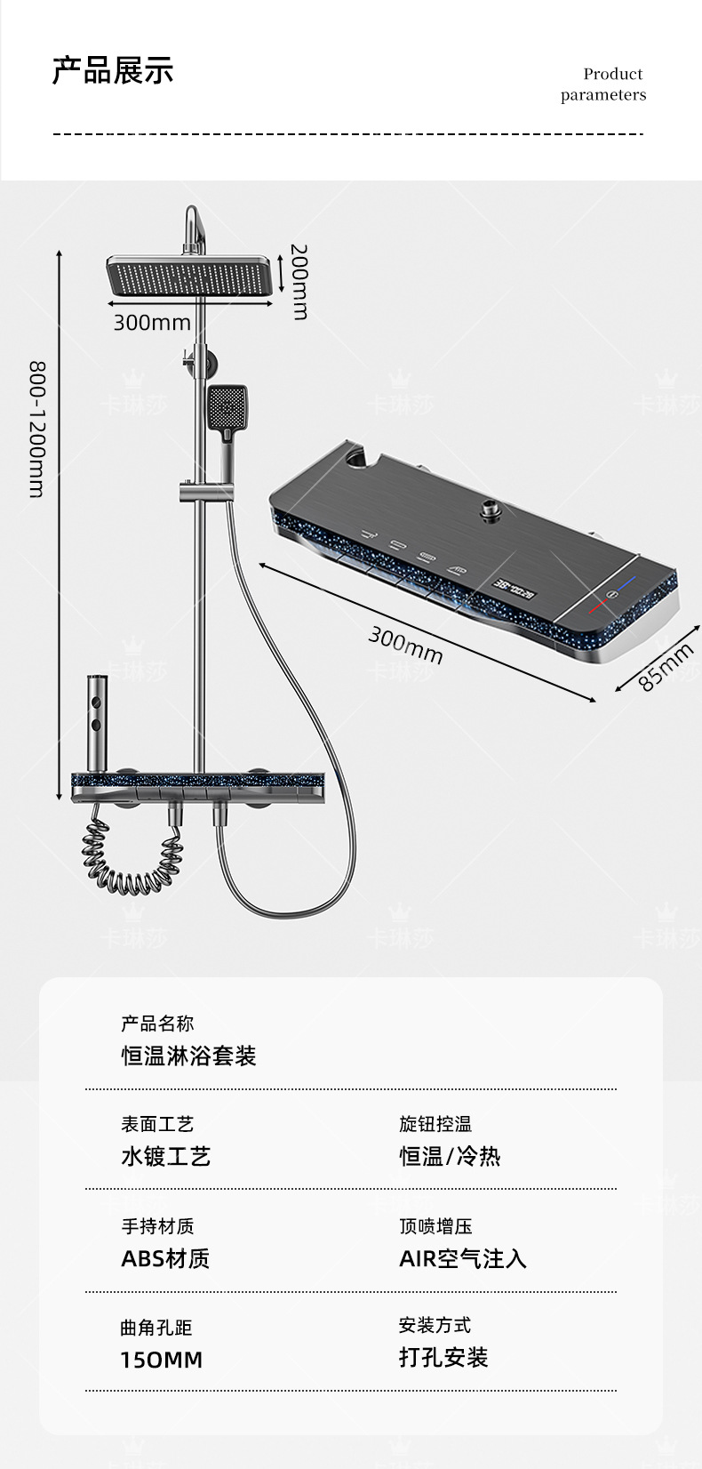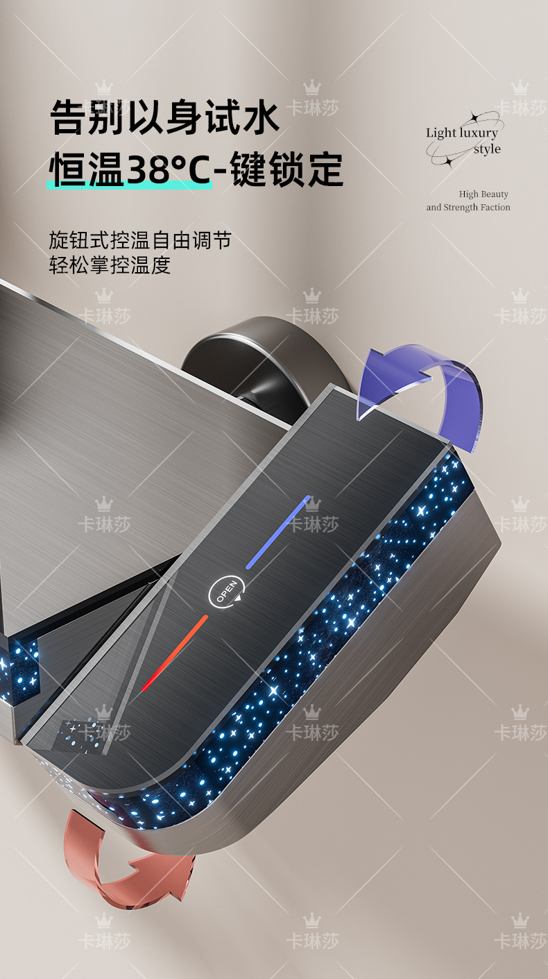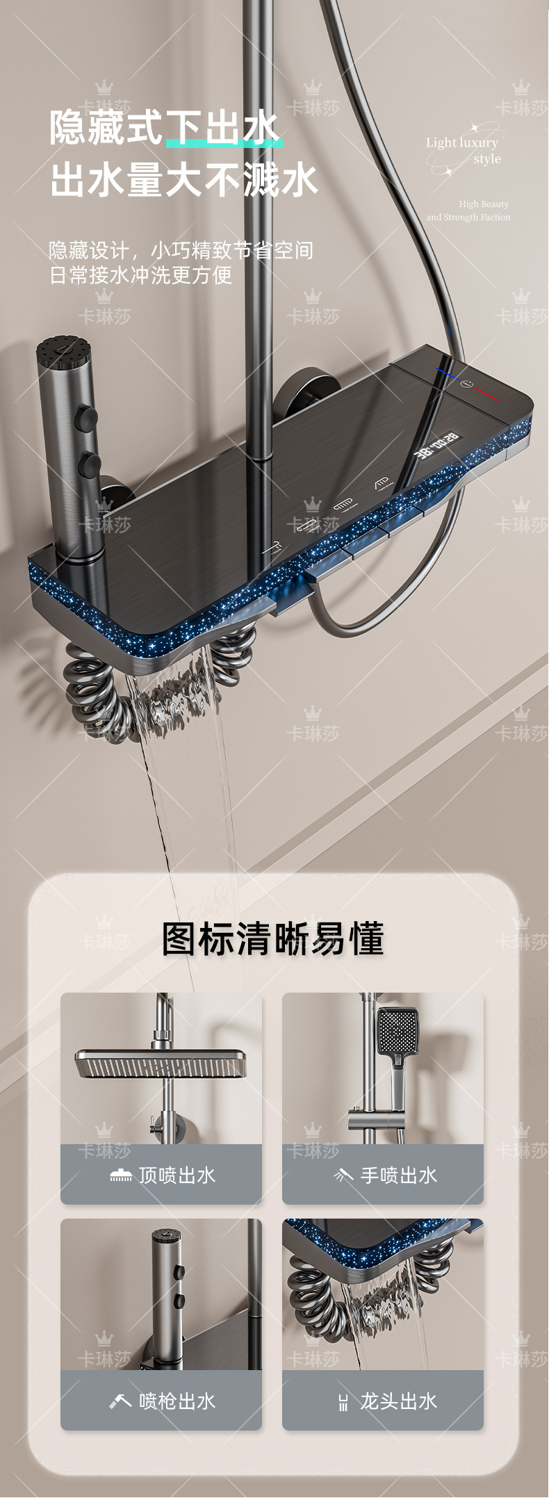 온도 조절 샤워 키트, 가정용 샤워, 욕실 샤워기, 오로라 분위기 조명 샤워기, 다기능스토어 가기
