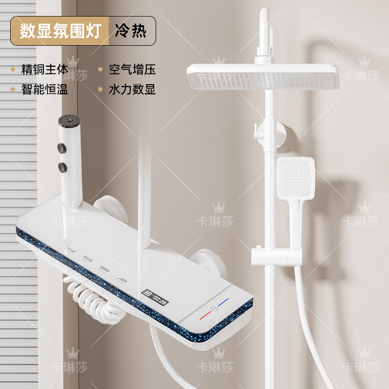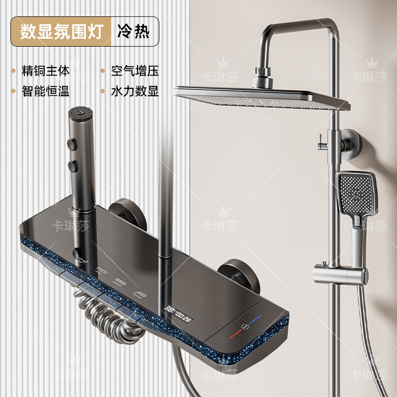 온도 조절 샤워 키트, 가정용 샤워, 욕실 샤워기, 오로라 분위기 조명 샤워기, 다기능