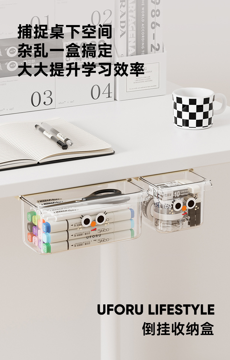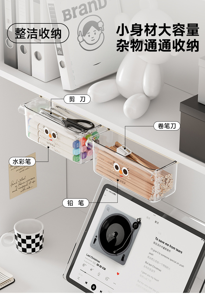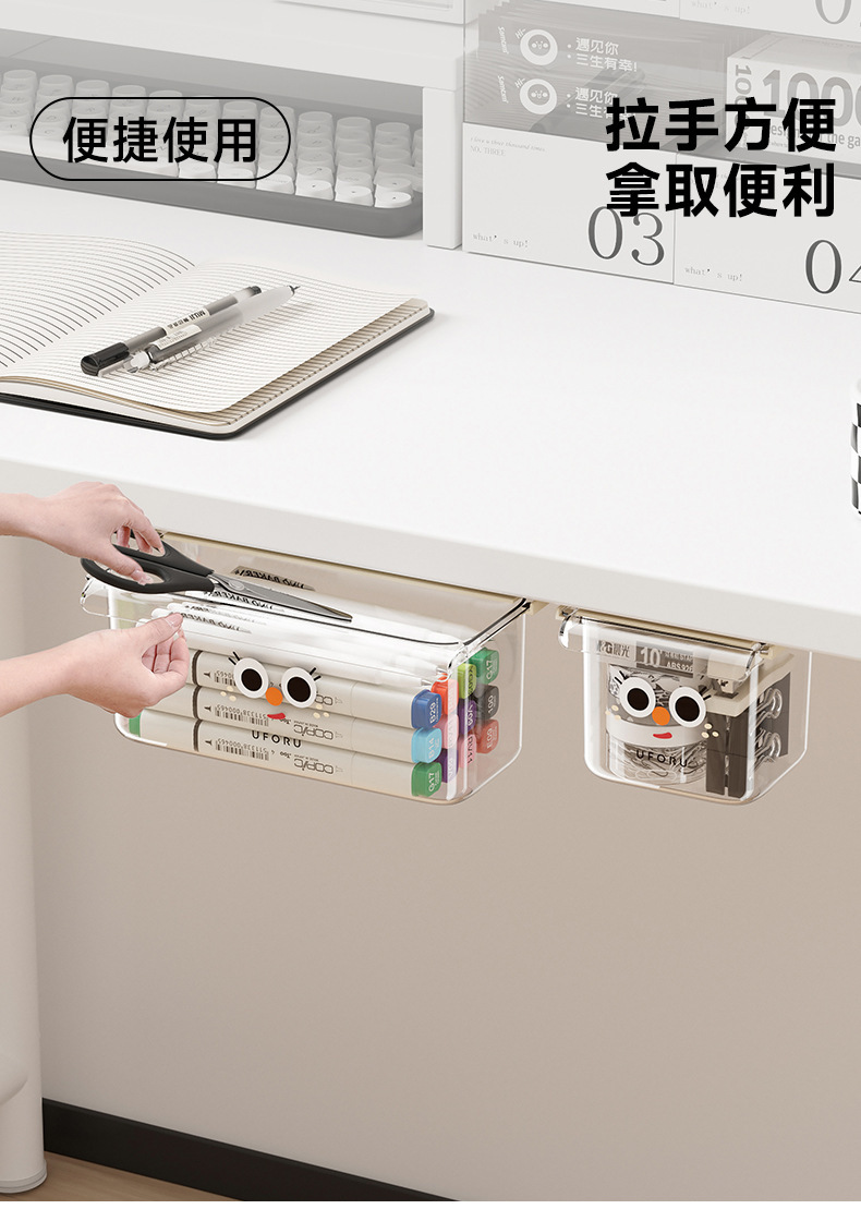 책상 아래 숨겨진 기숙사 책상 서랍형 수납함 수납함 바닥 학생 걸이형 대용량 투명 수납함