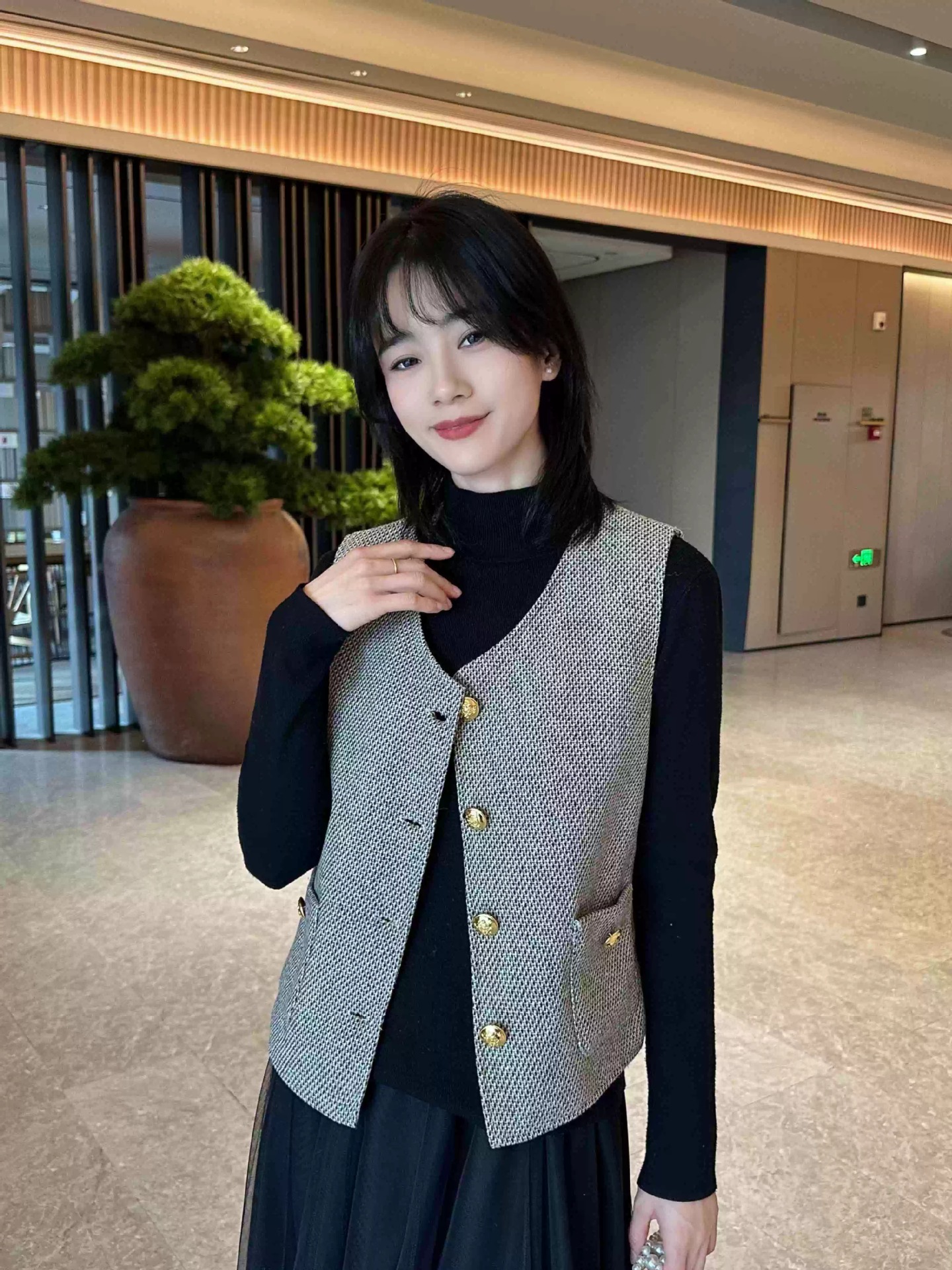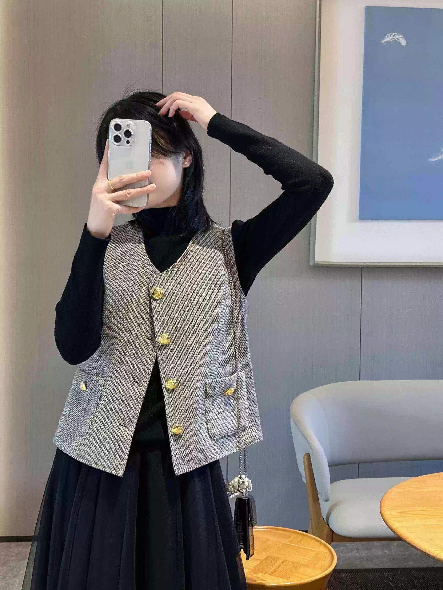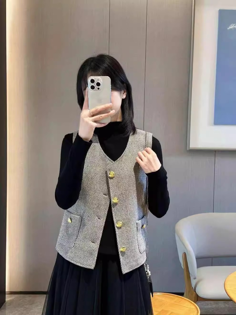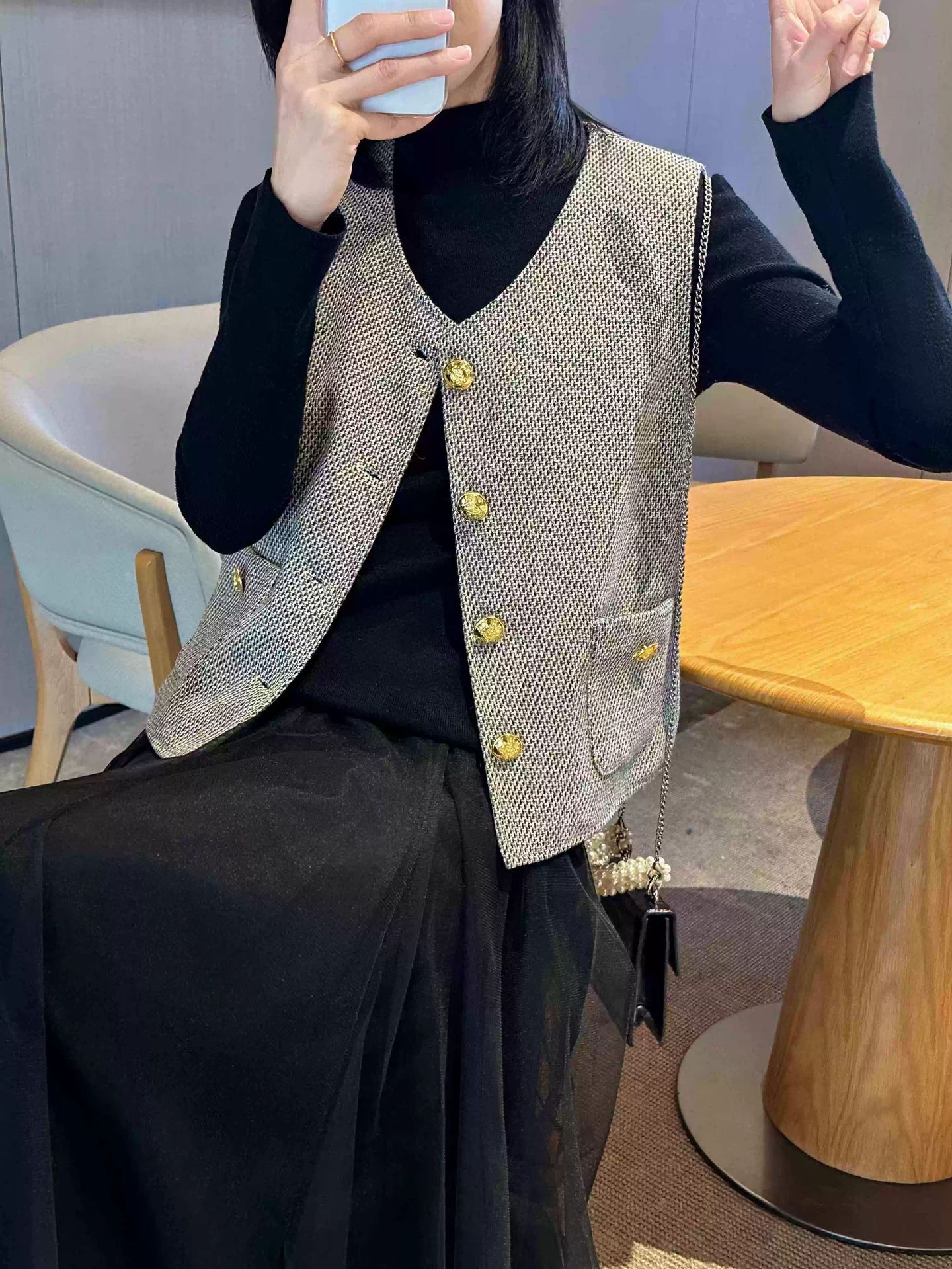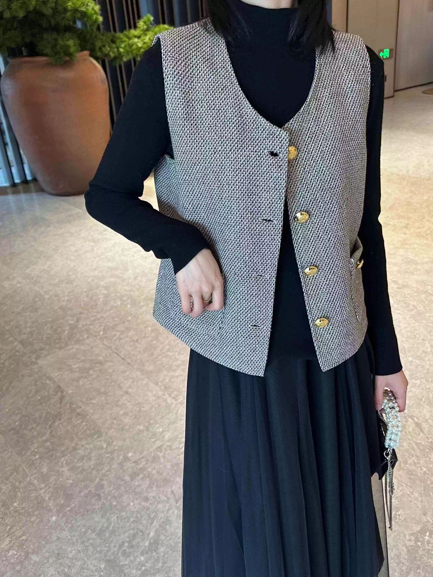 2025 봄 가을 신상품 프렌치 스타일 여성 조끼 자켓, 작은 키 여성을 위한 루즈핏 포켓 디자인 우아한 조끼스토어 가기