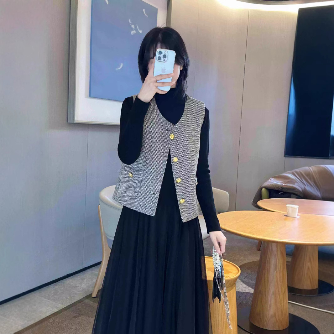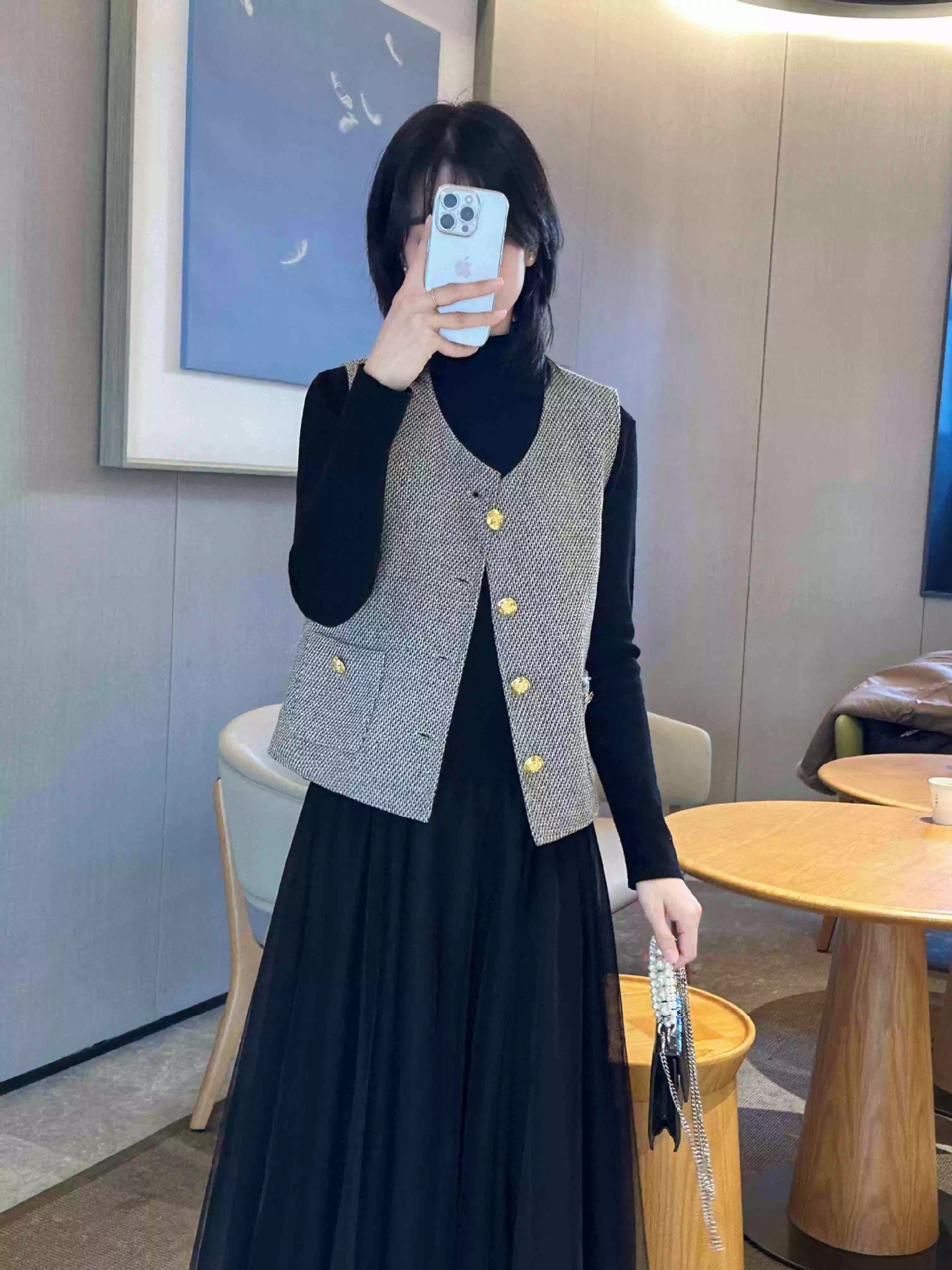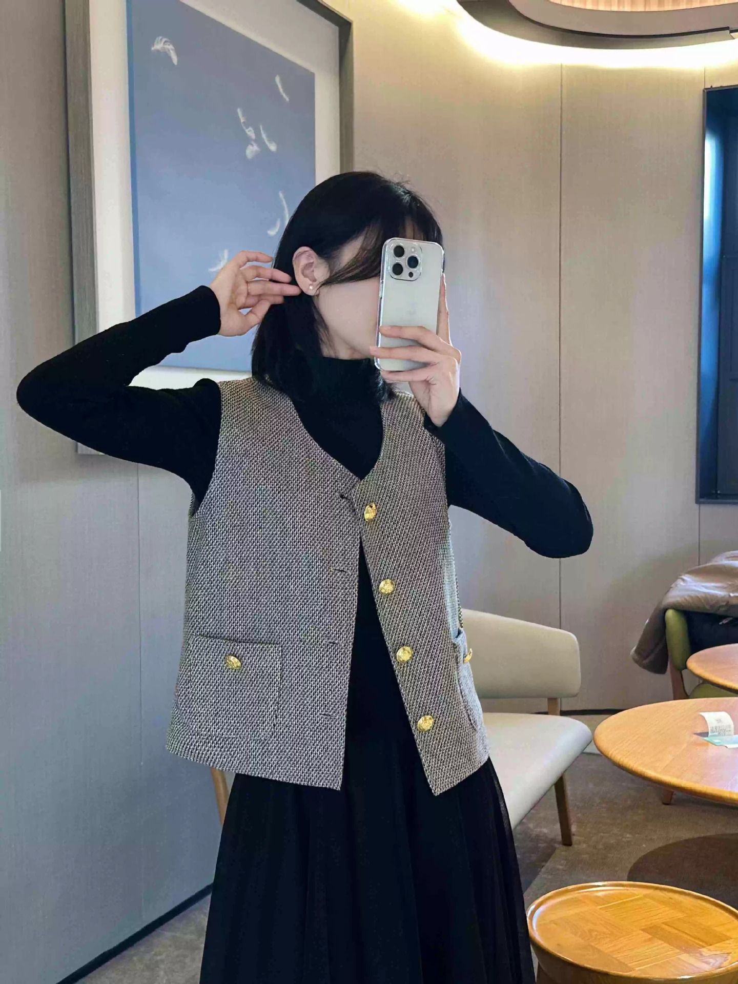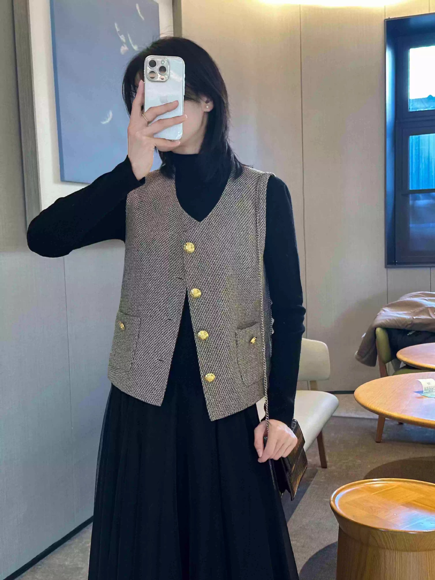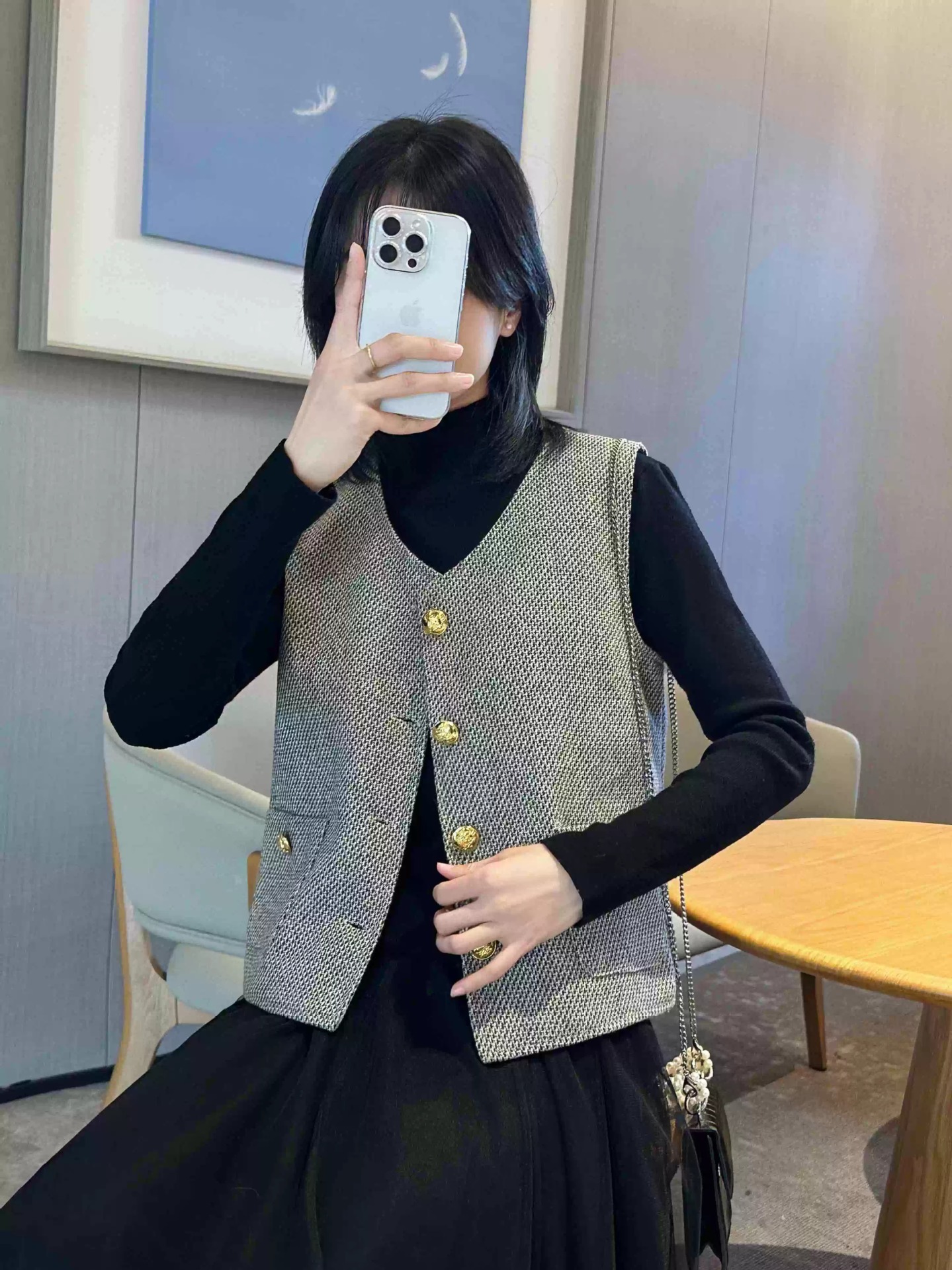 2025 봄 가을 신상품 프렌치 스타일 여성 조끼 자켓, 작은 키 여성을 위한 루즈핏 포켓 디자인 우아한 조끼스토어 가기
