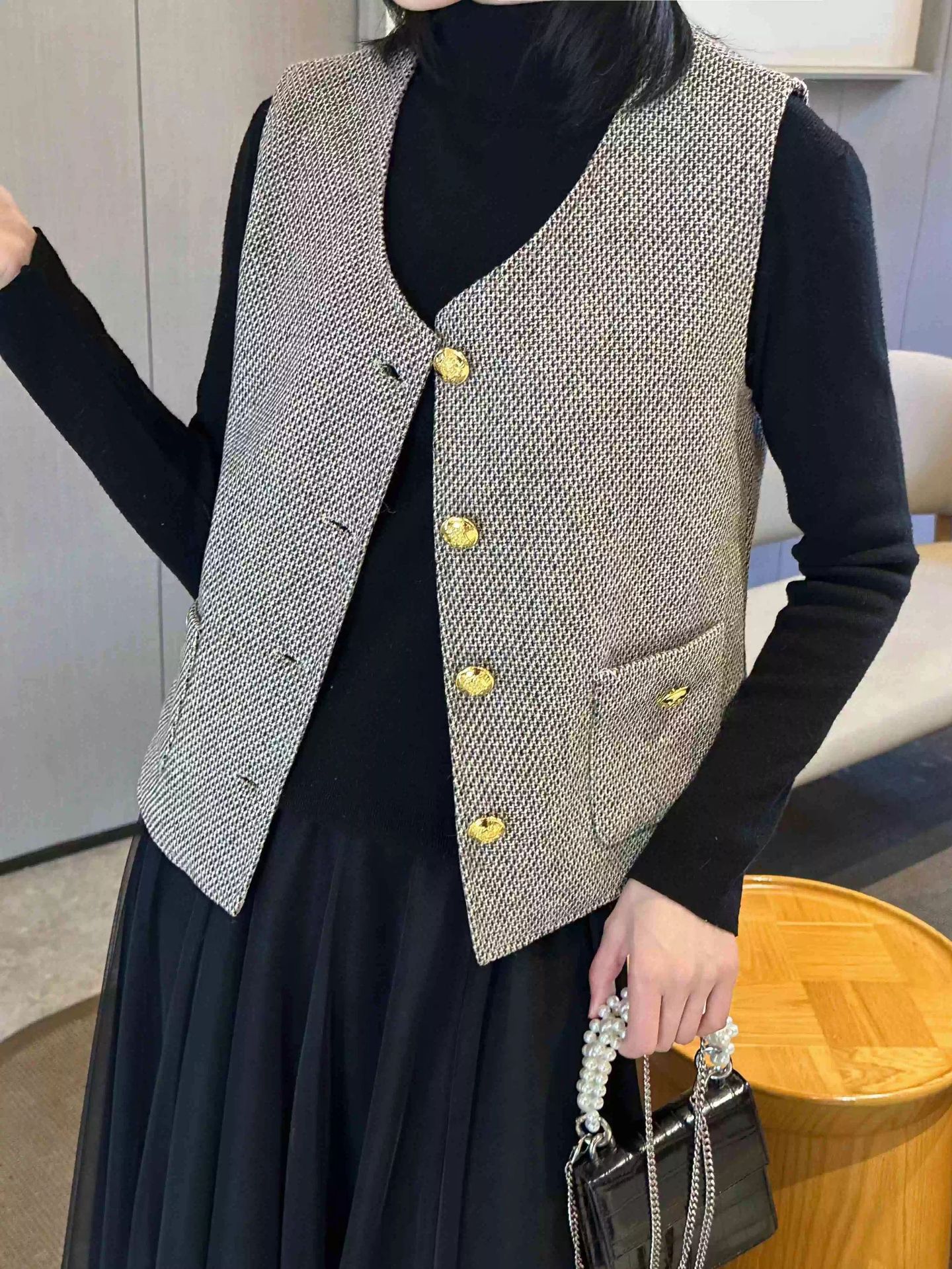 2025 봄 가을 신상품 프렌치 스타일 여성 조끼 자켓, 작은 키 여성을 위한 루즈핏 포켓 디자인 우아한 조끼
