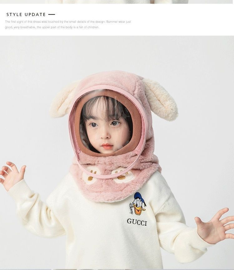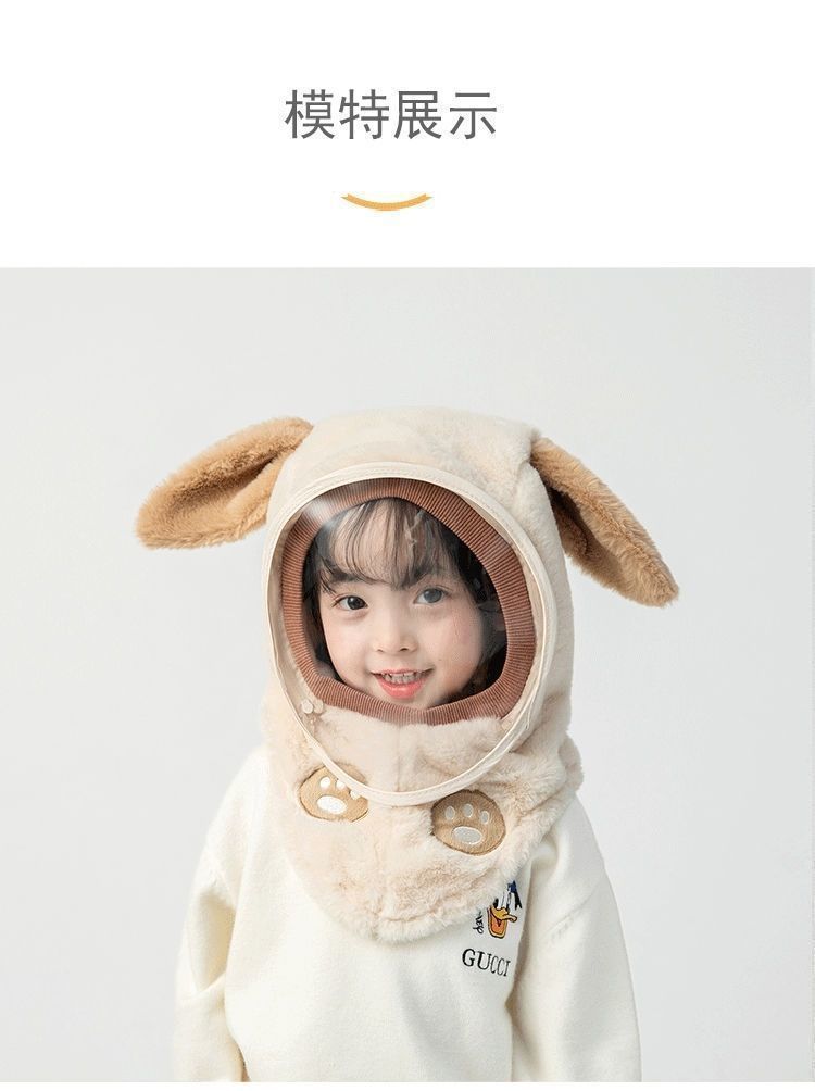 어린이 모자 가을, 겨울 방풍 마스크 소년과 소녀 귀 보호 통합 풀오버 모자 방풍 두꺼운 따뜻한 아기 스카프