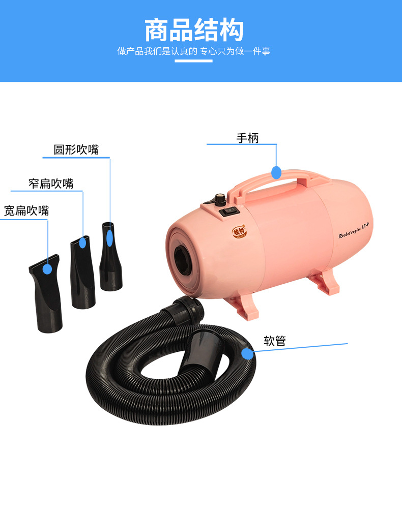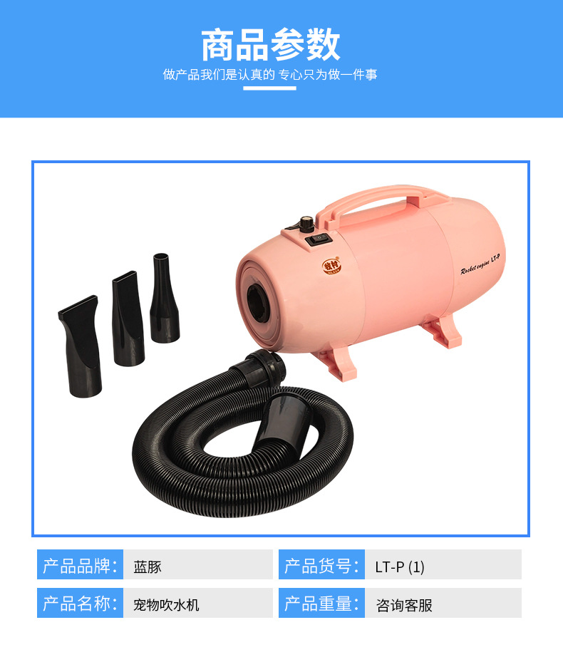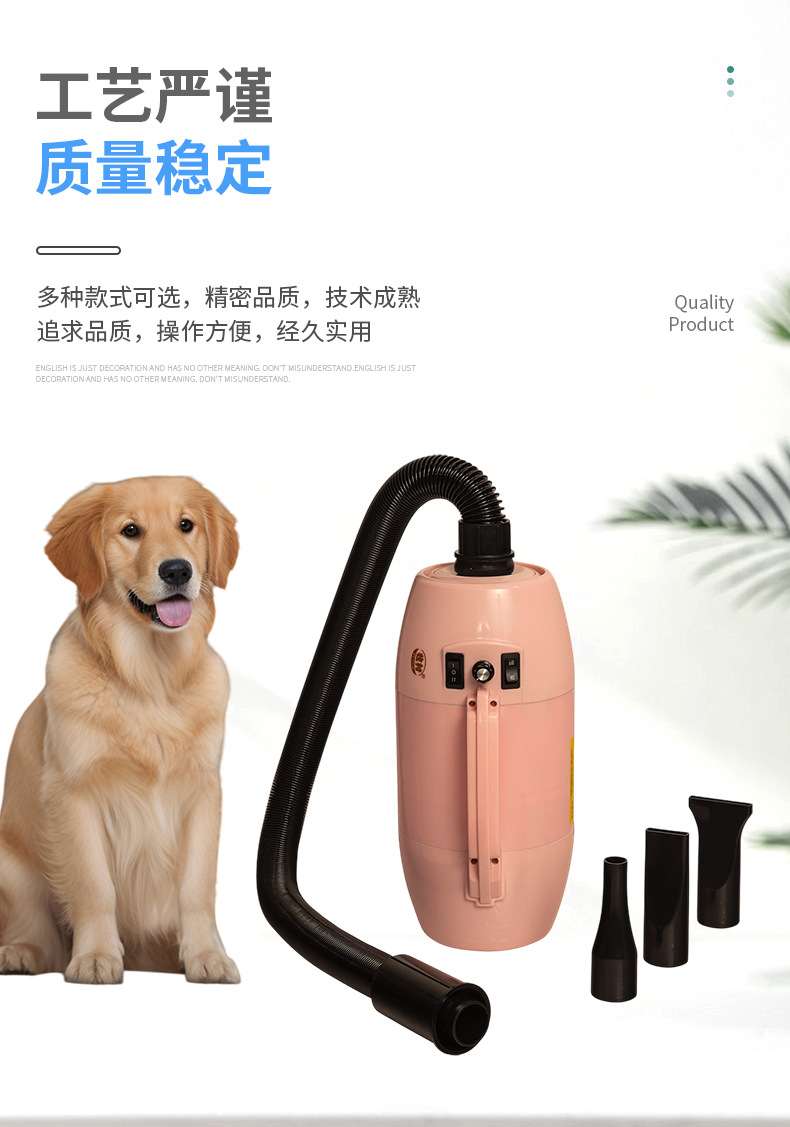 핑크 애완 동물 헤어 드라이어 고출력 대형 개와 고양이 건조기 단일 모터 가열 헤어 드라이어