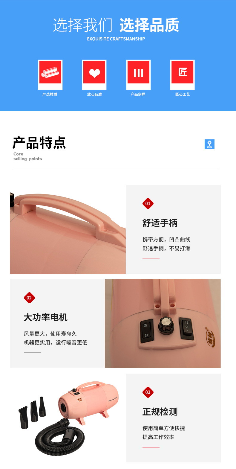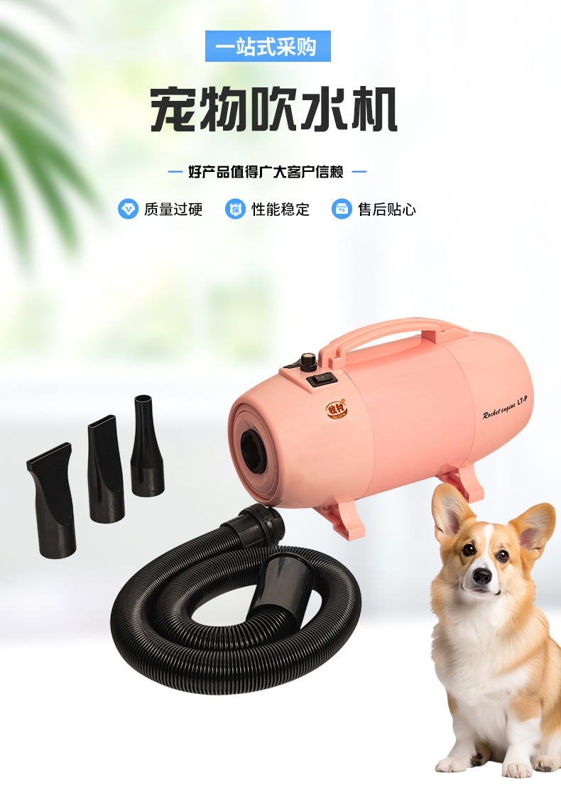 핑크 애완 동물 헤어 드라이어 고출력 대형 개와 고양이 건조기 단일 모터 가열 헤어 드라이어스토어 가기