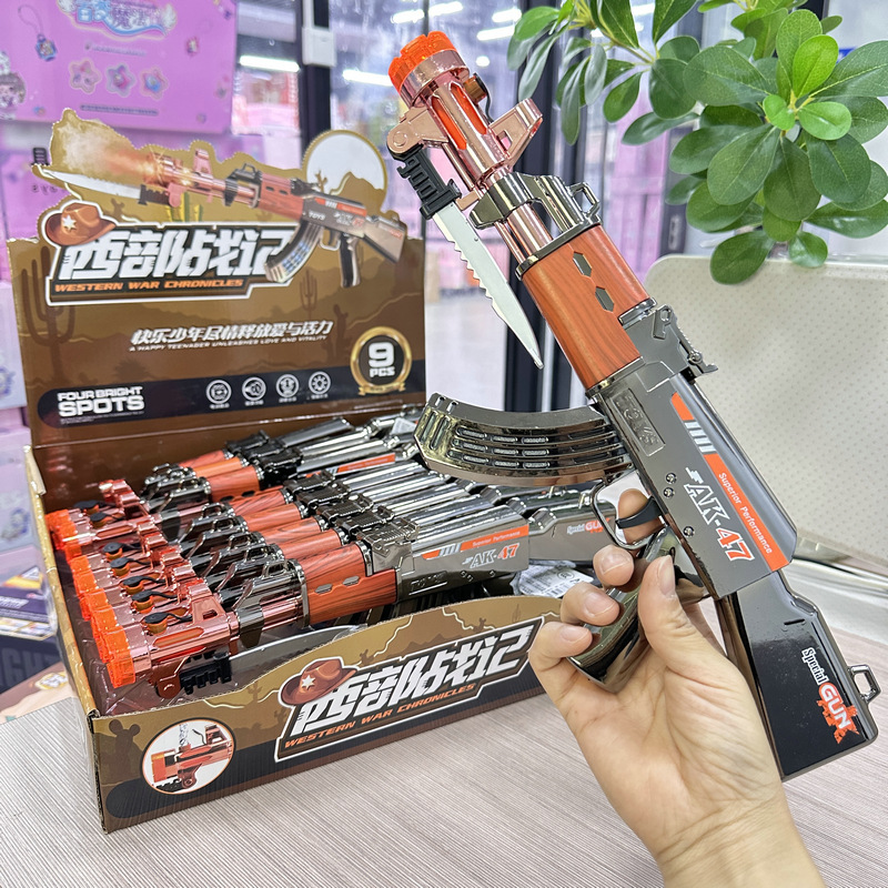 AK 전기 진동 연기 플래시 스프레이 건 음악 8음 건 소년과 어린이 장난감 야시장 스톨 9팩